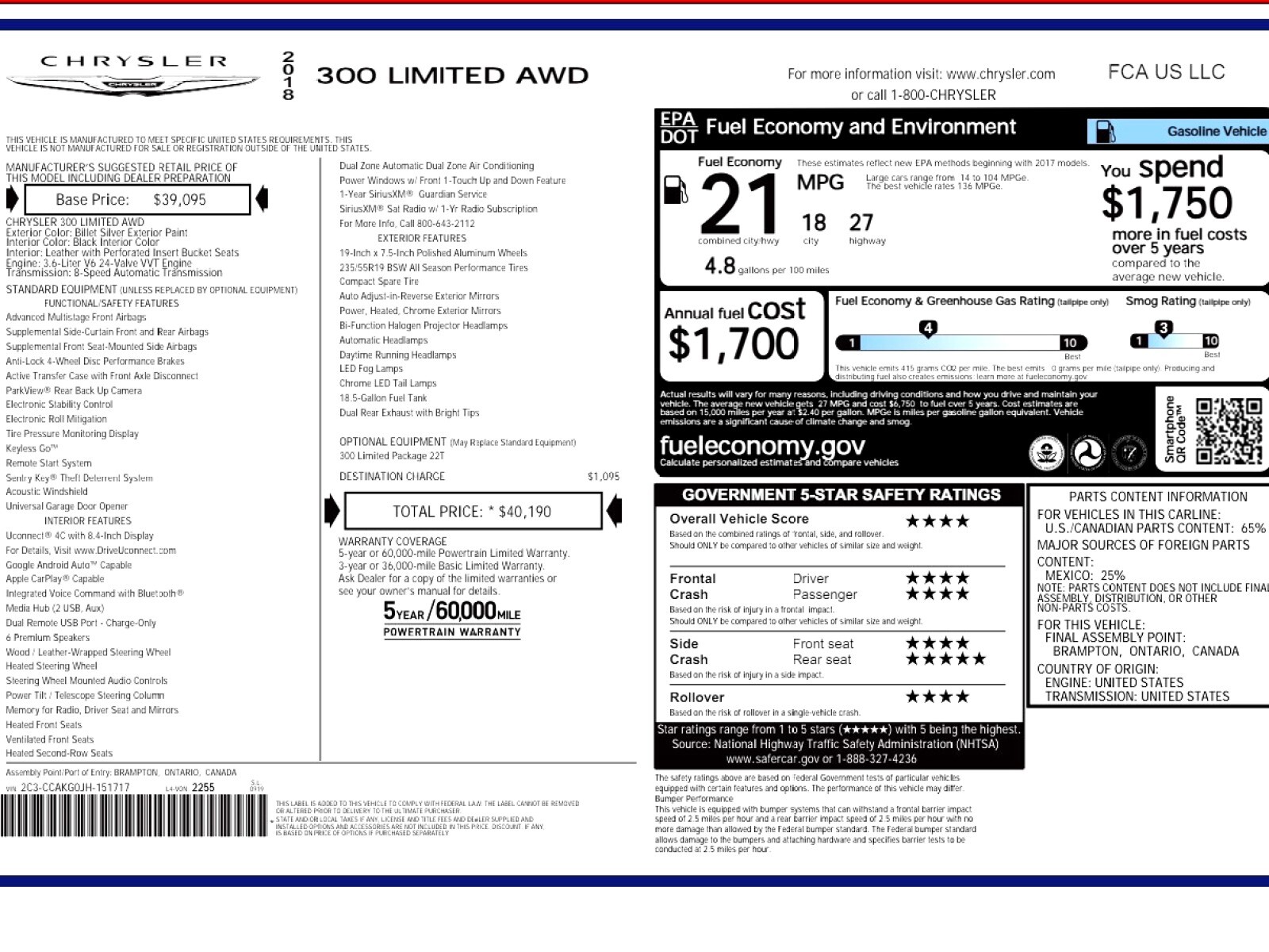 2018 Chrysler 300 Billet Silver Metallic Clearcoat