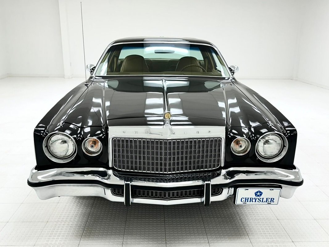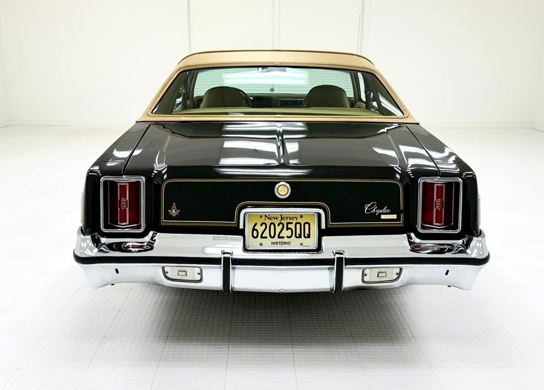 1977 brought us the large midsize car meant to save on gas yet still provide comfort for the family to be transported in comfort. So they came up with the Cordoba with its leading edge round headlights and smaller round running turn signal lights flanking the larger headlight. A central chrome encased vertical ribbed grille in V form is in on, and a nice corresponding bumper below. Formal Black Sunfire Metallic, (and it has fairly large flakes), adorns this car with a few faults, but overall nicety has been retained. Shiny trimmings for the wheel wells and rockers and a tan vinyl "landau top" complete with opera window in on the rear third of the roof. A trunk with room for all the luggage and then some is under the large long rear deck. On either side are rectangle taillights and below a shiny chrome bumper to cradle the taillights and frame the bottom of the trunk. Polished 15-inch Chrysler road wheels are on all 4 corners and wrapped in 215/75-R15's all around.