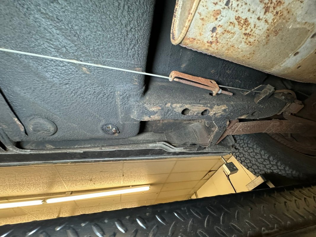 Some surface rust on the usual suspects like the suspension and driveshaft, but otherwise looking just great. Torsion bar suspension for the front, and leaf springs for the rear along with power disc brakes on front and power drums for the back and a nice solid exhaust, take the wheel and drive to the coast Ricardo!