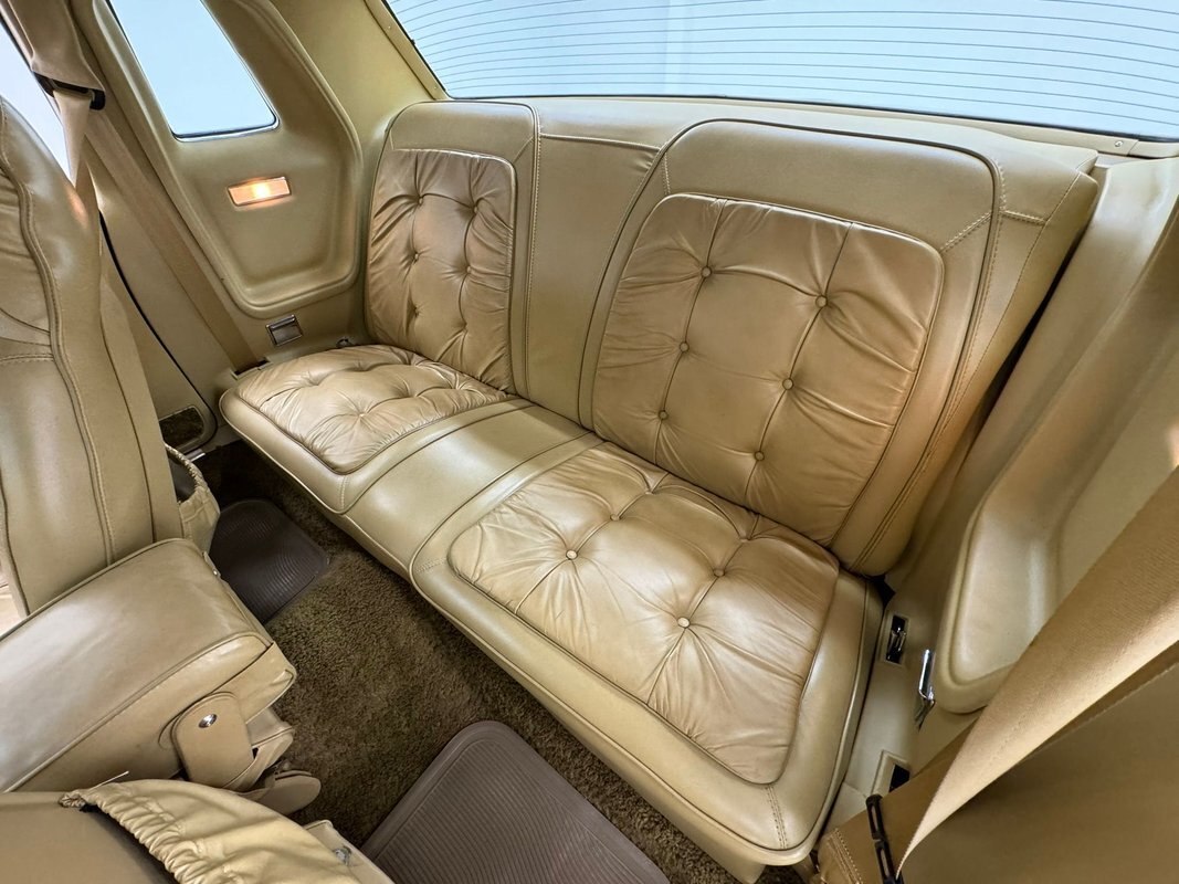 Wait for it.....Wait for it....Corrrrrinthian Leather, (swoon and a faint to the couch!), wrapped in light gold Corinthian Leather and vinyl adorn the interior surfaces of this classic. Front high back buttoned and tufted buckets sit in front of the original dash setup and a similar buttoned and tufted rear bench is stretching across the back from cathedral window to cathedral window. 1977 adornments like an 8-track player, cruise control, power windows, and power locks. All this in a sea of gold carpeting, and a smooth one piece headliner also in gold. Certainly, all that glitters it is.! Hay oro en ellos colinas!!