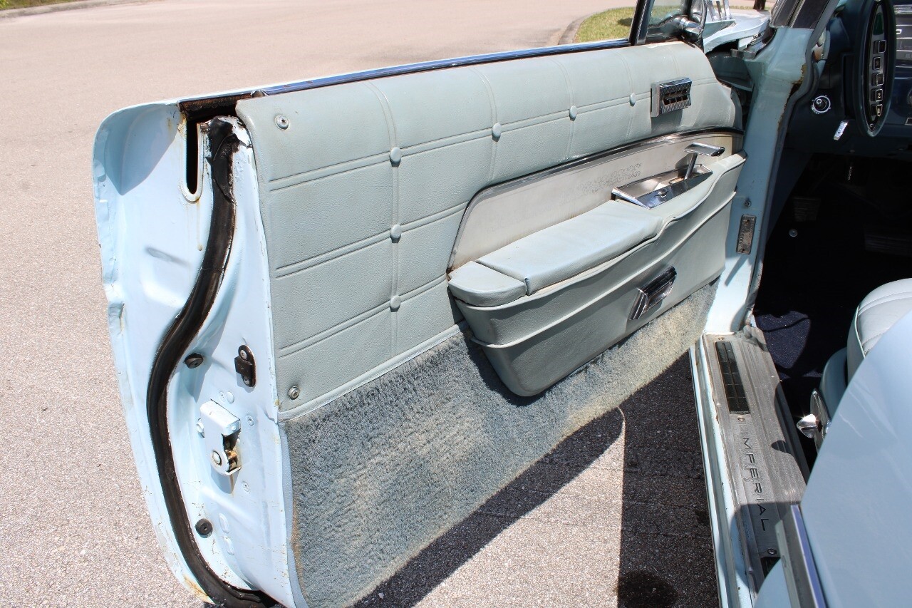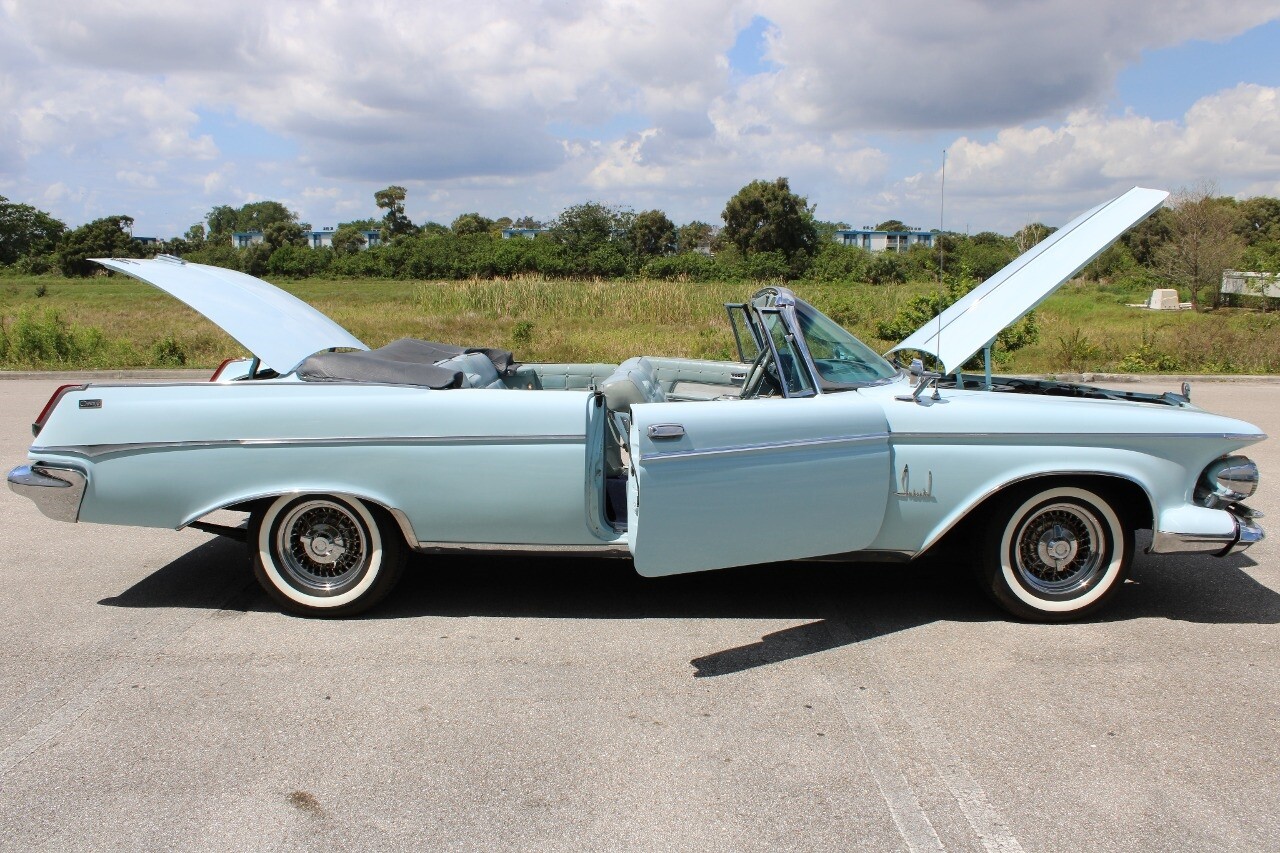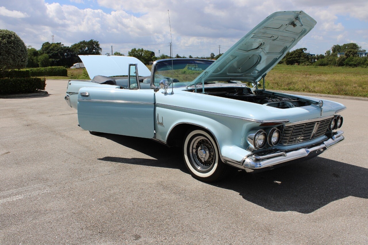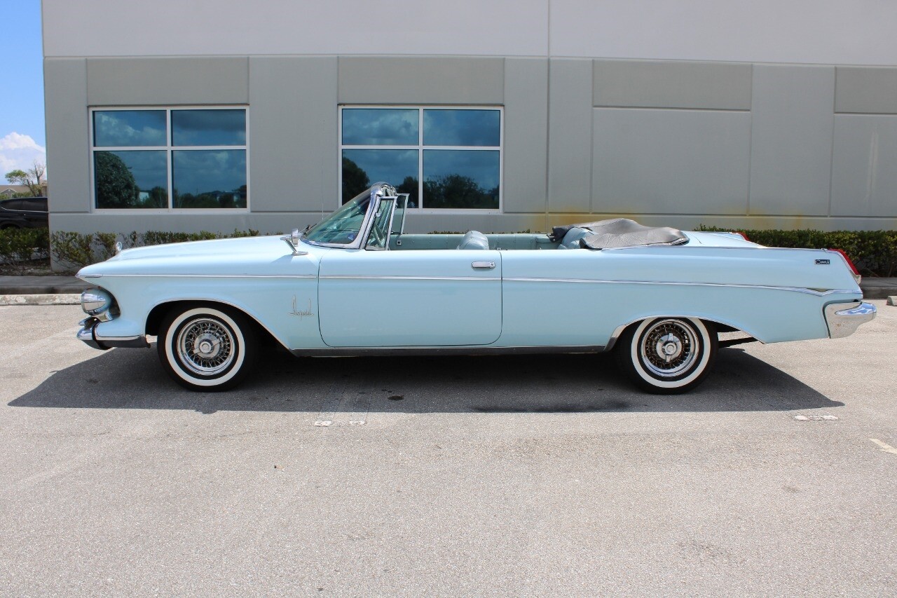 Step into the past with this stunning 1963 Chrysler Imperial Crown Convertible. This classic beauty is a sight to behold with its striking blue exterior, wonderfuly complemented by a matching blue vinyl interior.