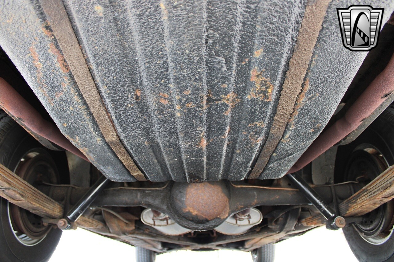The car rides on bias ply tires, encased in classic wire wheels, and highlighted by white walls, adding to its overall vintage appeal.