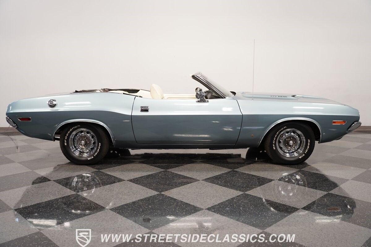 There's a big power and vintage poise kind of duality in this Challenger convertible. So while it looks terrific standing still, you know this is far more than just garage art. After all, a sharp-looking seldom-seen classic like this is meant to be shared with the world (and should be on a few magazine covers.) You're not the only one who dreams of this ultimate Mopar. So you need to hurry if you want this drop-top Hemi classic in your garage. Call today!!!