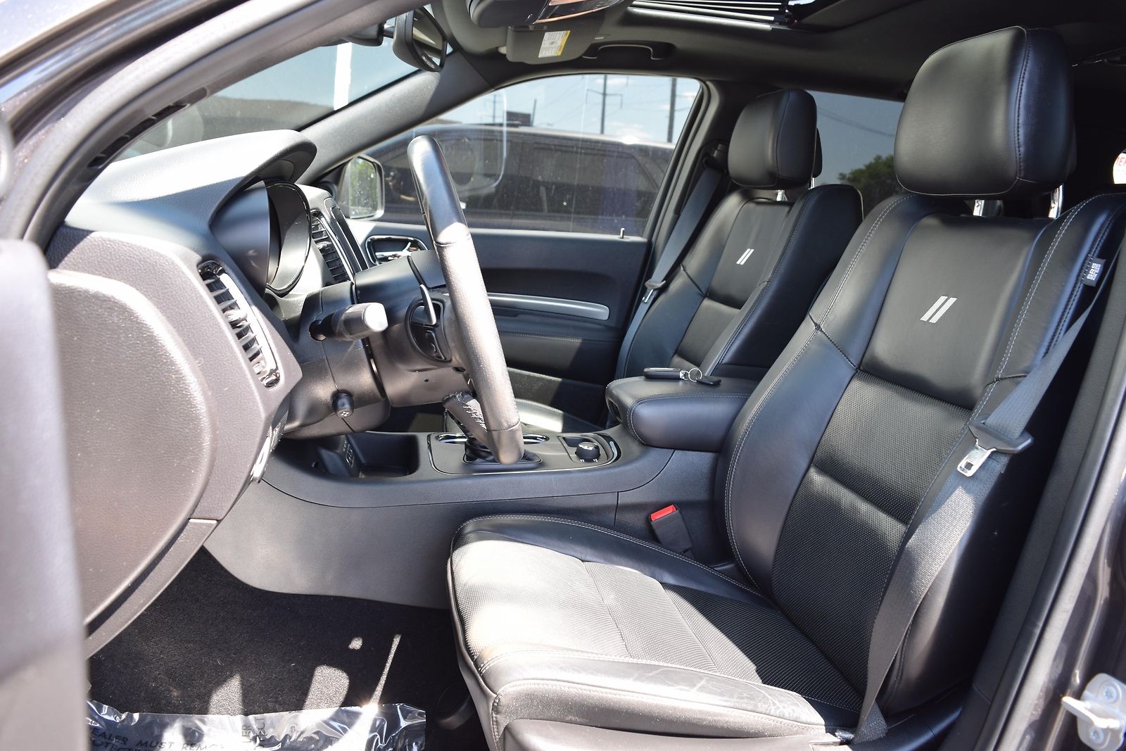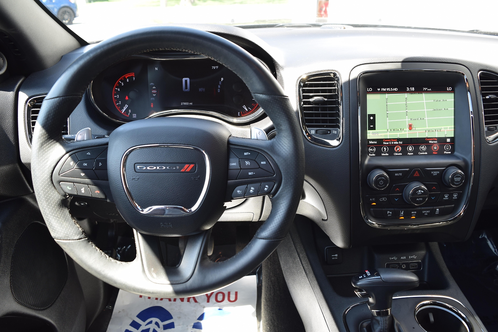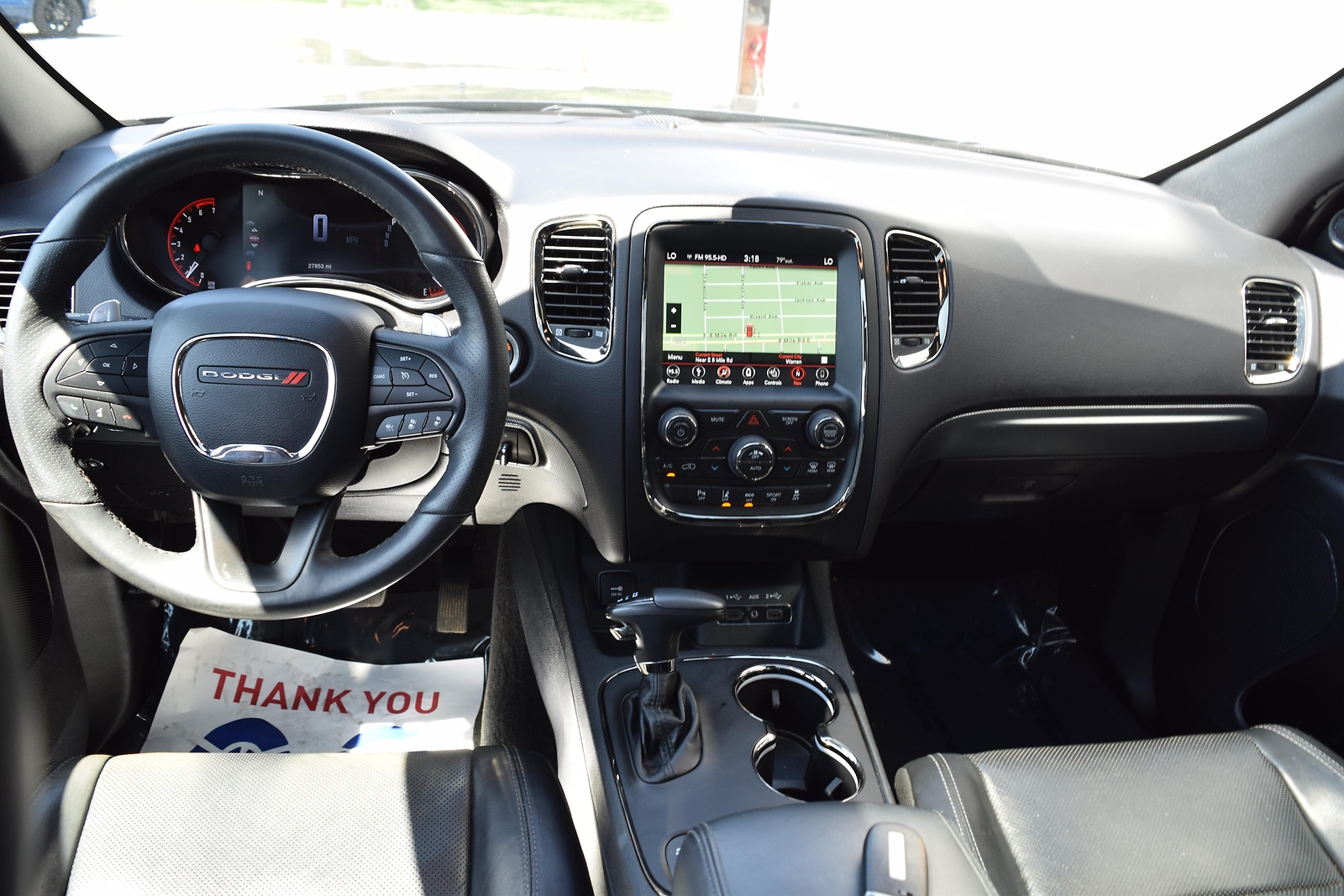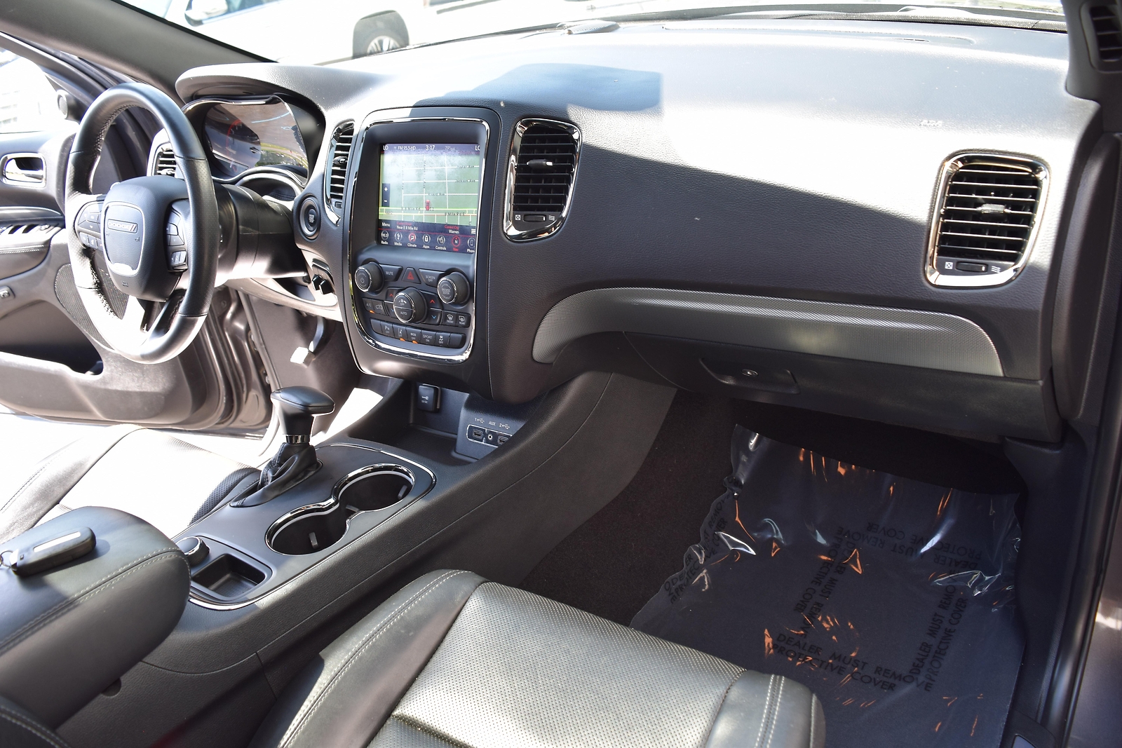 Granite Clearcoat EXTERIOR MATCHED WITH BLACK / BLACK (HEATED FRONT / HEATED MID ROW ) LEATHER / INTERIOR ON THIS 2019 Dodge Durango R/T EDITION(STICKER NEW WAS $47990)..................IT HAS THE LEGEND , STRONG 5.7 LITER V8 HEMI DURABLE WORKHORSE ENGINE( 360 HORSEPOWER & ......SPORT DRIVING MODE FEATURE................ECO DRIVING MODE OPTION.............DURANGO PERFORMANCE PAGES.................SMOOTH SHIFTING AUTOMATIC TRANSMISSION / PADDLE SHIFT ON STEERING WHEEL...........27,900 SUPER LOW MILES..............AWD / ALL WHEEL DRIVE SYSTEM).........................AWD EDITION(SPORT).......................COLD A/C..........TINTED WINDOWS.............(((POWER OPERATED SUNROOF WITH SHADE OPTION))).................FULL LEATHER SEATING / SUEDE INSERTS ..................................FOLD DOWN SECOND SEATING / FOR MORE STORAGE ROOM..................DUAL FRONT POWER SEATS.......................DRIVER SIDE MEMORY SEAT......................MEDIA / INFORMATION SCREEN...................U-CONNECT SERVICES.............BLUETOOTH................******VOICE ACTIVATED NAVIGATION MAPS SYSTEM******............WIDE SCREEN TOUCH INFORMATION CENTER-SEE PICTURES...............REAR POWER OPERATED OPEN/CLOSE TAIL GATE....................TOW HOOK PACKAGE(.Adaptive Cruise Control with Stop Trailer Brake Controller)...........REAR PARK ASSIST / ALERT SENSORS.............FRONT PARK ASSIST ALERT SENSORS...........................adaptive cruise control.........REAR VIEW BACK UP CAMERA SYSTEM..............BLIS DETECTION / BLIND SPOT ALERT SIDE BLINKING CARD READER/USB.....................BLUETOOTH...............................PUSH BUTTON START ON/OFF....................CAME WITH ONE KEY / ONE FOB............FACTORY REMOTE START.................20" BLACK SPECIAL WHEELS ON 20" TIRES............WHEEL LOCKS..................AUX...............12V DC..................TRACTION CONTROL..................HEATED LEATHER WRAPPED STEERING WHEEL.........................HEATED STEERING WHEEL............STEERING WHEEL CONTROLS.........POWER OPERATED TELESCOPIC STEERING WHEEL..............LED LIGHTS.................XENON / LED HEADLIGHTS...........POWER OPERATED REAR TAILGATE OPEN-CLOSE...............................FLOOR MATS.............TINTED WINDOWS..................COLD A/C.................MUCH MUCH MUCH MORE