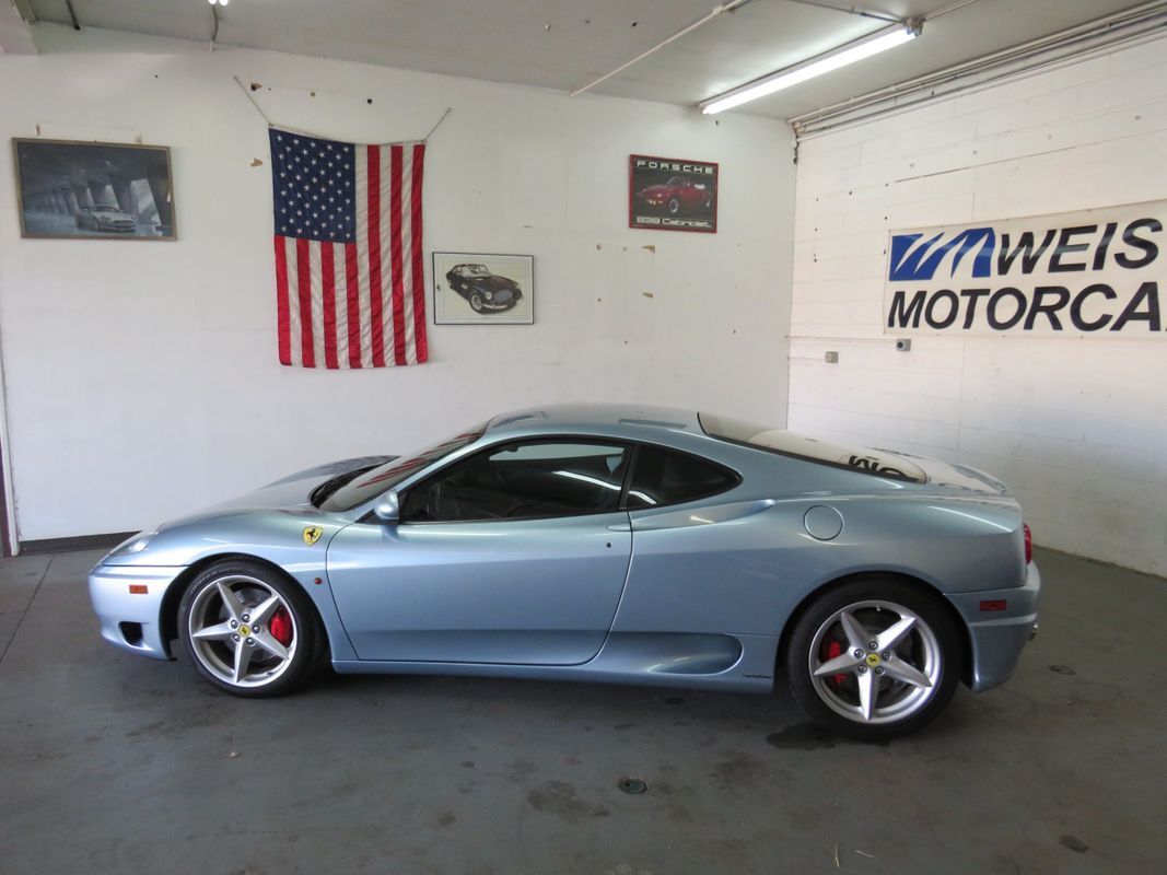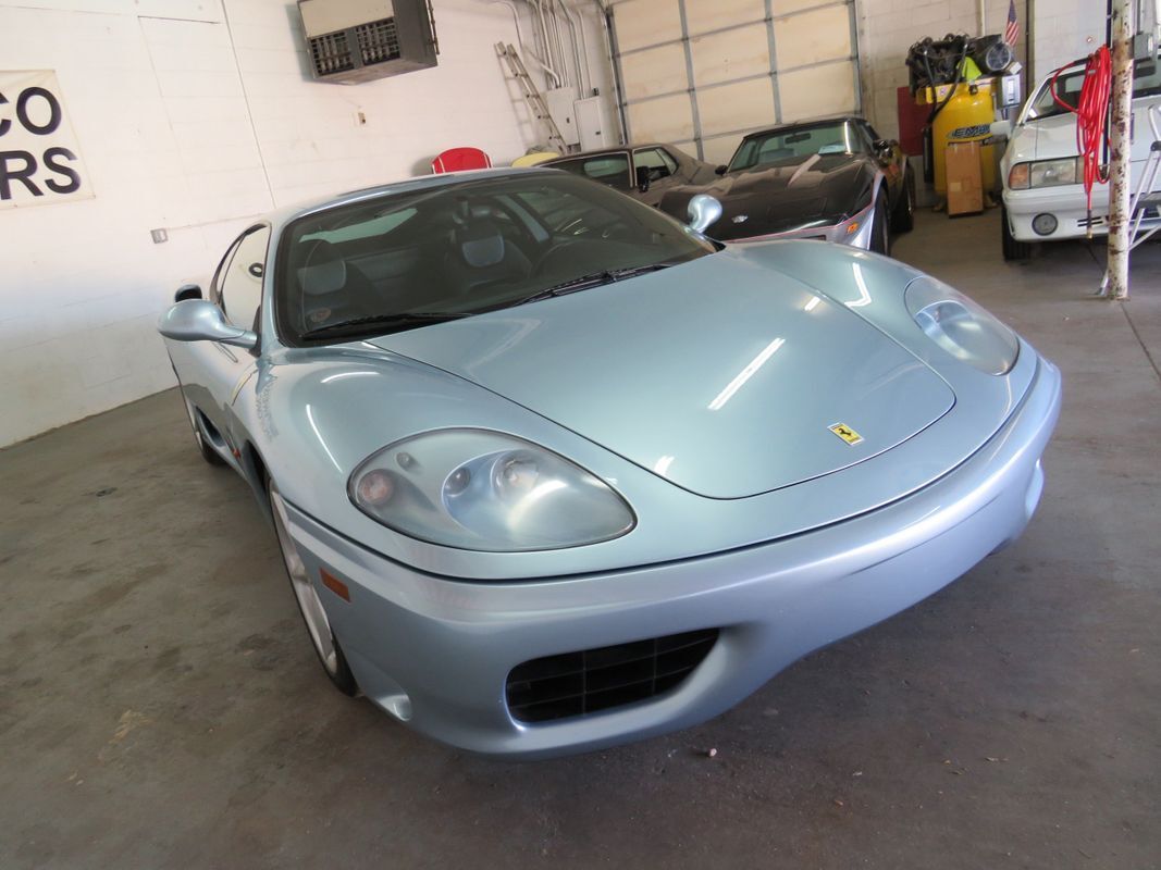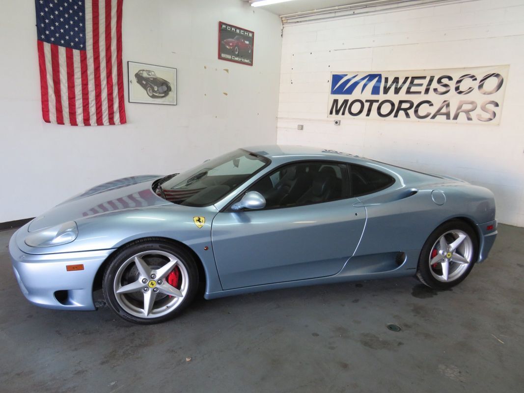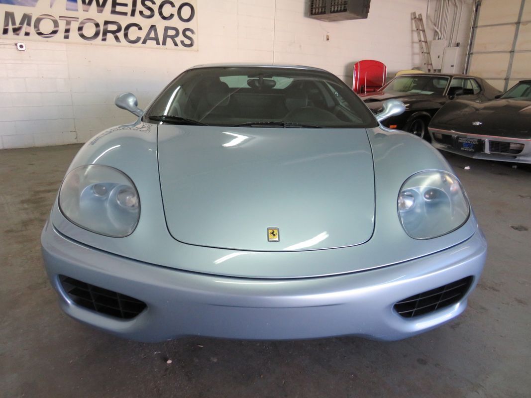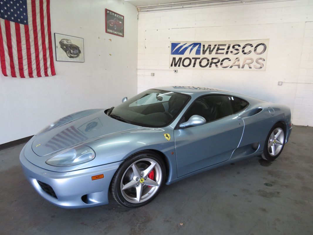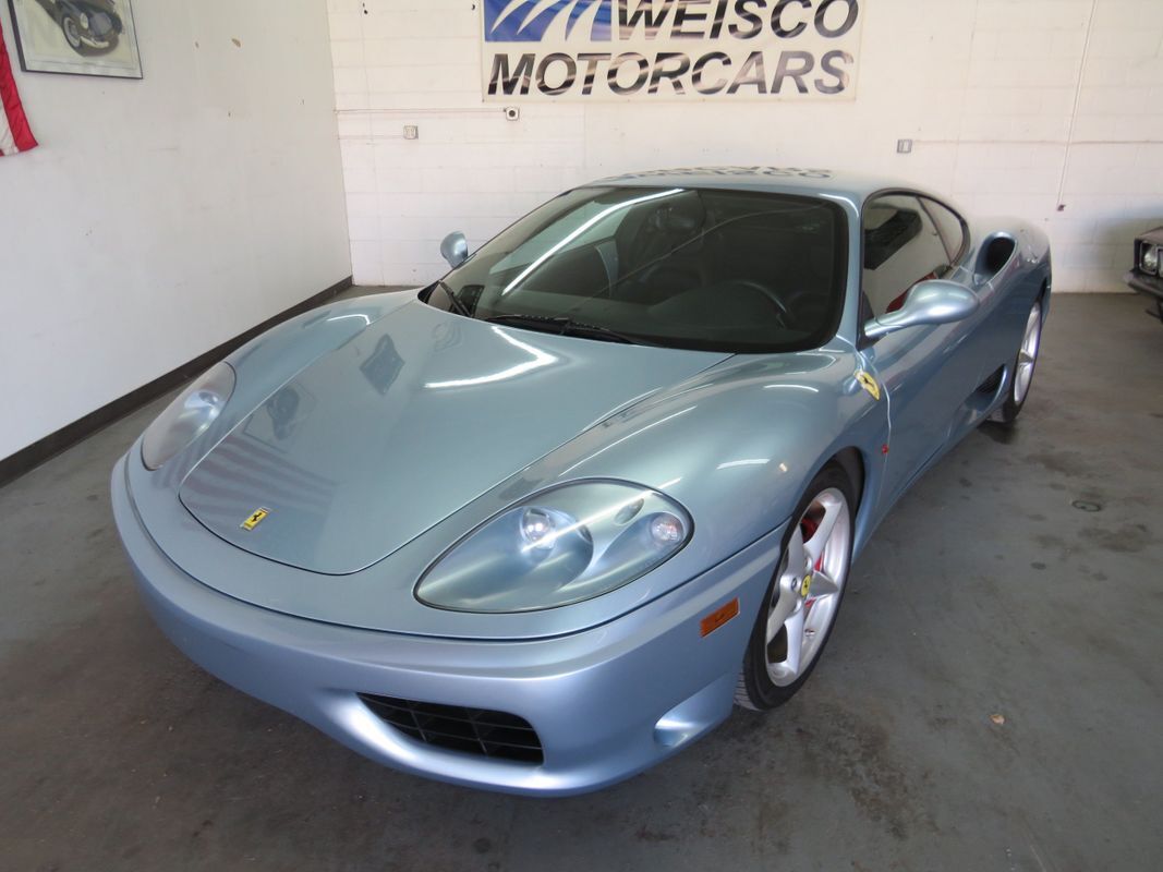2000 Ferrari 360 Modenacoupe finished in light blue exterior over midnight blue leather interior. This Ferrari 360 only has 26,587 original miles with the factory V8 and F1 gearbox. The body and paint are nearly flawless not one door ding and no chips in the paint. This Ferrari has the Ferrari shields on the fender and is very stock. The interior is in very nice condition. All the power seats. Power windows are all in working condition and does not have the sticky buttons like you typically find in most all Ferraris. These cars have done nothing but go up in value over the past several years and will continue to do so, as the Ferrari 360 is, very desirable anda very fun car to drive. Call Weisco motorcars for additional information or to schedule an appointment time to see the vehicle in person.