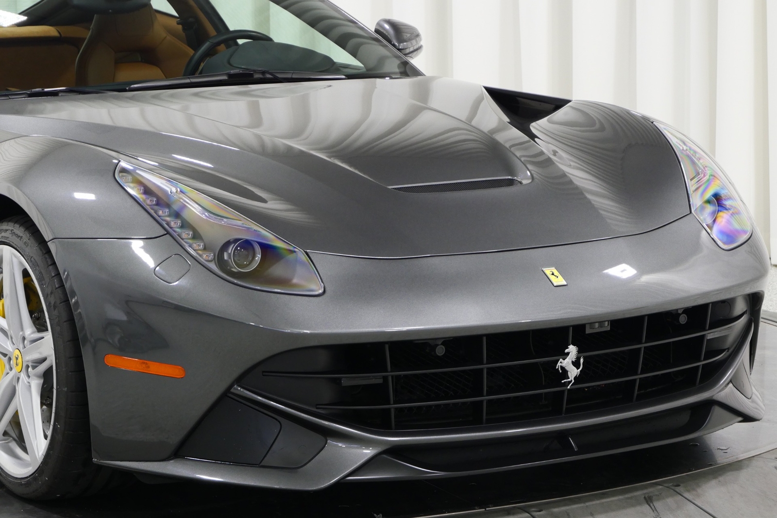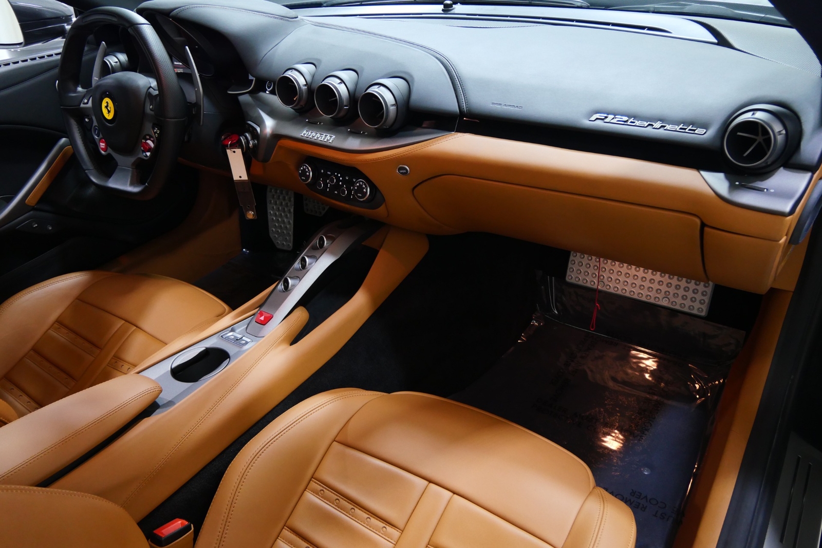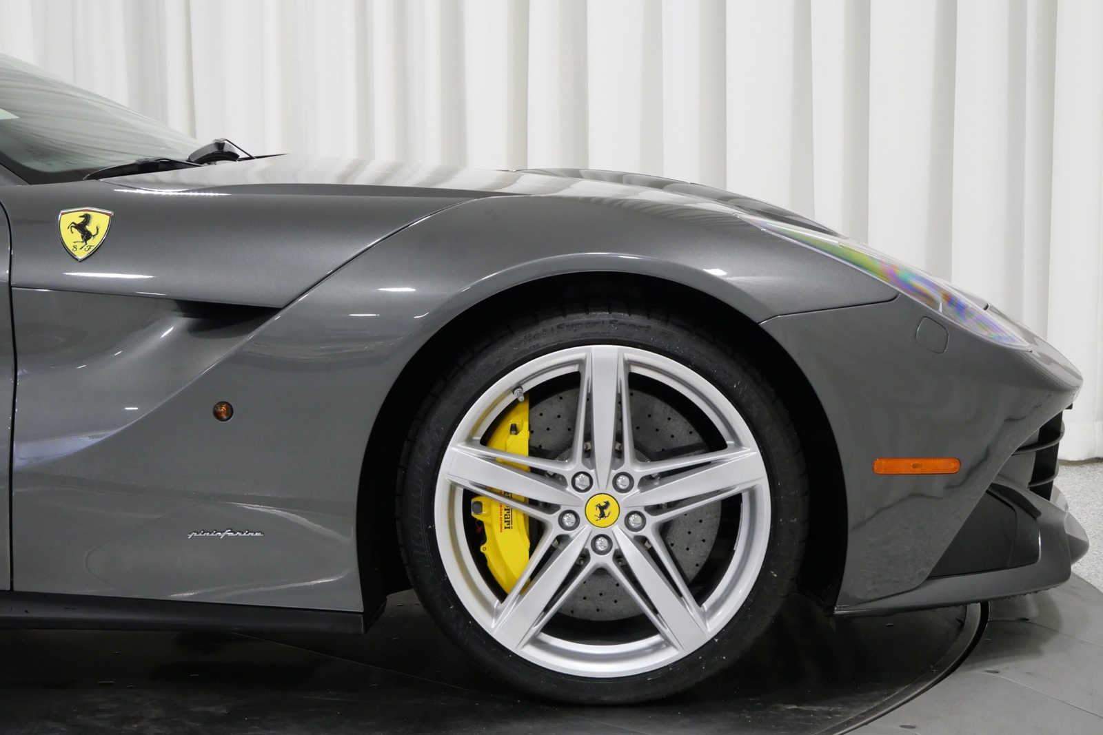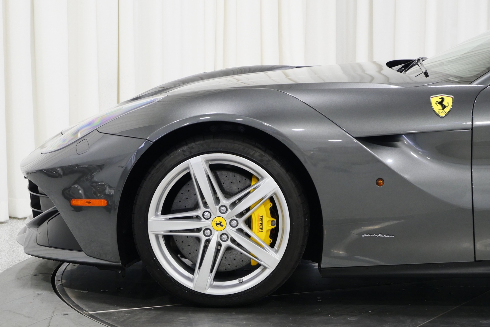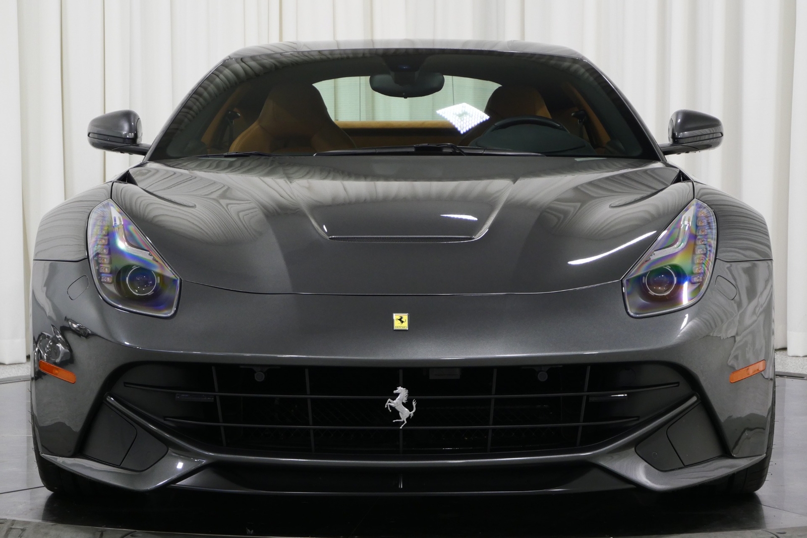 We have just added to our extensive exotic car inventory a beautiful 2014 Ferrari F12berlinetta in Grigio Silverstone over Beige leather interior and only 3,805 original miles. This F12 is loaded with: 6.3 liter V12, 7 speed automatic transmission, 20 inch forged alloy wheels in silver, yellow brake calipers, Scuderia fender shields, front axle lift, full power and heated seats, Daytona style seat inserts, leather rear wall, Alcantara rear shelf, trunk compartment in Alcantara, black rev counter, cruise control, sport exhaust, front and rear parking sensors with rear camera, car cover, battery charger and much more.
