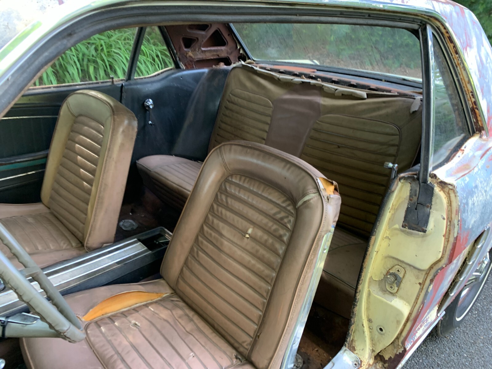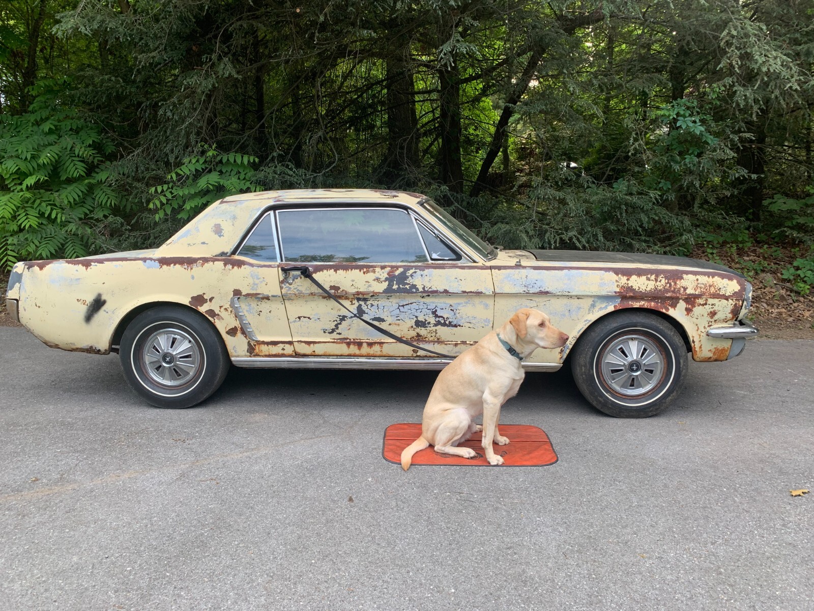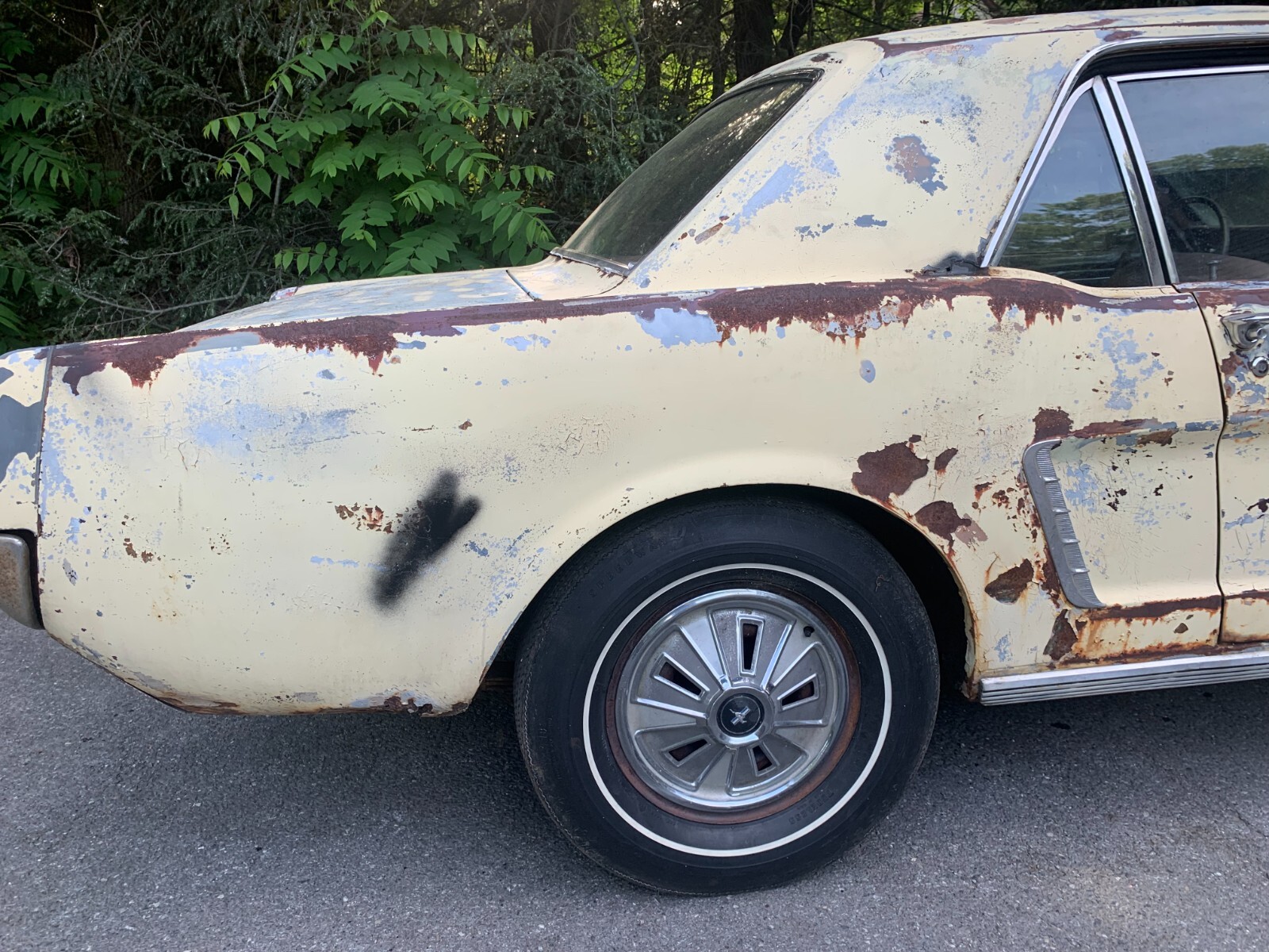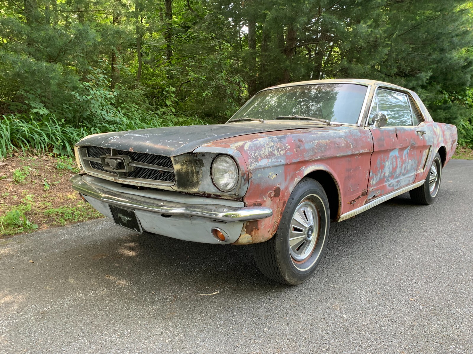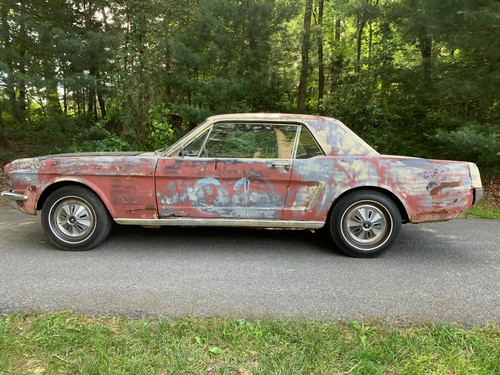 1964.5 mustang coupe V8 project for restoration. D code, power steering car from the factory, with burgundy exterior. Now has a running 302 motor and was painted yellow many years ago. Starts easily with key, motor sounds strong running off fuel tank. Has brakes with many new parts to all 4 wheels. Car runs and drives in yard, it takes trans a while to shift into forward, you have to play with it, reverse still works, trans needs a rebuild. Complete interior to restore with a nice dash pad. Car looks a little rough on the outside but has good engine bay, solid frames and Tork boxes, floors can be patched, and a new battery apron has been bolted in. Power steering pump and some parts in trunk. See pictures for work needed there is always more to do. clear PA title on hand from last owner, it matches apron vin. and door tag. We always help load and have machine on hand. Deposits are non-refundable. Bidders with less than 10 positive feedback contact us before bidding. We reserve the right to cancel any bid.