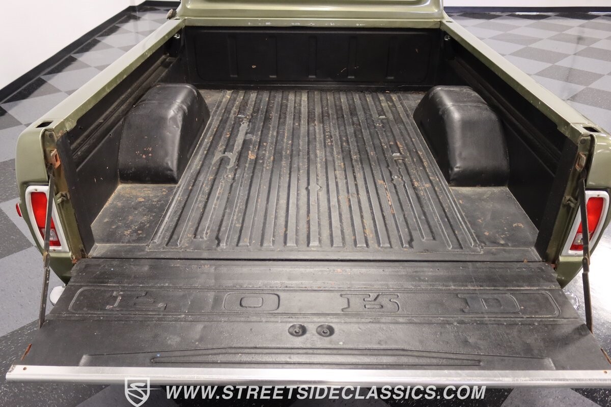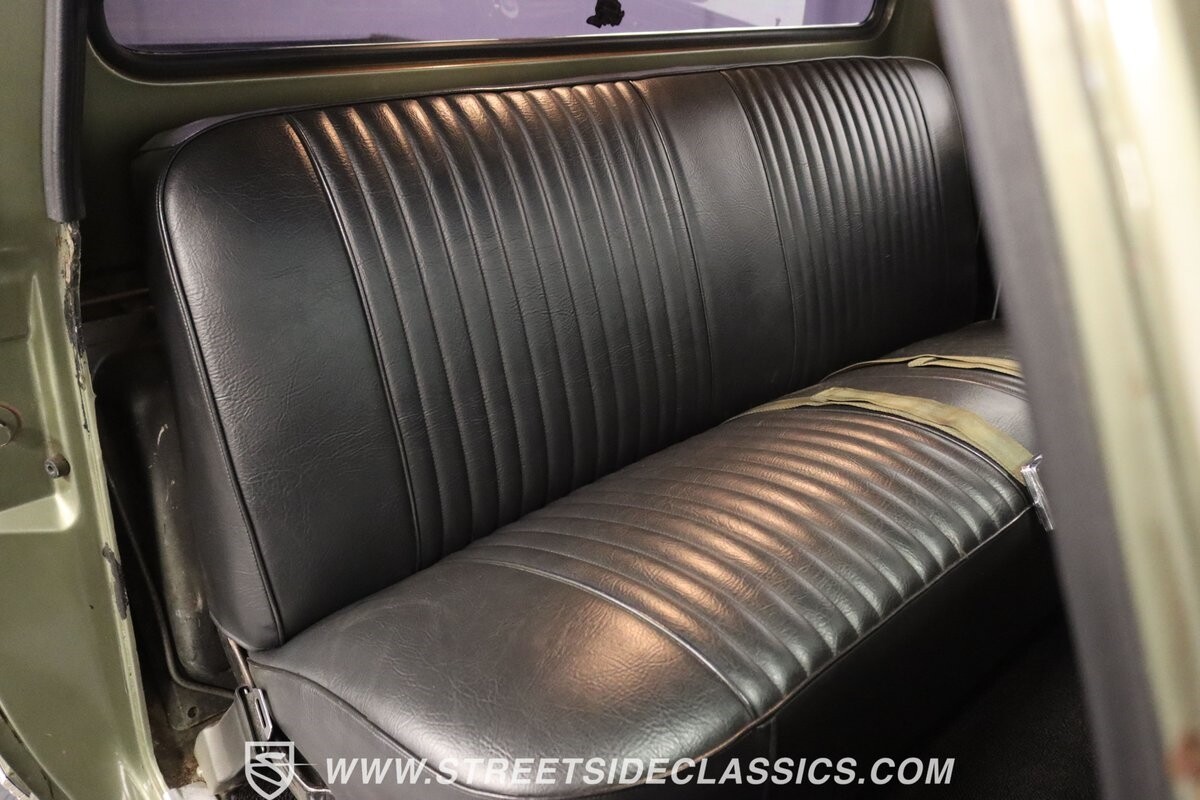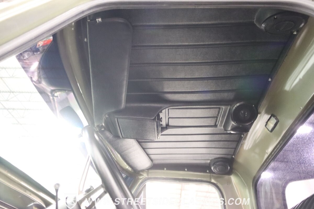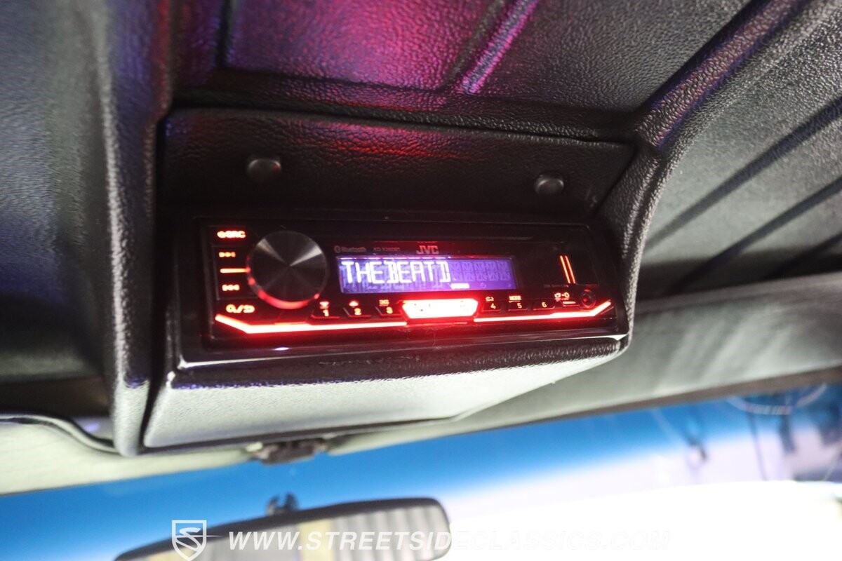 Inside the cab is clean with a black bench seat, upgraded steering wheel and a set of gauges under the dash that monitor volts, oil pressure and temperature. A custom molded black headliner holds an AM/FM/CD/AUX Bluetooth stereo and speakers. The original Ford AM radio is still in the dash. Additionally, this truck is fitted with cold air conditioning charged with modern 134a freon.