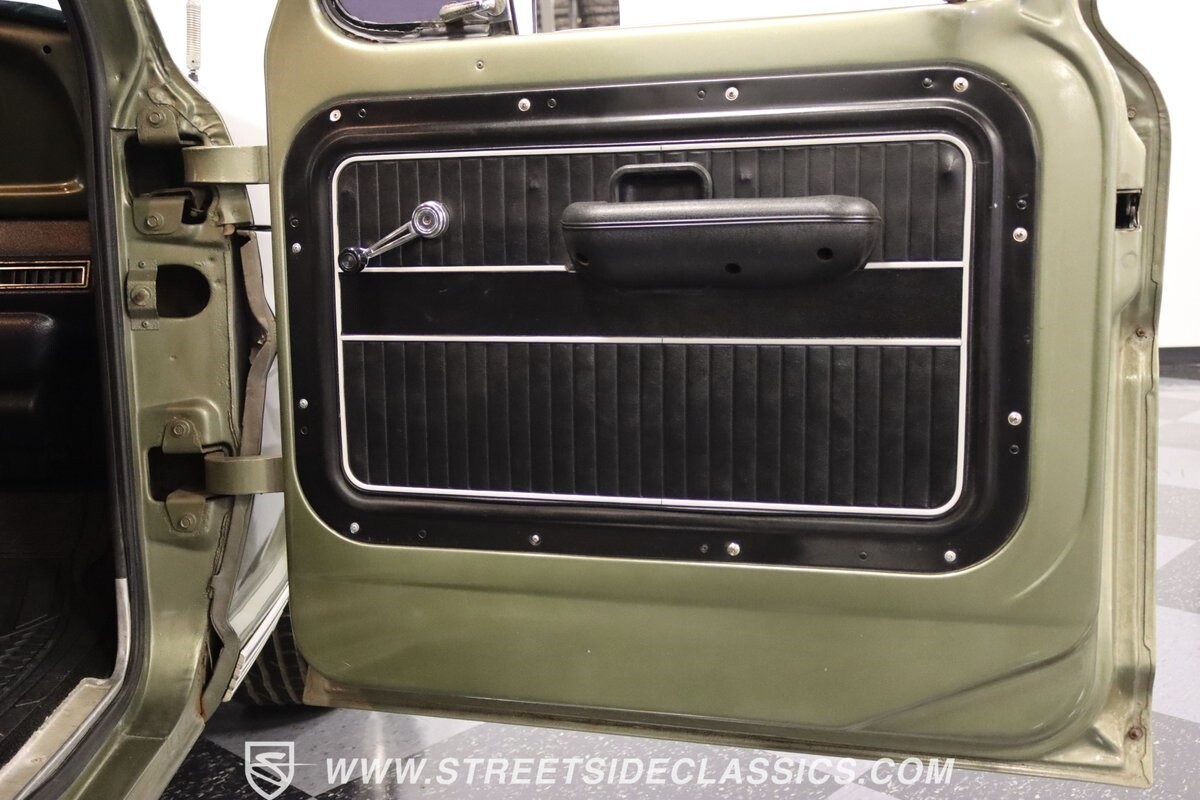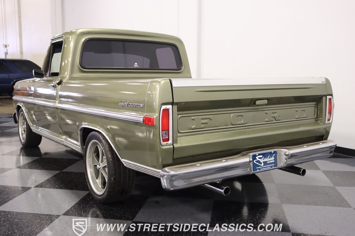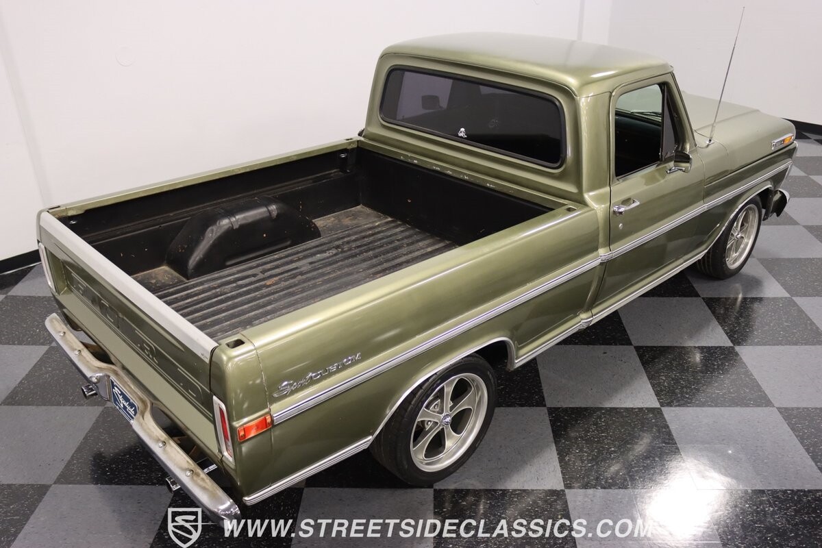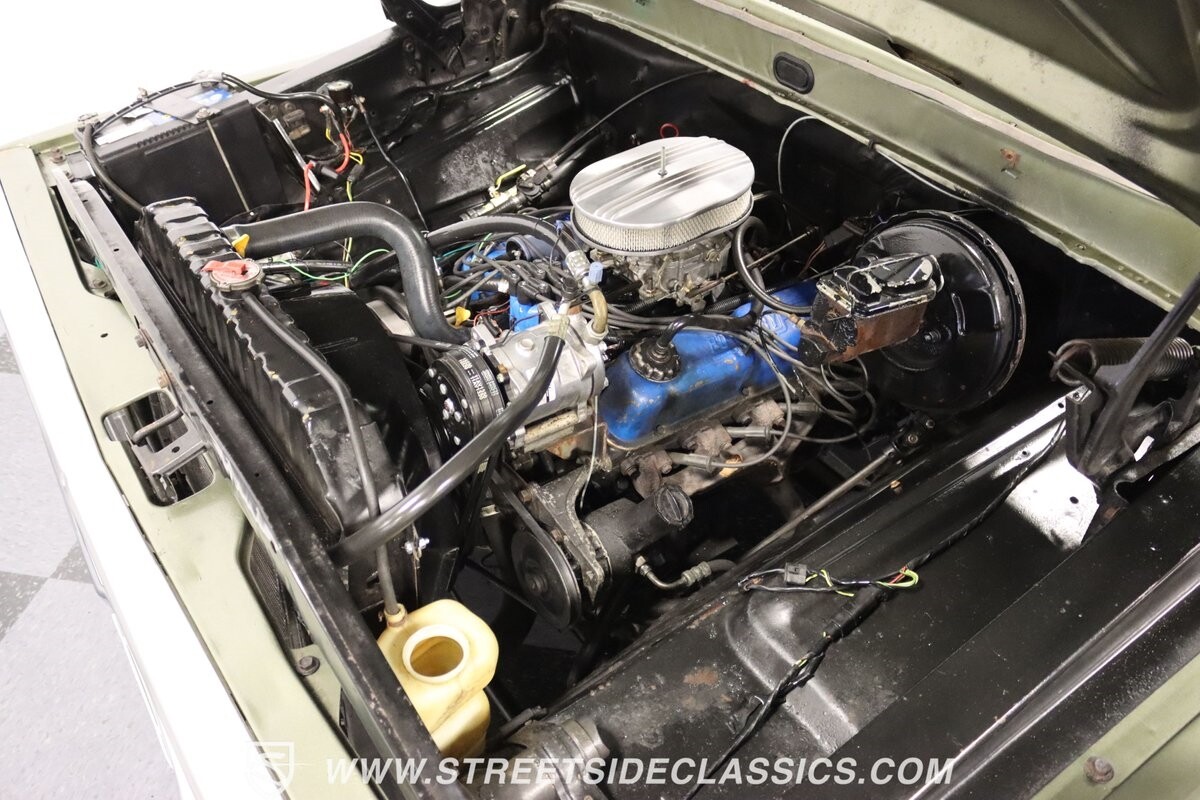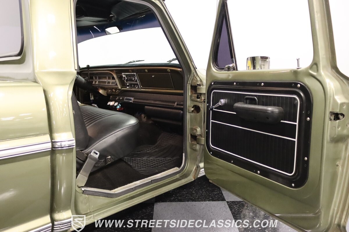 Powering this classic F-100 is a smooth-running 302 V8 engine mated to a column shifted 3-speed automatic transmission that sends power back to a 9-inch rear end. The engine bay is clean and tidy with an Edelbrock carburetor topped with an upgraded open element air cleaner, power steering, power front disc brakes and dual Flowmaster exhaust.