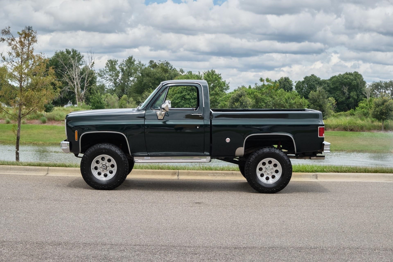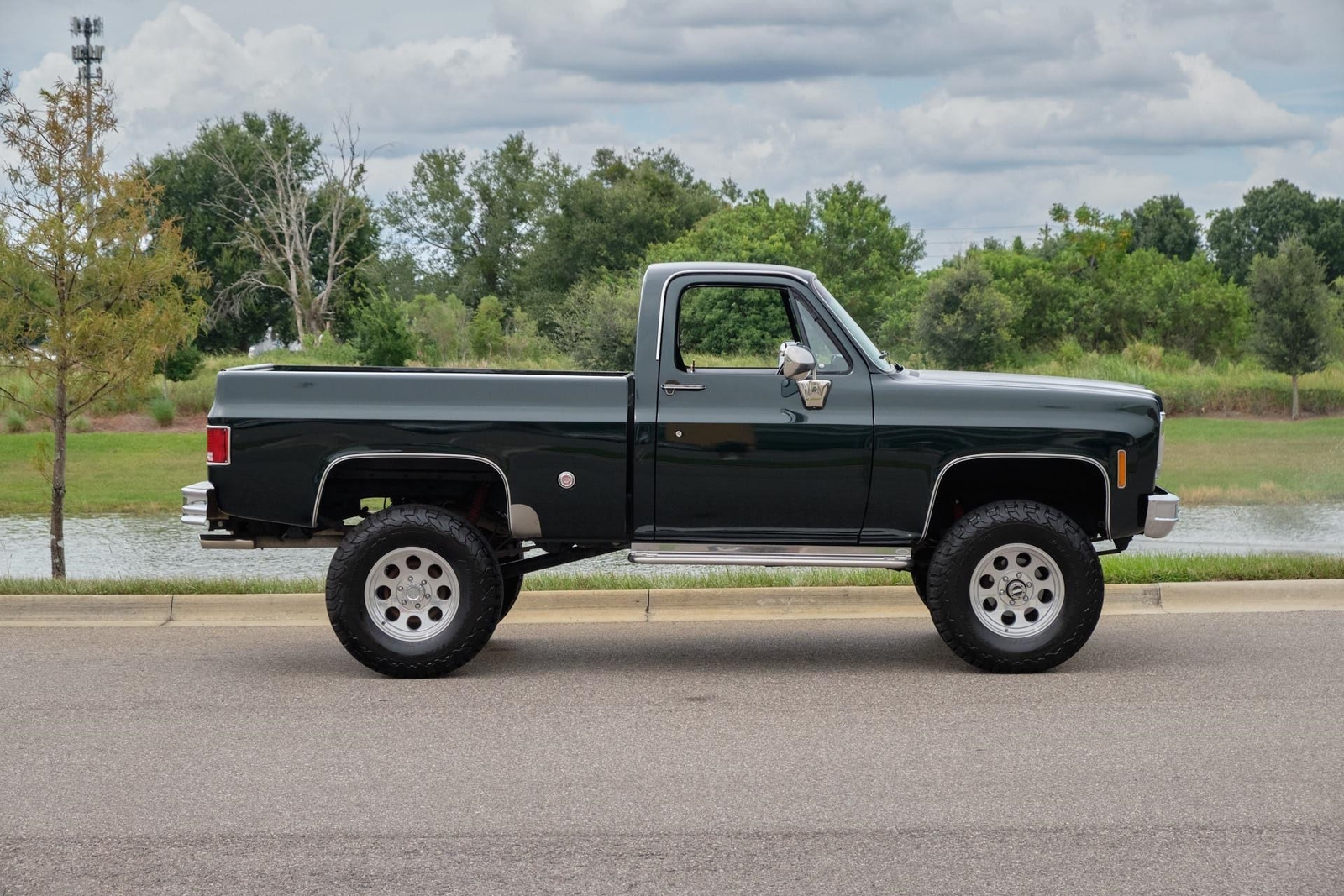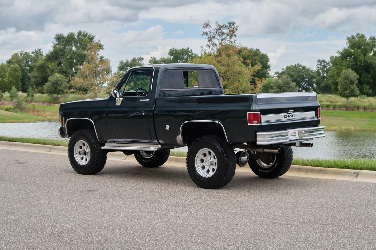 1976 GMC K15 Sierra Grande Restored, Rebuilt 400 Small Block V8 Engine with Cam, Turbo 350 Automatic Transmission with Shift Kit, All Mechanical rebuilt with receipts, New Stunning Green Paint Job with receipts, Truck was restored with no expense spared and several pages of receipts, Truck has a 4 Lift, New Tires, New 17 Wheels with 35 x 12.50 17 BF Goodrich Tires, New Carpet, New Interior, Bed liner, Air Conditioning was cold but could use a charge, Headers with Great Sounding Dual Exhaust, 4 Wheel Drive Works Great, LED Lights all around, Upgraded Stereo with 8 Subwoofer and Amp behind the seat, Speakers, Remote Control and Bluetooth. This is a turn key ready to drive enjoy or show truck! Just driven over an hour with no issues. This is the right truck! While we do our best to provide the highest quality muscle cars with an honest and reliable description and realize the importance of transparency when selling vehicles. That being said, we have not built, modified, changed or personally owned this vehicle. Whether this vehicle is consigned or owned by Past & Present Motor Cars we do not know the vehicles complete history since new. We want to be clear and try to answer any questions our customers might have prior to purchasing. Additionally, we not only welcome but we encourage 3rd party independent inspections. Please inquire prior to purchase to make sure the advertised vehicle has not already been sold. We list our vehicles on multiple websites and a vehicle can sell at any time. If a customer chooses to purchase sight unseen (many of our customers choose this option) the customer accepts the vehicle AS IS and WHERE IS and understands we cannot address concerns after purchase. For this reason, it's important all concerns are addressed prior to purchase. We make every effort to present accurate and reliable information, but use of this information is voluntary, and should only be deemed reliable after an independent review of its accuracy, completeness, and timeliness. It is the sole responsibility of the customer to verify the existence of options, accessories and the vehicle condition before time of sale. Financing is Available with low rates and Vehicle Shipping is available from our Showroom to your Garage. A Classic Car Warranty is Available for Purchase from a 3rd Party. Please speak to our Sales Associate or Company Representative for more information. Our team is working and available anytime by Phone or Text for your convenience at 407-559-7759. Thank you for your interest!