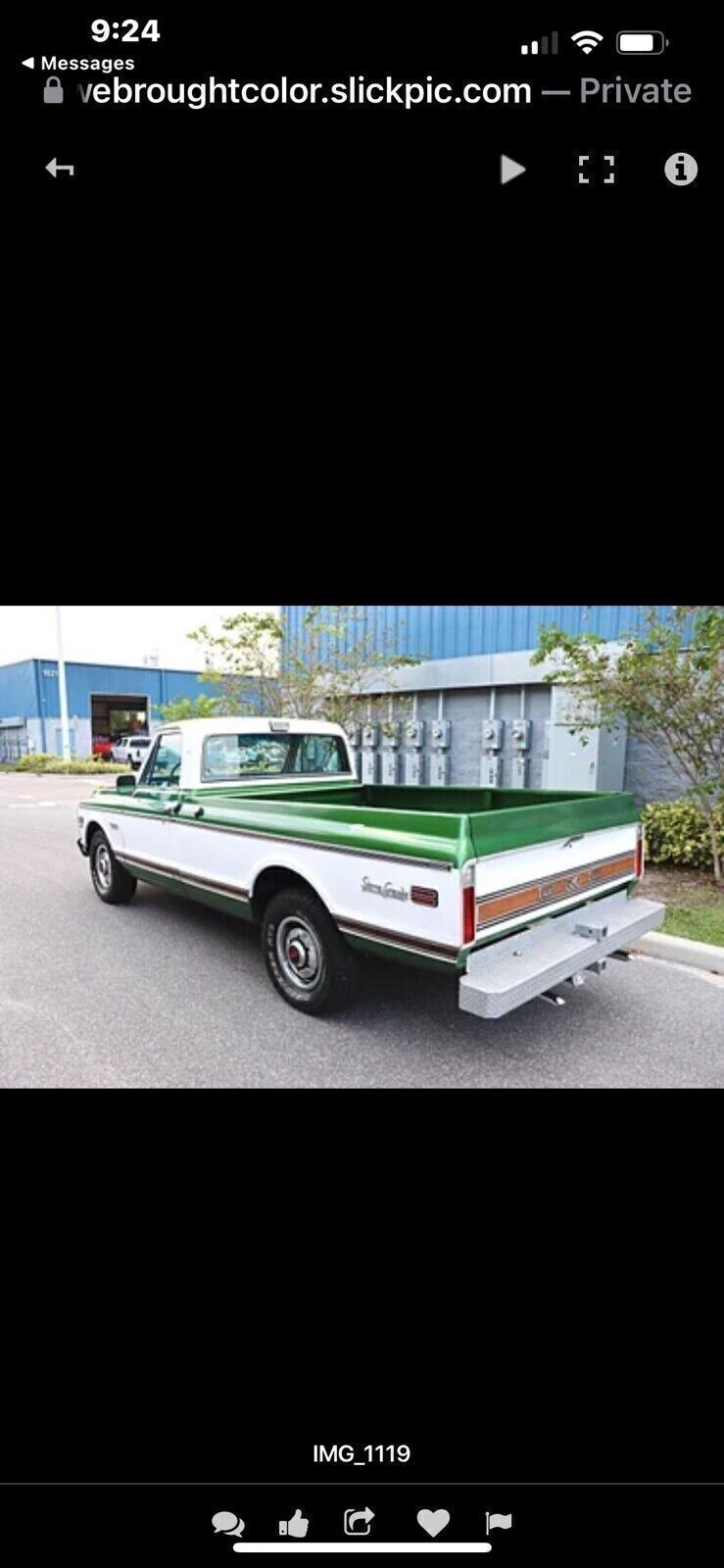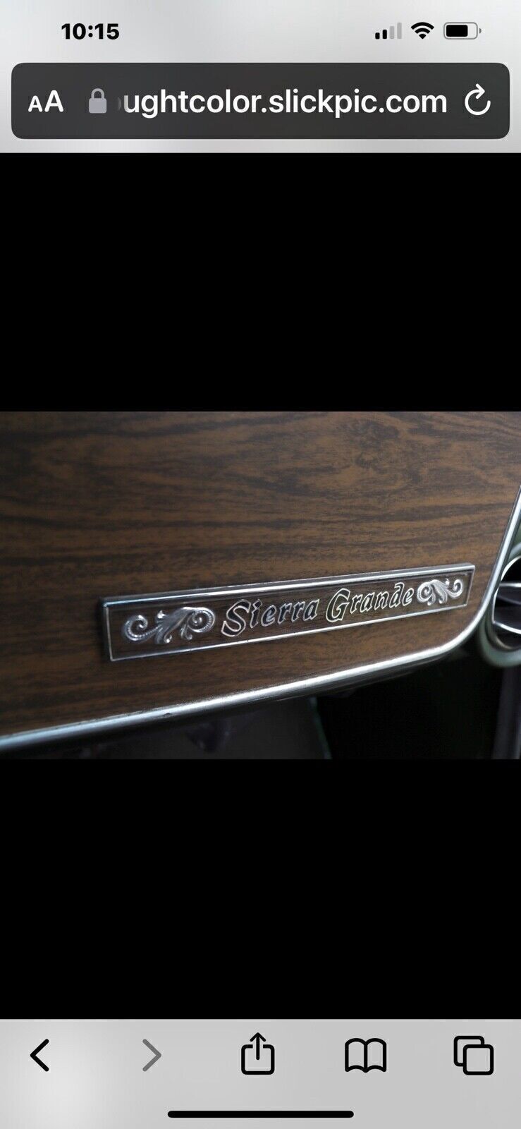 1972 GMC Sierra Grande 2500 Beautiful Inside and Out Very Rare Sierra Grande Fully Optioned Truck Original Olive Vinyl with Inserts Interior Code - 632 New Cooper Tires, Original GMC Wheels and Hubcaps, Dual Chrome Mirrors, Wood Inlay Trim, Front Bumperettes, Nice Chrome Inside and Out, Auxiliary Fuel Tank, Power Brakes, Power Steering, Original Factory Sierra Grande Package, Factory Optioned with Camper Equipment, Retractable Belts, Factory Cold A/C Converted to R-134A, Original Delco AM Strong Numbers Matching 400 Big Block V8 Engine, Smooth Shifting Turbo 400 Automatic Transmission, Factory Engine Bay, Brake Proportioning Valve, Dual Exhaust, Original Solid Floors, Original Owner's manual Original radio converted to fm and Bluetooth 900Seller's Notes