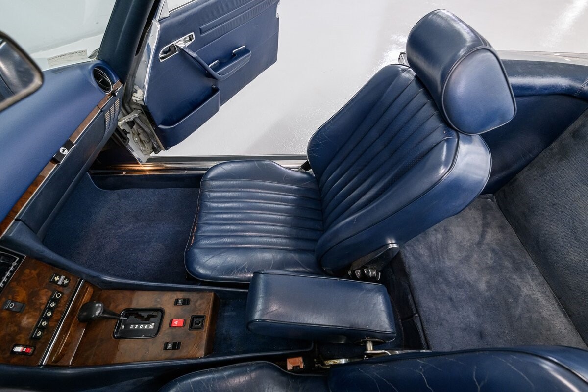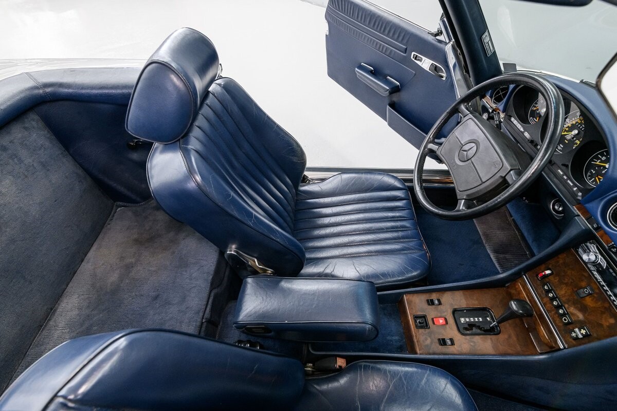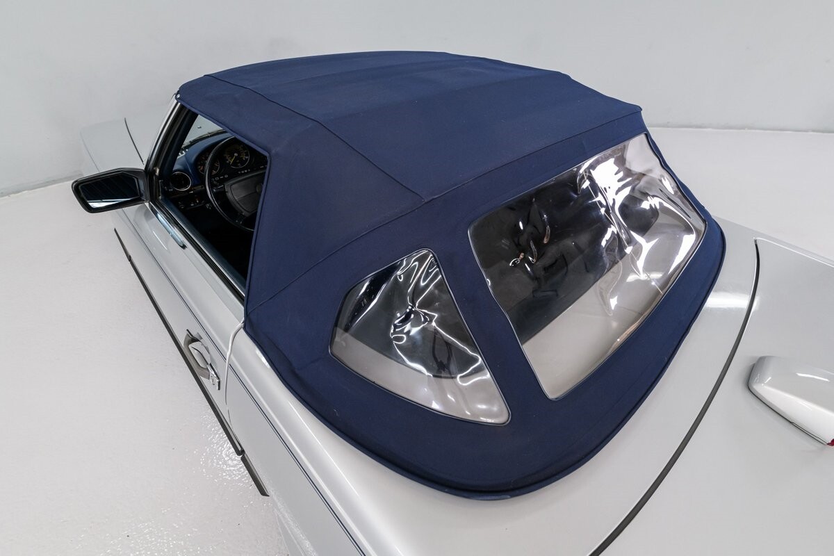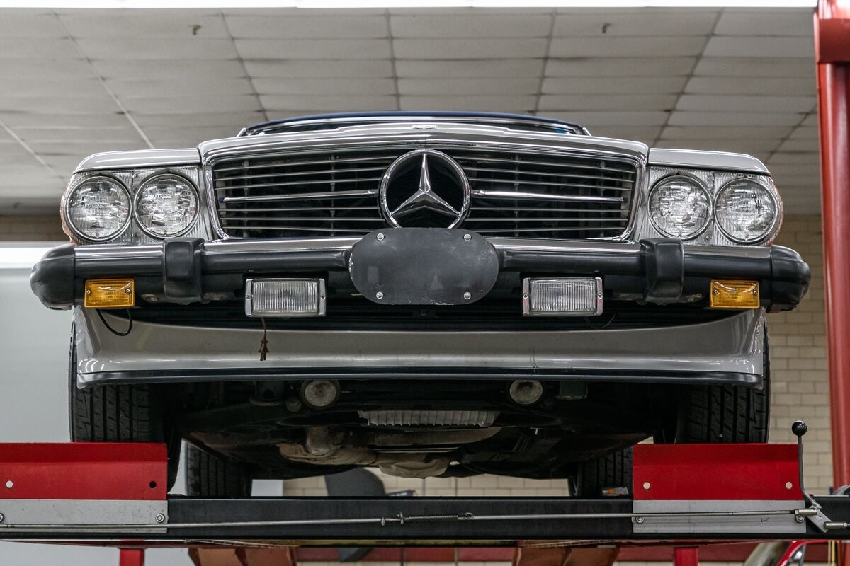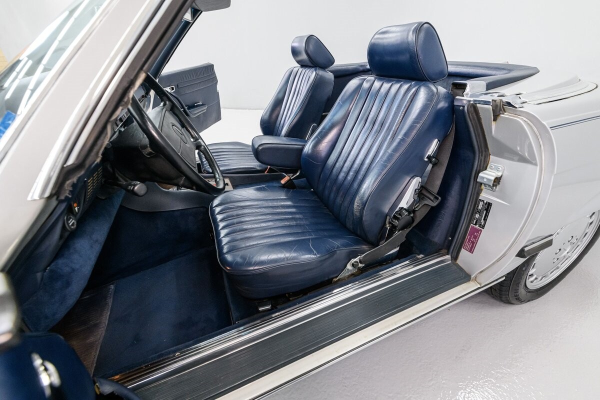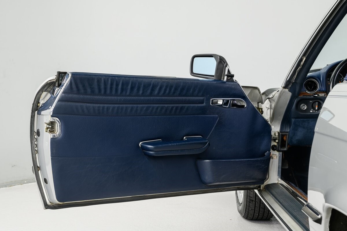 As with all Mercedes models, the 560SL roadster offers practical engineering along with a beautiful design. This 1987 560SL has been well cared for by the current owner for the past ten years. The factory Smoke Silver exterior and Navy Blue leather interior have been nicely maintained and are in very good condition. The 560SL comes equipped with a removable hardtop and a soft top that folds into the boot, both in fine order. (A storage rack for the hardtop is also included.) All aspects of the interior are influenced by safety, but features like top-grain leather upholstery, genuine wood veneer trim and chrome accents provide a wonderful feeling of luxury. Standard safety/comfort options include driver's side airbag, automatic climate control, power seats, power locks, power tinted windows, tilt wheel and cruise control. This 560SL is also fitted with a premium Pioneer AM/FM/CD sound system. Horsepower is furnished by SOHC 5.6L V8 that is equipped with Bosch KE-Jetronic fuel injection. Output was factory rated at 227bhp/279lb-ft. The chassis has 4-wheel power disc brakes, a limited-slip differential and distinctive 15" factory alloys that mount Firestone Firehawk performance radials. The Mercedes is offered with a recent CarFax report and regular maintenance records have also been provided by the owner. This Mercedes 560SL is a well preserved example of a fine luxury roadster. ALL VEHICLES SOLD "AS IS".