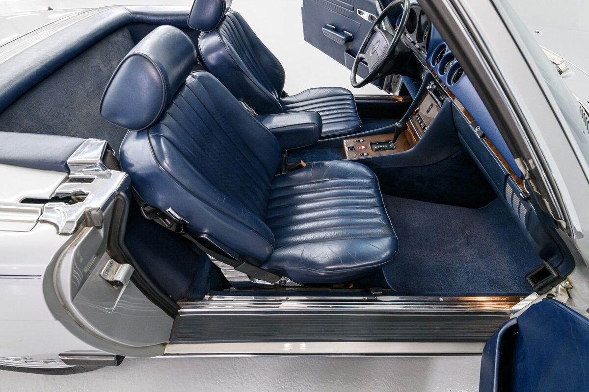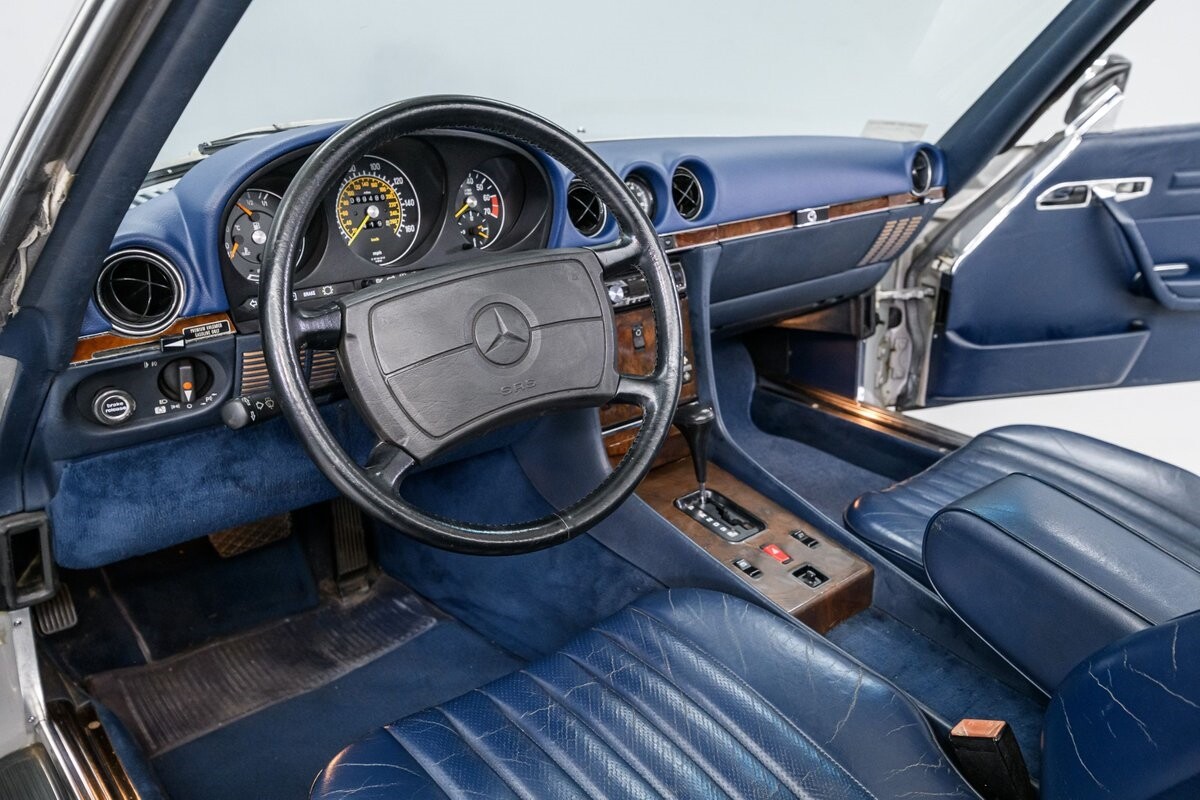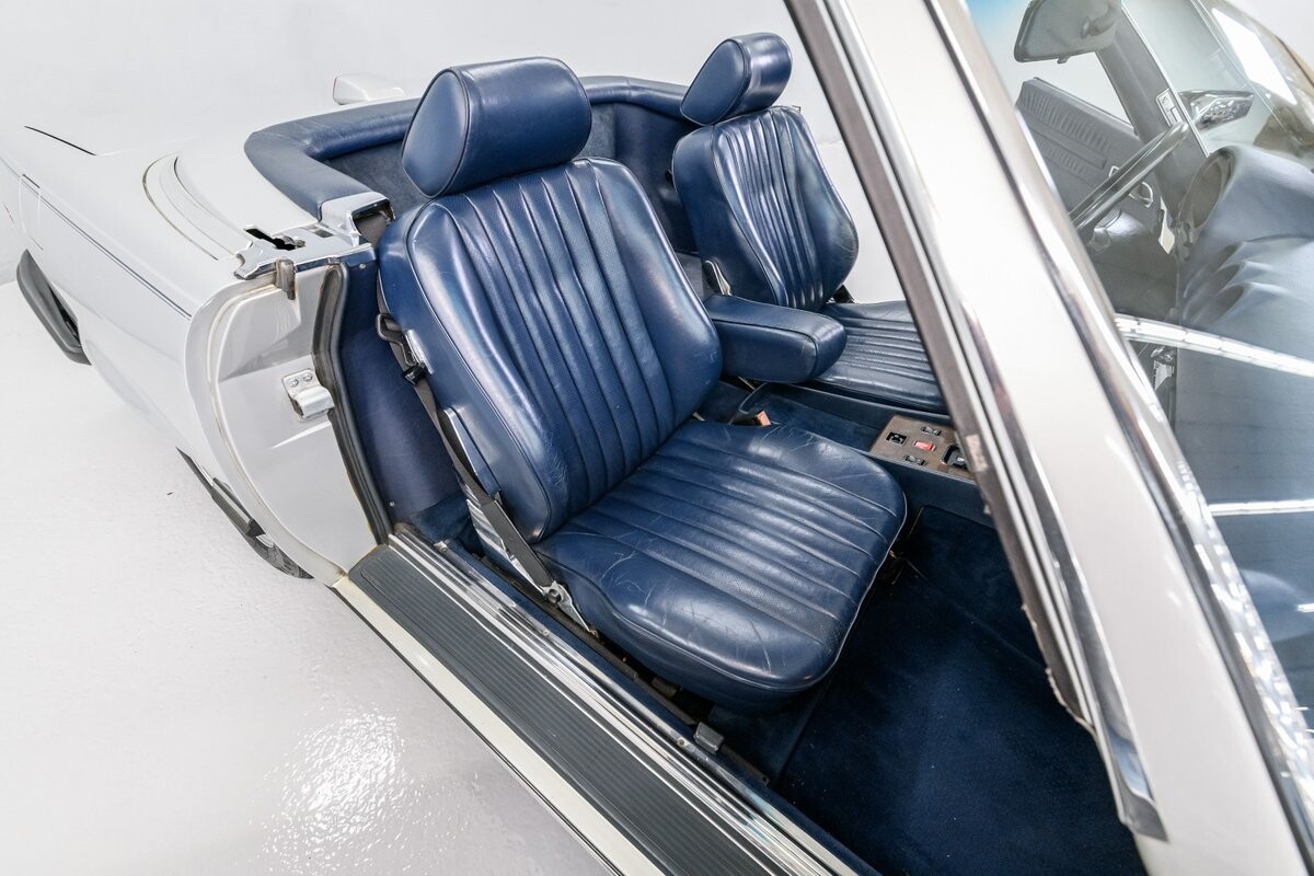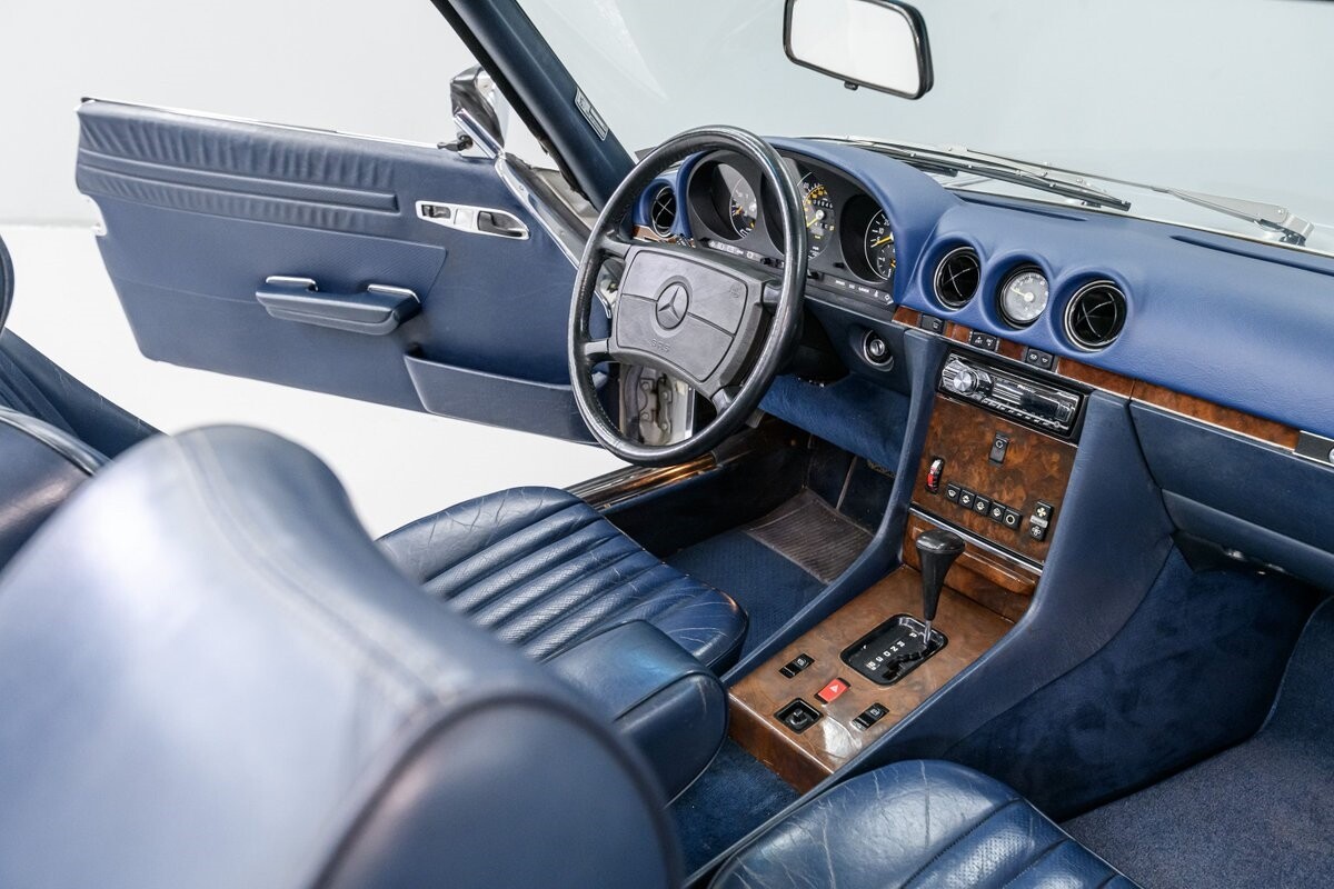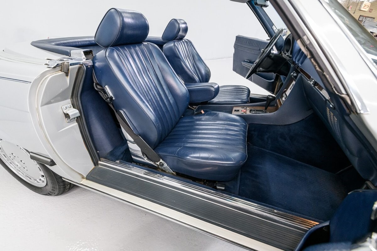 As with all Mercedes models, the 560SL roadster offers practical engineering along with a beautiful design. This 1987 560SL has been well cared for by the current owner for the past ten years. The factory Smoke Silver exterior and Navy Blue leather interior have been nicely maintained and are in very good condition. The 560SL comes equipped with a removable hardtop and a soft top that folds into the boot, both in fine order. (A storage rack for the hardtop is also included.) All aspects of the interior are influenced by safety, but features like top-grain leather upholstery, genuine wood veneer trim and chrome accents provide a wonderful feeling of luxury. Standard safety/comfort options include driver's side airbag, automatic climate control, power seats, power locks, power tinted windows, tilt wheel and cruise control. This 560SL is also fitted with a premium Pioneer AM/FM/CD sound system. Horsepower is furnished by SOHC 5.6L V8 that is equipped with Bosch KE-Jetronic fuel injection. Output was factory rated at 227bhp/279lb-ft. The chassis has 4-wheel power disc brakes, a limited-slip differential and distinctive 15" factory alloys that mount Firestone Firehawk performance radials. The Mercedes is offered with a recent CarFax report and regular maintenance records have also been provided by the owner. This Mercedes 560SL is a well preserved example of a fine luxury roadster. ALL VEHICLES SOLD "AS IS".
