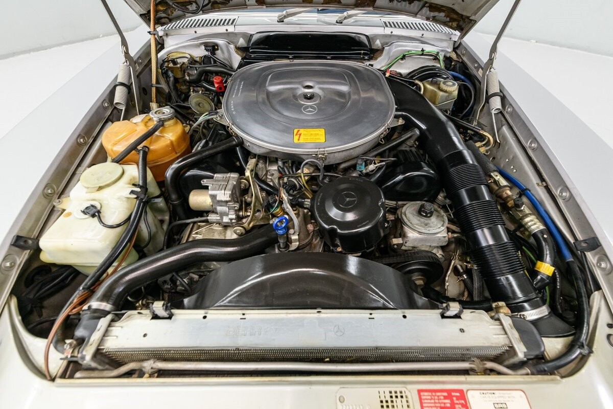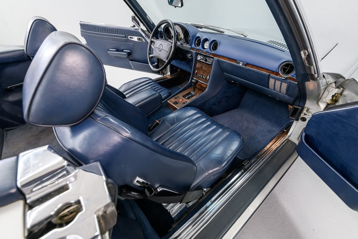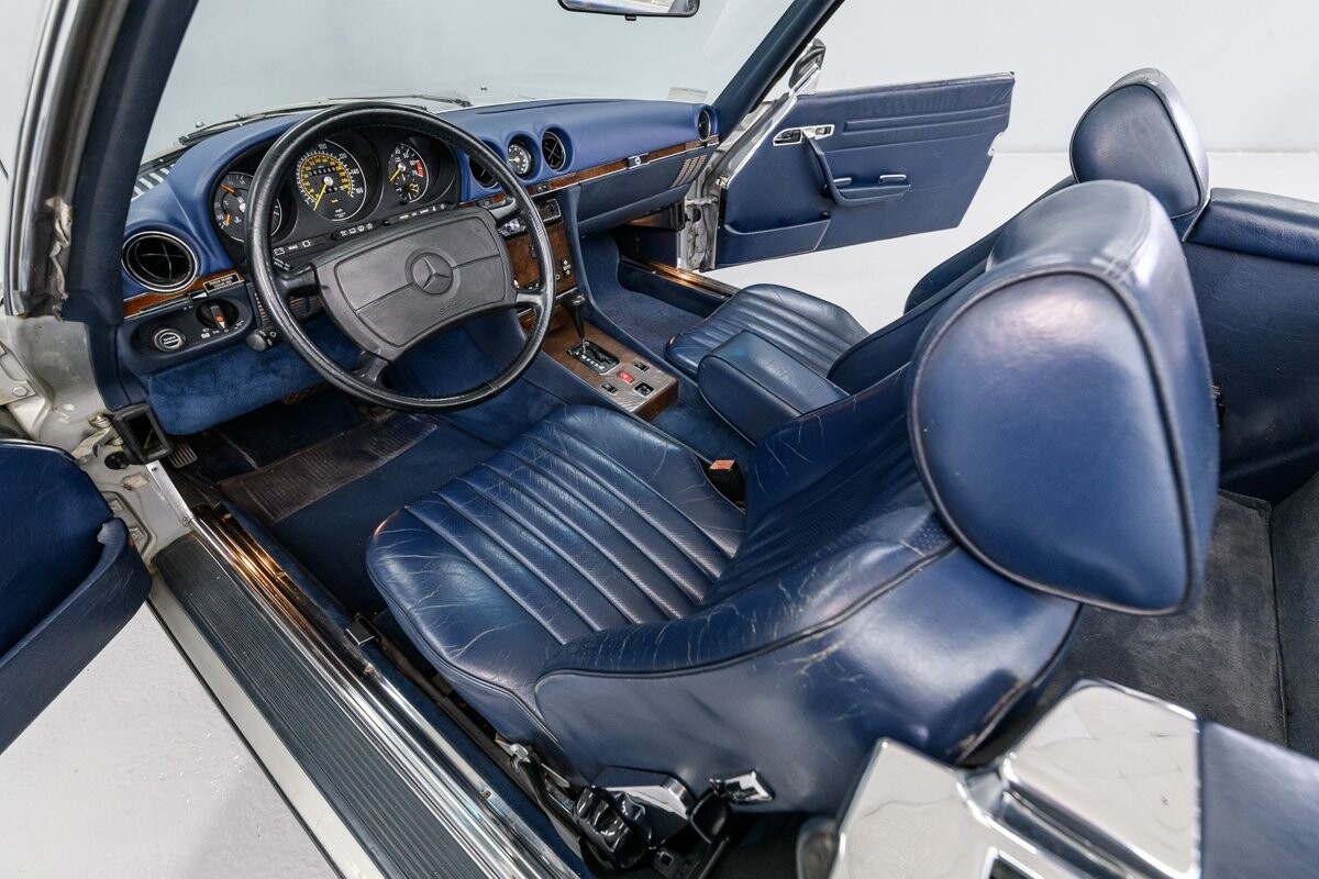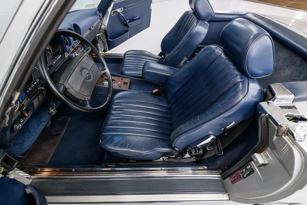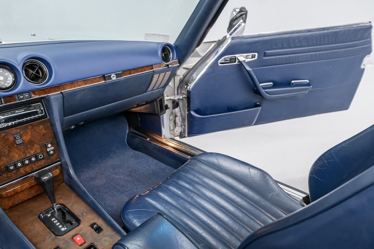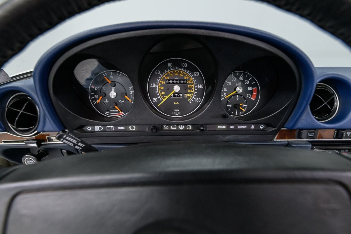 As with all Mercedes models, the 560SL roadster offers practical engineering along with a beautiful design. This 1987 560SL has been well cared for by the current owner for the past ten years. The factory Smoke Silver exterior and Navy Blue leather interior have been nicely maintained and are in very good condition. The 560SL comes equipped with a removable hardtop and a soft top that folds into the boot, both in fine order. (A storage rack for the hardtop is also included.) All aspects of the interior are influenced by safety, but features like top-grain leather upholstery, genuine wood veneer trim and chrome accents provide a wonderful feeling of luxury. Standard safety/comfort options include driver's side airbag, automatic climate control, power seats, power locks, power tinted windows, tilt wheel and cruise control. This 560SL is also fitted with a premium Pioneer AM/FM/CD sound system. Horsepower is furnished by SOHC 5.6L V8 that is equipped with Bosch KE-Jetronic fuel injection. Output was factory rated at 227bhp/279lb-ft. The chassis has 4-wheel power disc brakes, a limited-slip differential and distinctive 15" factory alloys that mount Firestone Firehawk performance radials. The Mercedes is offered with a recent CarFax report and regular maintenance records have also been provided by the owner. This Mercedes 560SL is a well preserved example of a fine luxury roadster. ALL VEHICLES SOLD "AS IS".