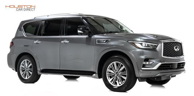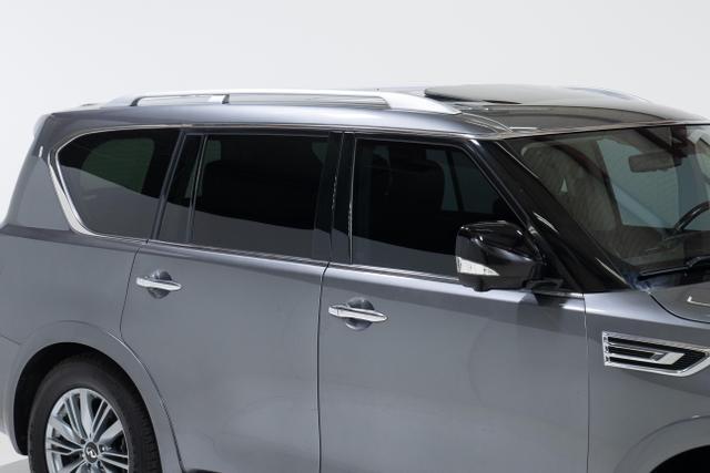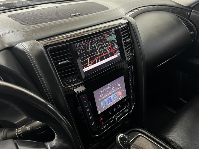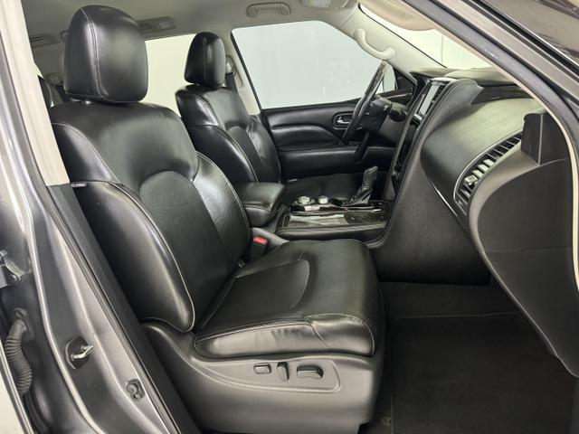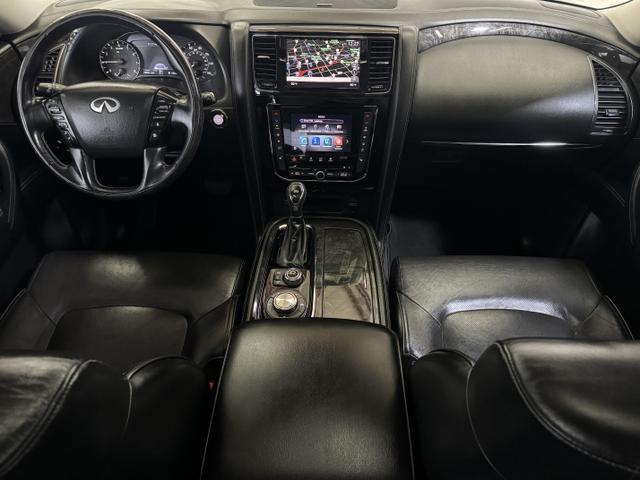 Power Door Locks, Air Conditioning, Dual Air Bags, Power Steering, Heated Seats, Air Conditioning, Rear, Lane Departure Warning System, Side Air Bags, Towing Pkg, Oversized Premium Wheels 20'+, Intelligent Cruise Control, AM/FM/HD Radio, Dual Power Seats, F&R Parking Sensors, Tilt & Telescoping Wheel, Alarm System, F&R Head Curtain Air Bags, Hill Start Assist, LED Headlamps, Power Liftgate Release, Traction Control, Blind-Spot Warning System, Keyless Entry, SiriusXM Satellite, Fog Lights, Power Moon Roof, Around View Monitor, Vehicle Dynamic Control, Power Windows, Automatic, 7-Spd Adaptive w/Manual Mode & Downshift Rev Matching, Navigation System, Push Button Start, Leather, Running Boards, ABS (4-Wheel), Quad Seating (4 Buckets), 4WD, V8, 5.6 Liter, Bluetooth Wireless, Infiniti InTouch