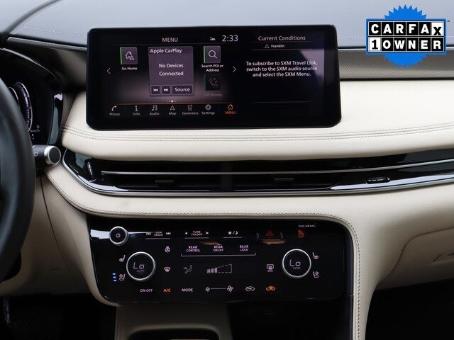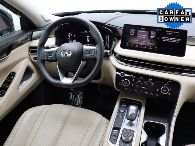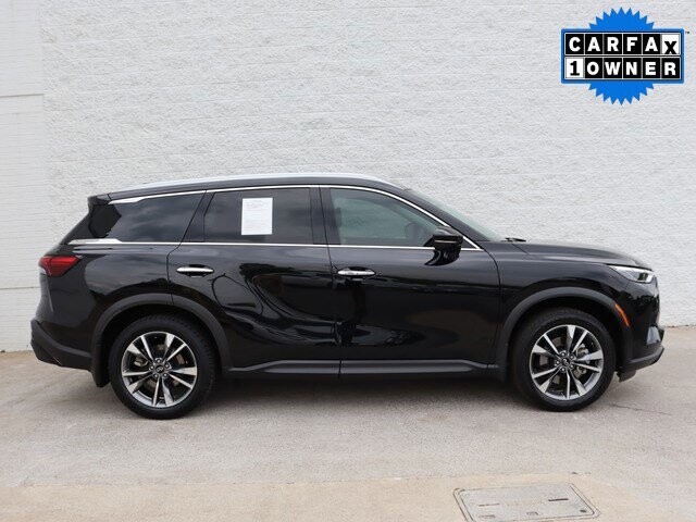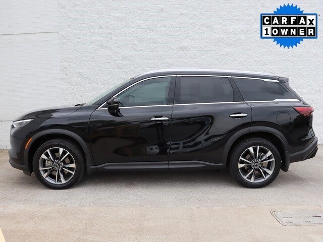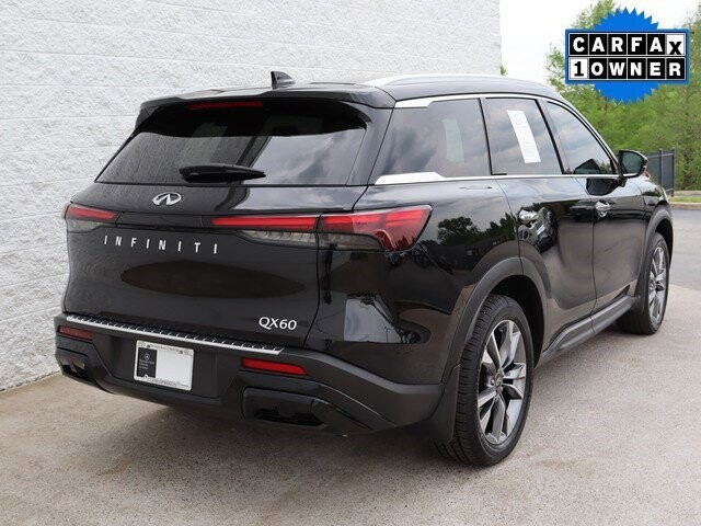 Confident and commanding, our 2023 INFINITI QX60 LUXE in Mineral Black is for drivers who live by their own rules! Motivated by a 3.5 Liter V6 that provides 295hp tethered to a paddle-shifted CVT for a terrific driving experience. Sport and Snow modes unlock upgraded capability, and this Front Wheel Drive SUV sees nearly 26mpg on the highway. Our QX60 attracts attention as it goes by with strong lines, a panoramic sunroof, LED lighting, silver roof rails, gloss-black undercovers, a power liftgate, illuminated kick plates, and 20-inch alloy wheels.Our LUXE cabin inspires you to live it up with heated/ventilated leather power front seats, multimode second- and folding third rows, a heated leather power steering wheel, tri-zone automatic climate control, cruise control, keyless access/ignition, and sophisticated Silver Metallic Weave trim. You can enjoy easy mobile communications and more with a 12.3-inch driver display, a 12.3-inch touchscreen, full-color navigation, wireless charging, WiFi compatibility, Android Auto, wireless Apple CarPlay, Bluetooth, and Bose Performance Series audio.INFINITI shows a smart focus on safety with advanced technology like a 10.8-inch head-up display, ProPILOT Assist, an around-view camera, front/rear automatic braking, blind-spot warning, forward collision warning, and lane-keeping assistance. It's time to move to our QX60 LUXE and make a bold statement about your driving! Save this Page and Call for Availability. We Know You Will Enjoy Your Test Drive Towards Ownership!