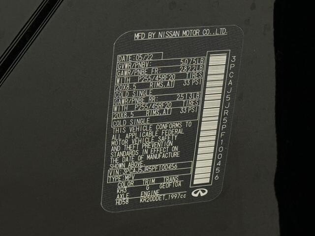 This Infiniti has all the Standard Equipments & more: Cargo Package, Splash Guards, Power Moonroof, Roof Rails, Power Liftgate, Intelligent Key, Remote Engine Start, Rear Parking Sensors, ProPilot Assist, Intelligent Cruise Control, Infiniti InTouch Dual HD Display, Apple CarPlay, Android Auto, Predictive Forward Collision Warning, Cross Traffic Alert, Blind Sport Warning, Lane Departure Warning, & much more...
