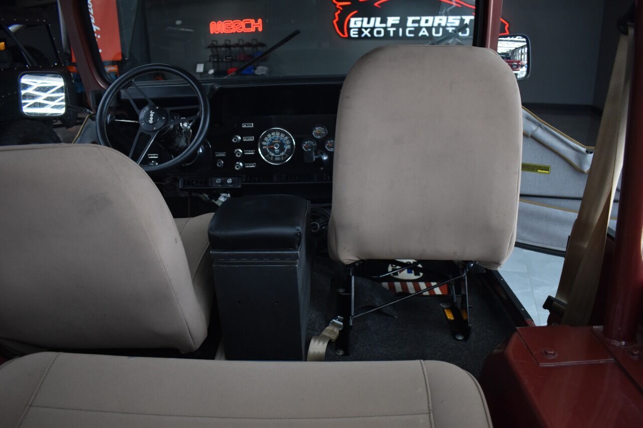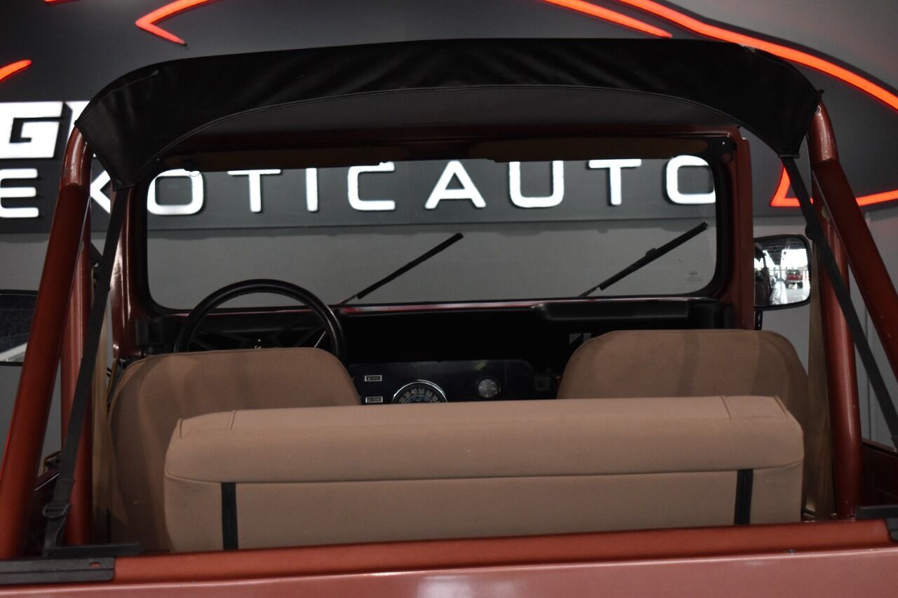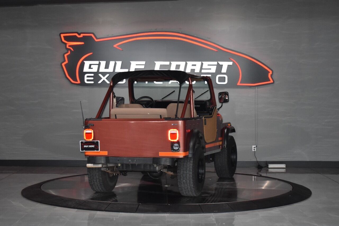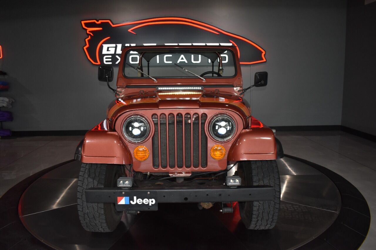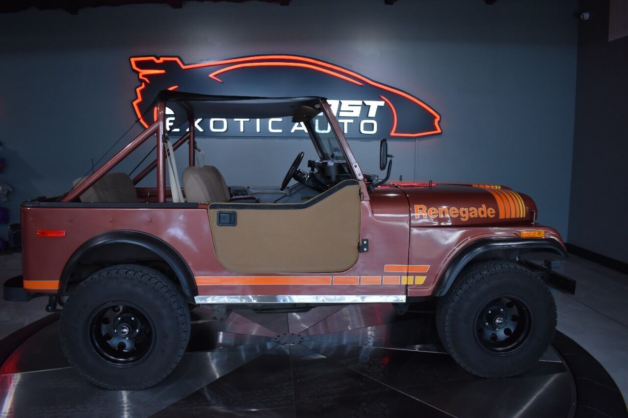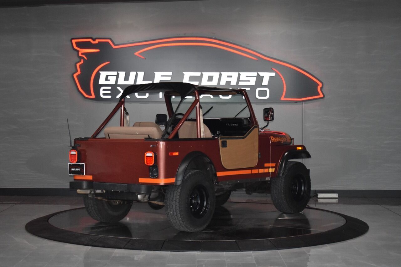 1979 Jeep CJ7 Renegade now available at Gulf Coast Exotic Auto. ** Air Condition **4.2 Inline 6 ** Automatic Transmission ** Fiberglass Tub ** This CJ-7 is powered by a 4.2 liter Inline 6 engine mated to an automatic transmission and utilizing Quadra-Trac 4x4 system. This CJ has a 2 suspension lift making room for the 31 Toyo All Terrains with Black 15 American Racing Wheels. The Root beer exterior paint is paired with black wheels. The headlights have already been upgraded to LED. The clean Tan interior is furnished with A/C, Rugged Ridge vinyl seats, Black leather wrapped steering wheel and color matching roll bar. It only has a Tuffy locking glove box and locking center console. Everything works as it should. Runs and drives GREAT! The odometer show 75,228 on the odometer but true miles are unknown. This turn-key Jeep is ready to cruise on a road trip or off road to the trails in style! The CJ7 Jeeps are only going up in value and there become less available every year. Comes with a full tan soft top, 2 sets of full soft doors, and a bikini top For more information please call Jonathan228-220-0298 or Chris228-220-0298. We Offer Finance Options, Trade-Ins, Extended Warranties, and World Wide Shipping.