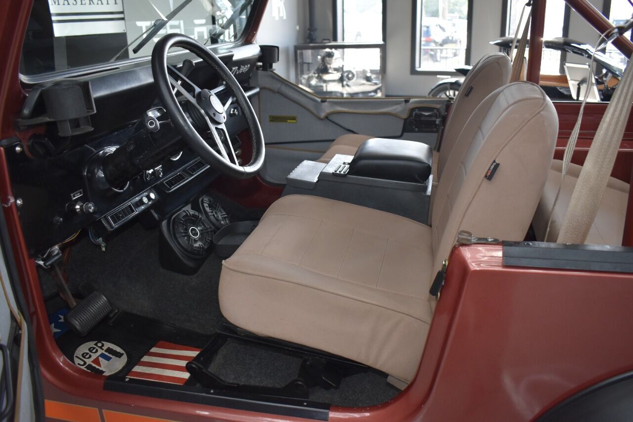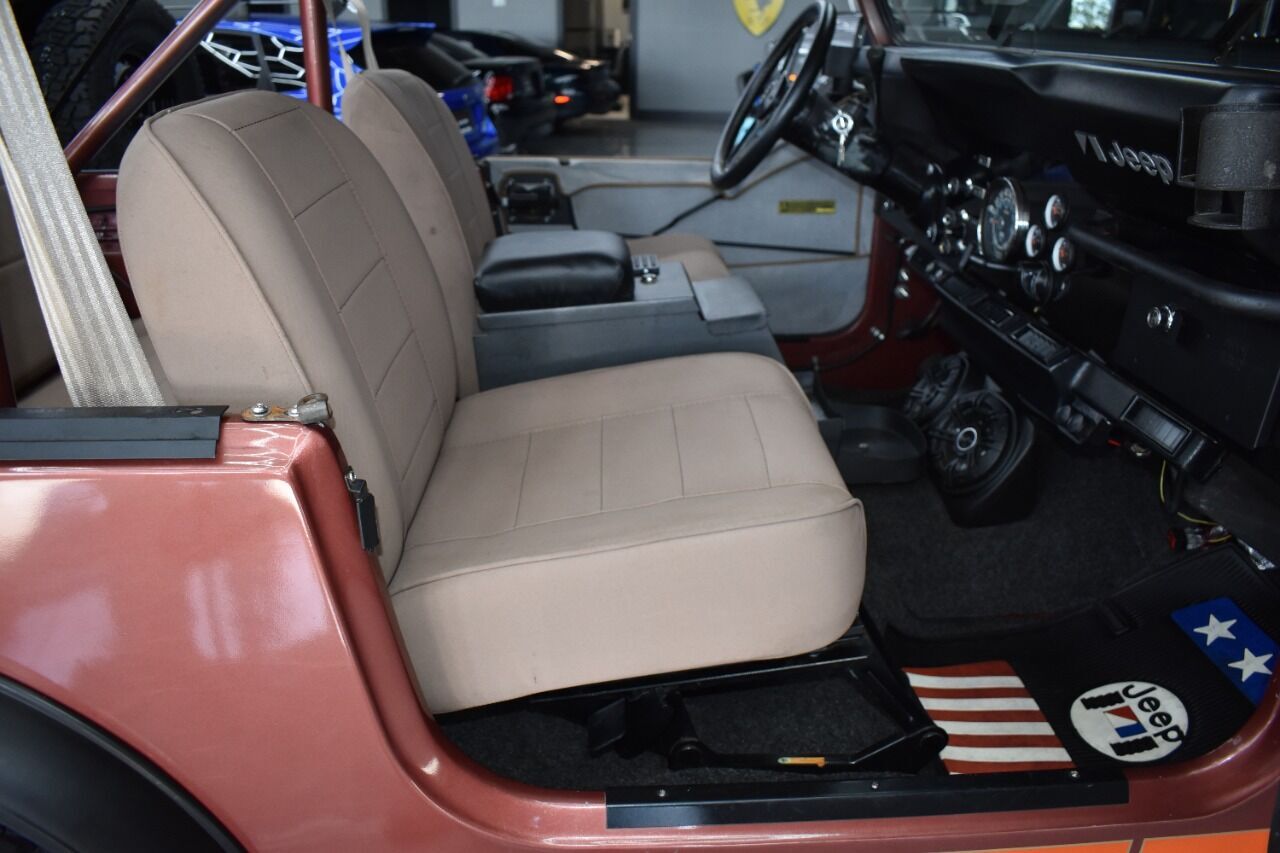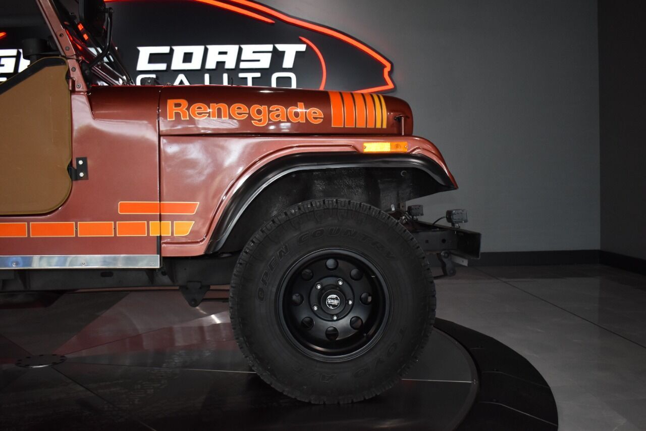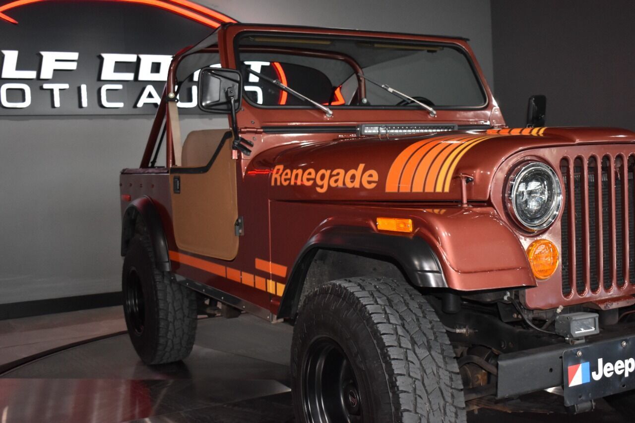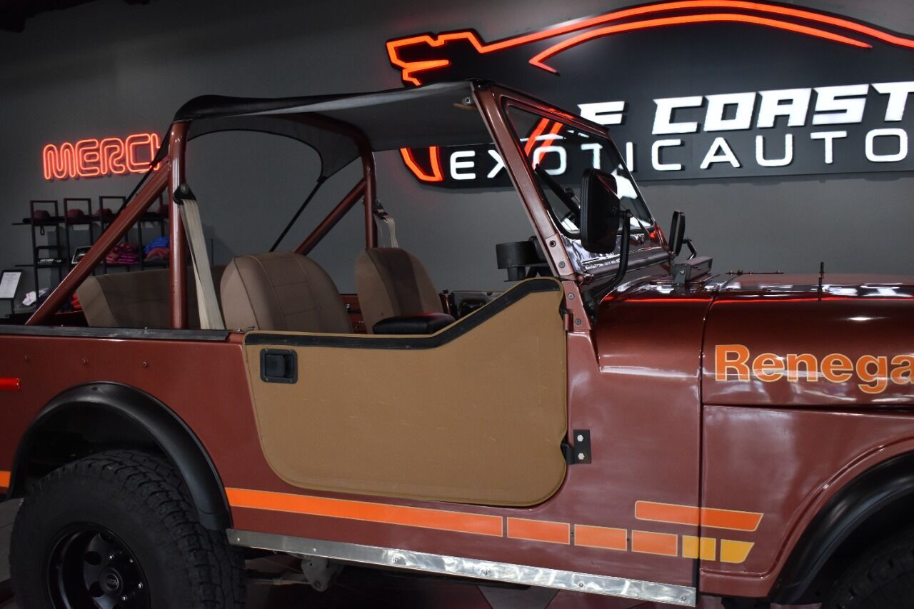 1979 Jeep CJ7 Renegade now available at Gulf Coast Exotic Auto. ** Air Condition **4.2 Inline 6 ** Automatic Transmission ** Fiberglass Tub ** This CJ-7 is powered by a 4.2 liter Inline 6 engine mated to an automatic transmission and utilizing Quadra-Trac 4x4 system. This CJ has a 2 suspension lift making room for the 31 Toyo All Terrains with Black 15 American Racing Wheels. The Root beer exterior paint is paired with black wheels. The headlights have already been upgraded to LED. The clean Tan interior is furnished with A/C, Rugged Ridge vinyl seats, Black leather wrapped steering wheel and color matching roll bar. It only has a Tuffy locking glove box and locking center console. Everything works as it should. Runs and drives GREAT! The odometer show 75,228 on the odometer but true miles are unknown. This turn-key Jeep is ready to cruise on a road trip or off road to the trails in style! The CJ7 Jeeps are only going up in value and there become less available every year. Comes with a full tan soft top, 2 sets of full soft doors, and a bikini top For more information please call Jonathan228-220-0298 or Chris228-220-0298. We Offer Finance Options, Trade-Ins, Extended Warranties, and World Wide Shipping.