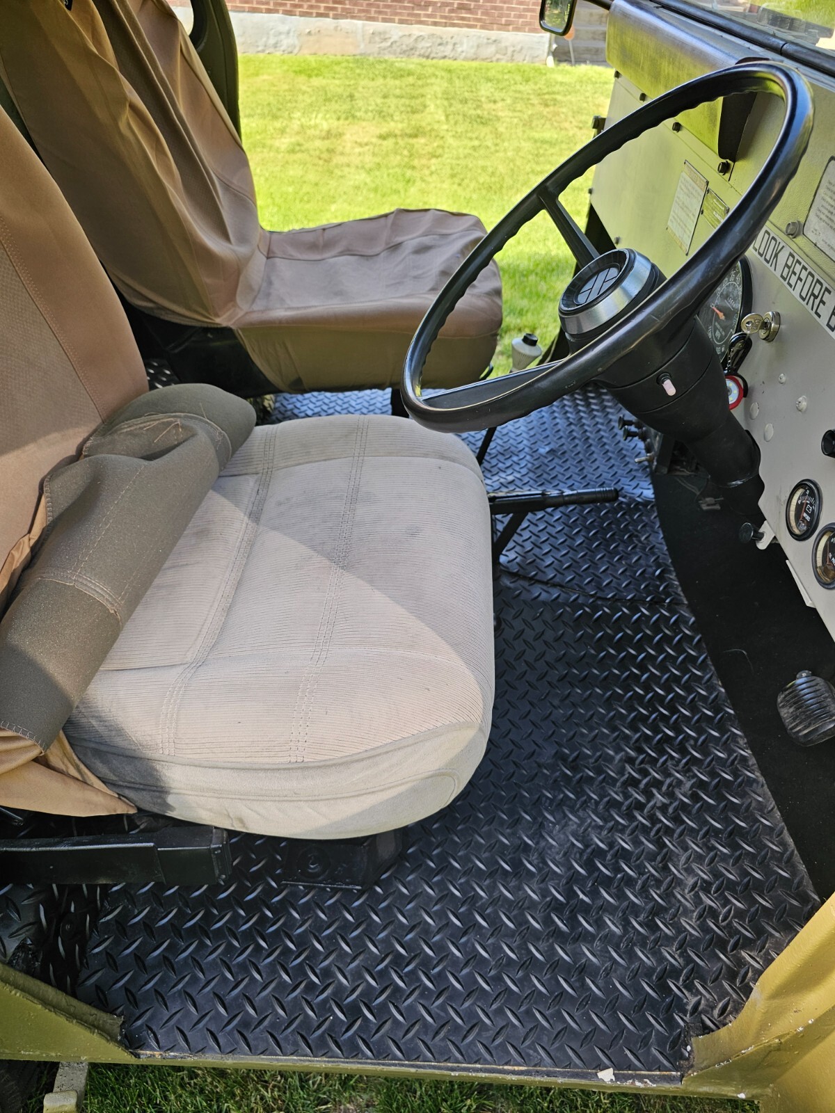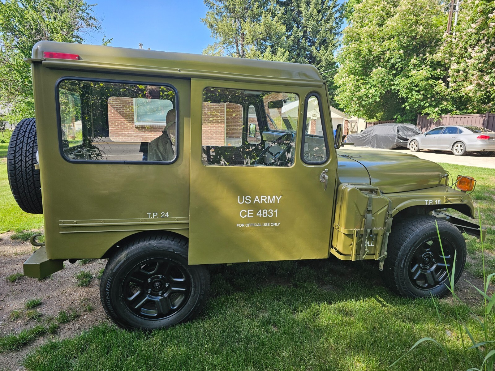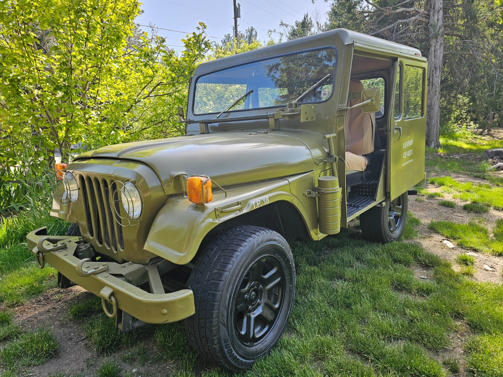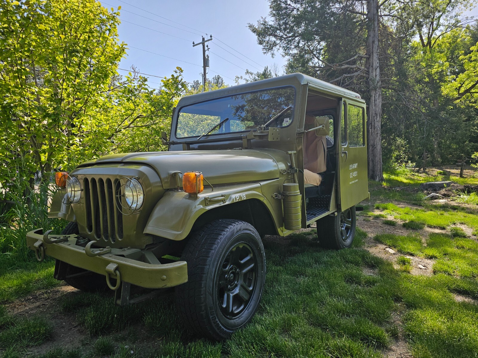 If you are a DJ fan they don't come better than this.This is a 1983 the listing wouldn't accept the vin number due to its being a state issue. It is titled rest assured. My son is selling his prized possession. This jeep is a rear wheel drive right hand drive automatic trans and completely stock and customized to the enth degree. It's a showstopper and draws a crowd everywhere it goes. It's been completely reworked and detailed inside and out. Additional detailing additions like a jack fuel tanks backpacks and even two vintage military helmets. It's as close to an official looking military jeep as you can get while having the capability of daily driver. The engine runs and drives flawlessly. There's not a pinhole of rust in it anywhere and it hasn't been wrecked or abused only shown and leisure drives. The drivetrain is completely original and dependable. Don't hesitate in driving it home. The pictures tell the story of what has been done to this. Haven't seen one this clean or better done. The reserve is low enough it will certainly sell. I reserve the right to end auction early. Good luck and someone will own a showstopper. It's stored indoors and can be stored safely for as long as needed until transported.