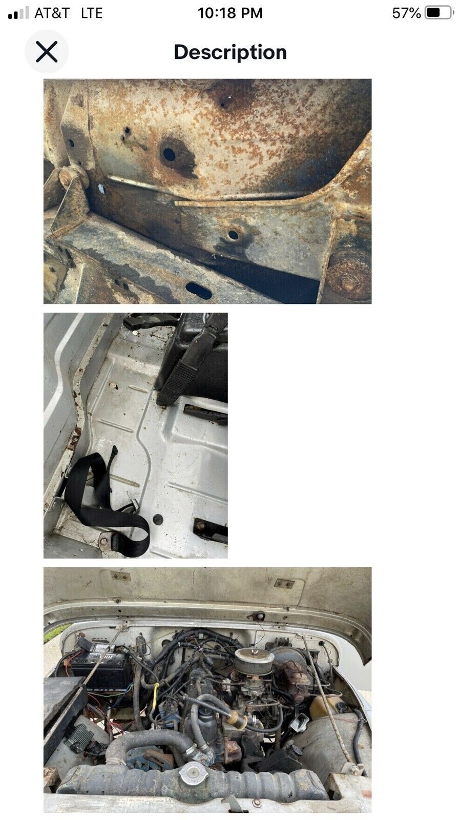 A 1984 Jeep CJ 8 Scrambler 6cylinder 4 speed manual transmission and 300 transfer caseSeller's Notes