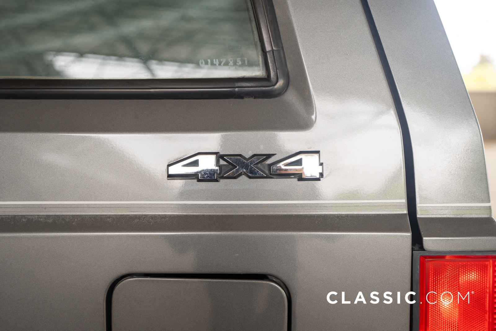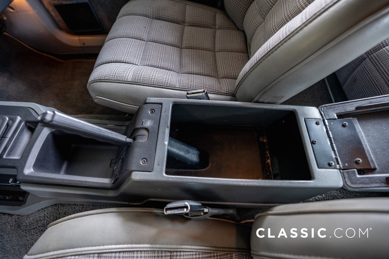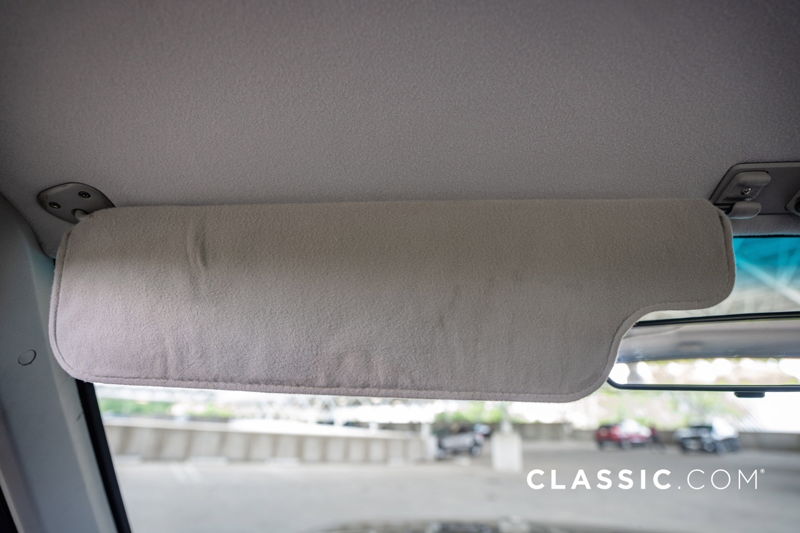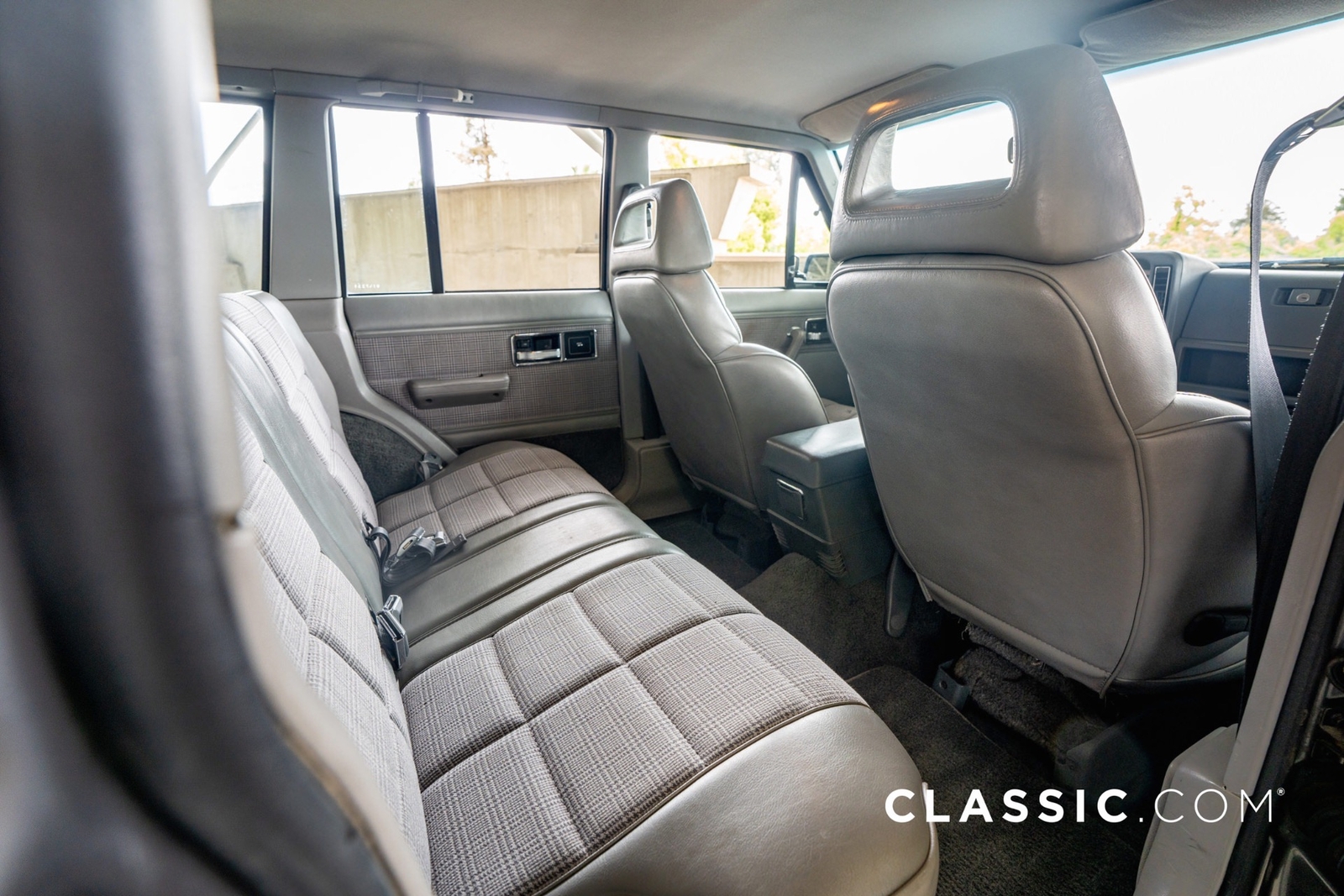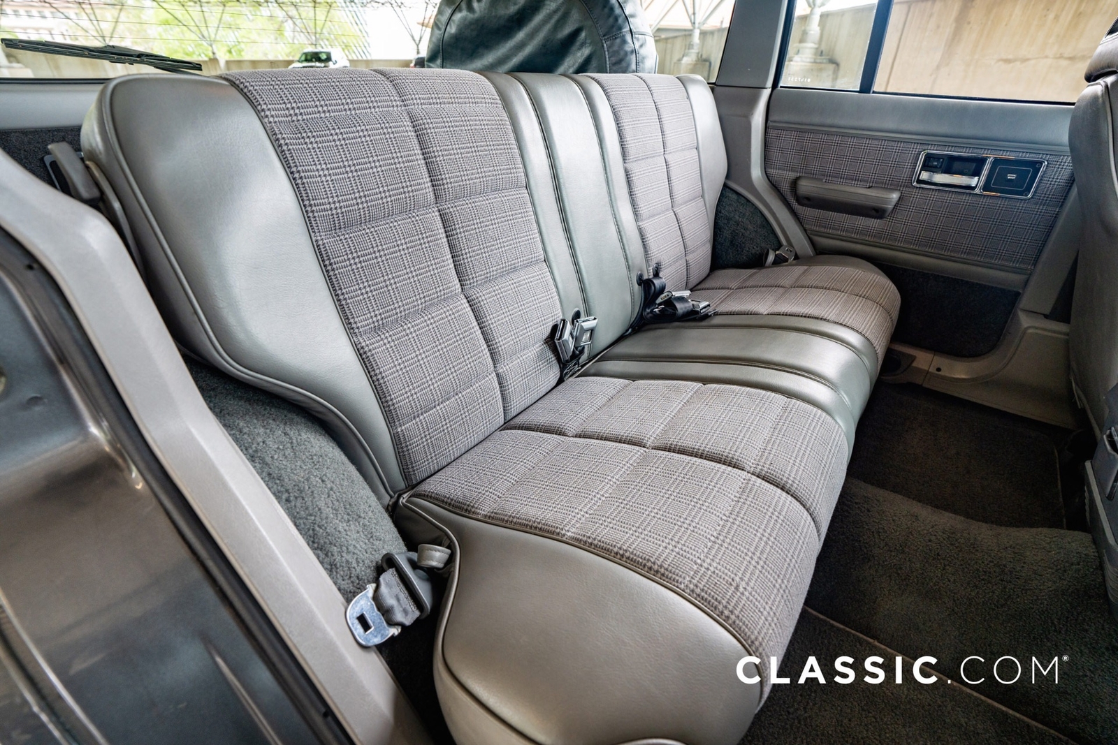 The Laredo package includes features like gray plaid cloth seats and leather-wrapped steering wheel, power windows and locks, power front seats, air conditioning, and fog lights. This example is unmodified, however, the new white-letter BFGoodrich All Terrain TA tires against the gray backdrop are a reminder of this 4x4’s off-road capability.