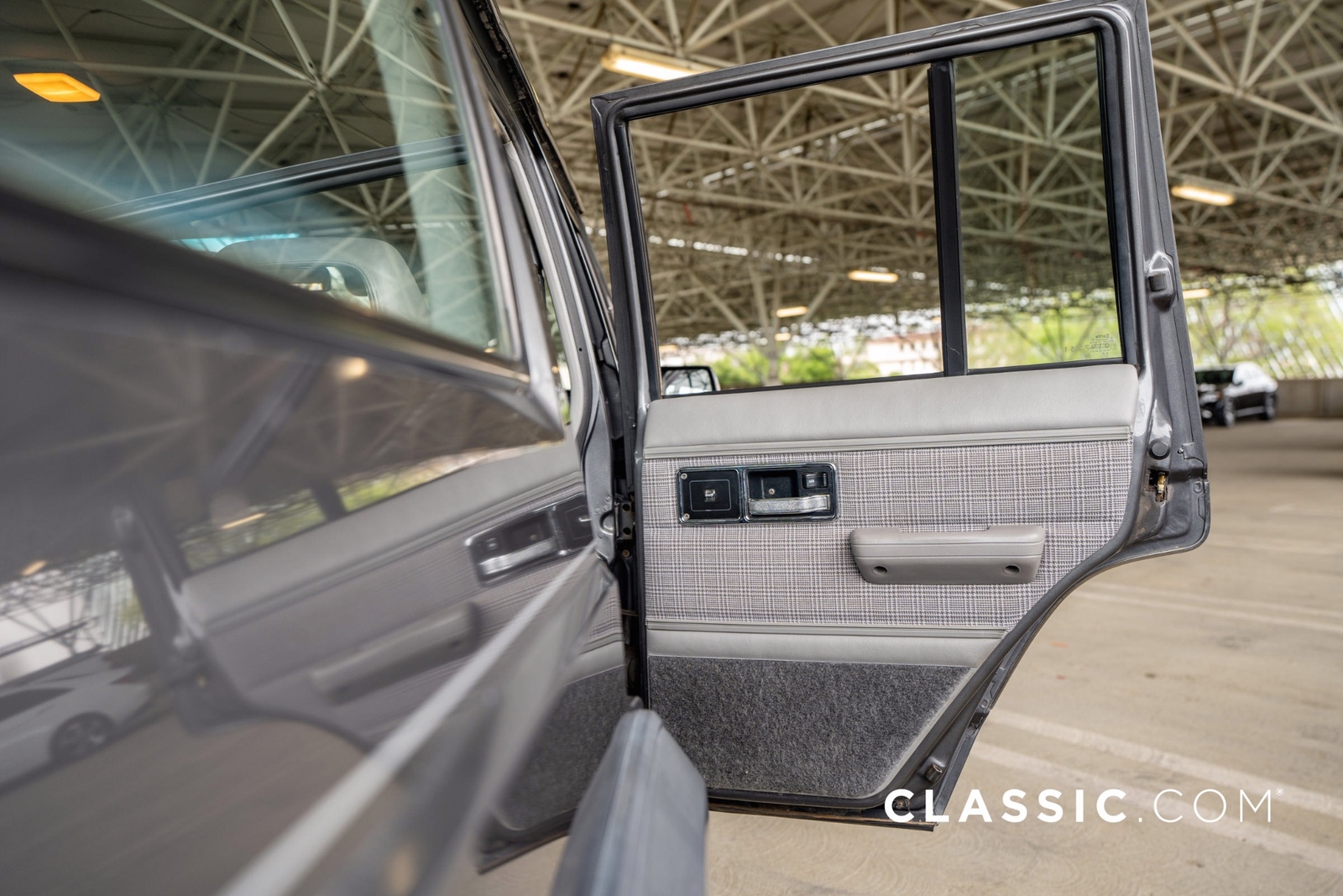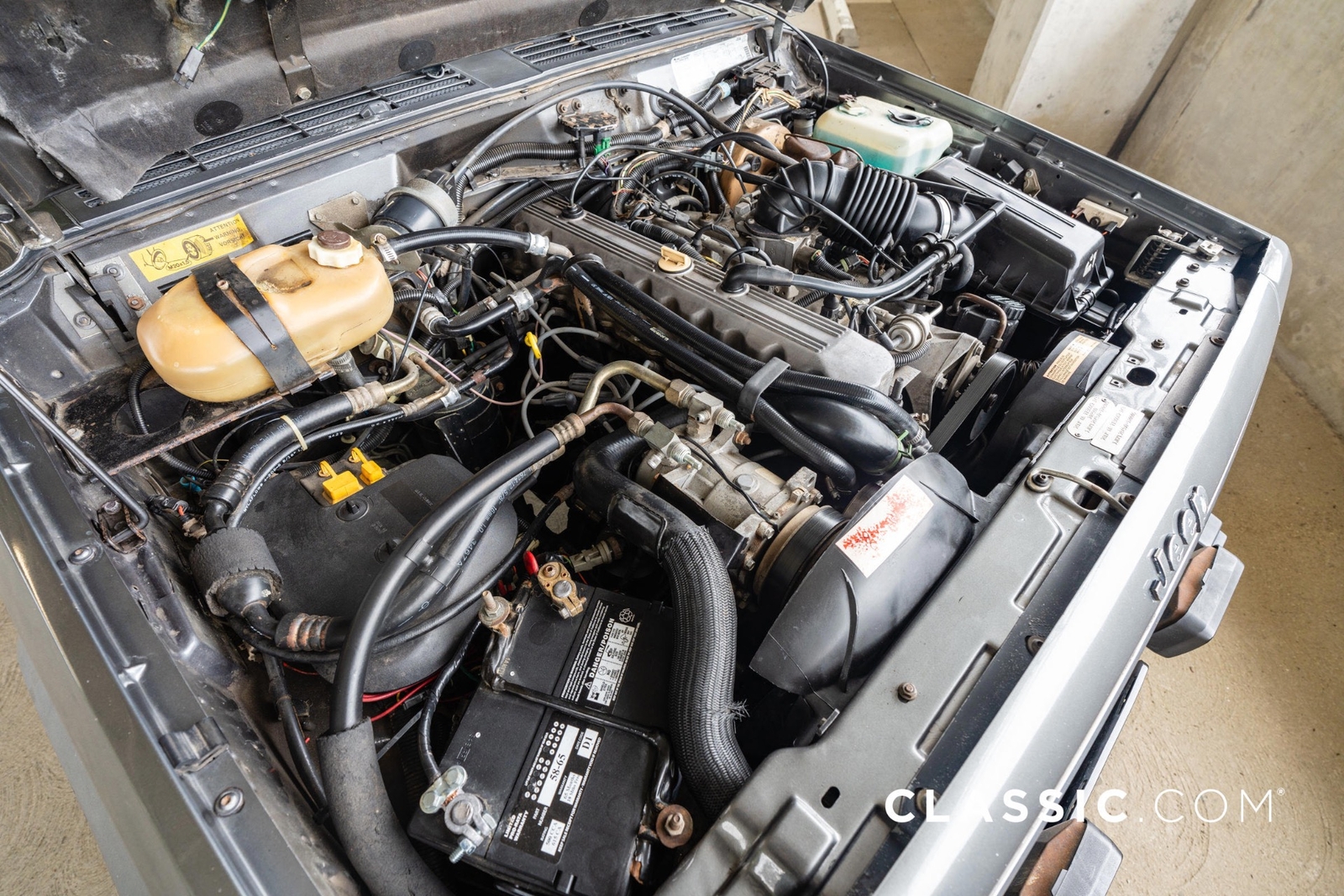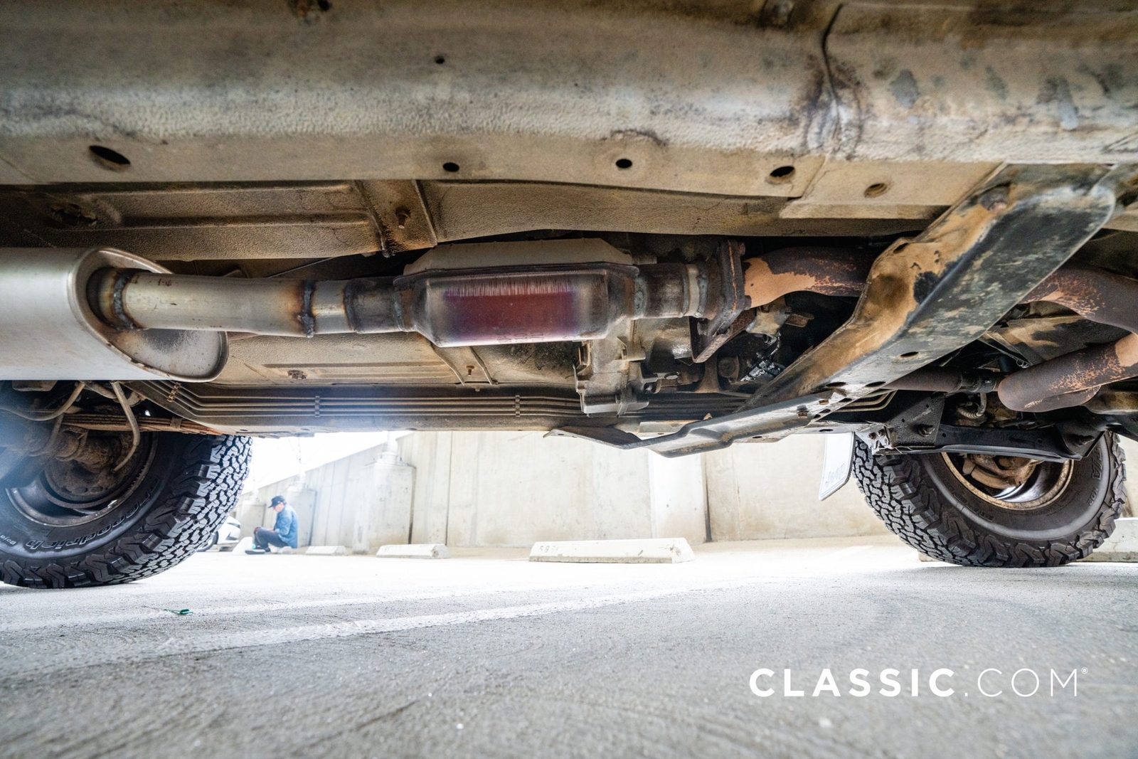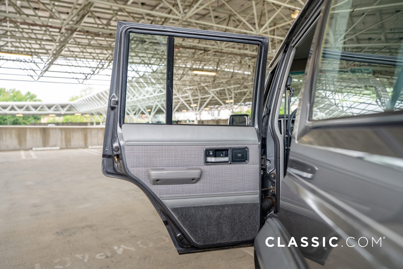 The Laredo package includes features like gray plaid cloth seats and leather-wrapped steering wheel, power windows and locks, power front seats, air conditioning, and fog lights. This example is unmodified, however, the new white-letter BFGoodrich All Terrain TA tires against the gray backdrop are a reminder of this 4x4’s off-road capability.