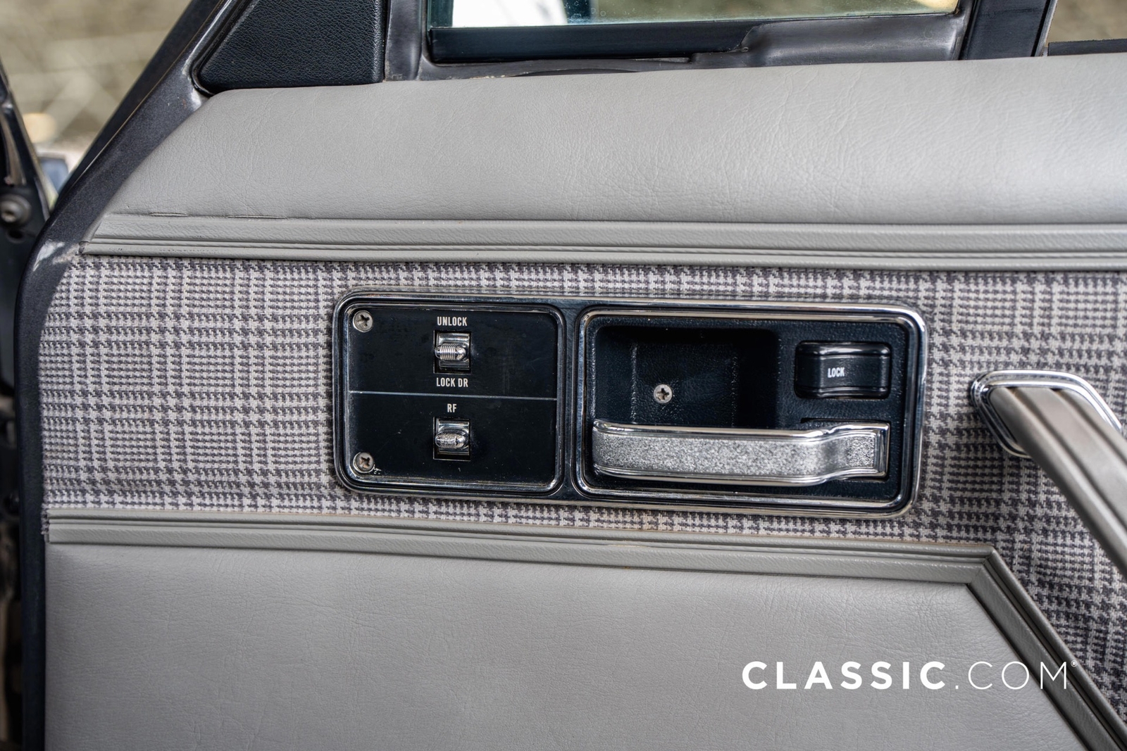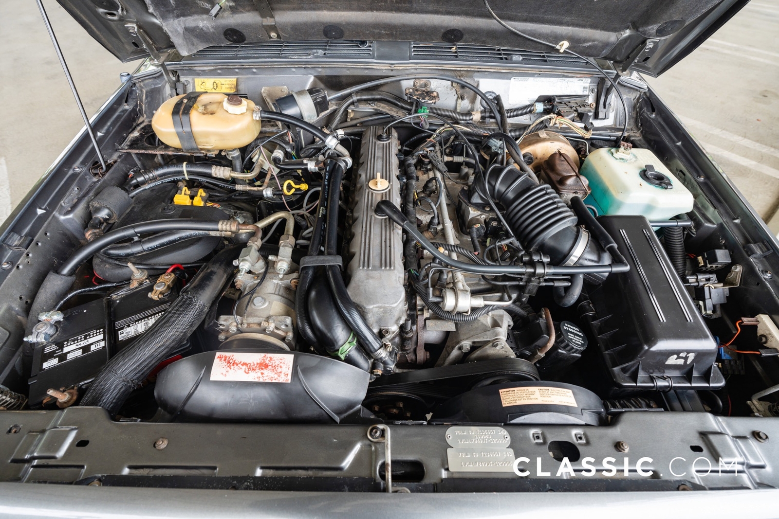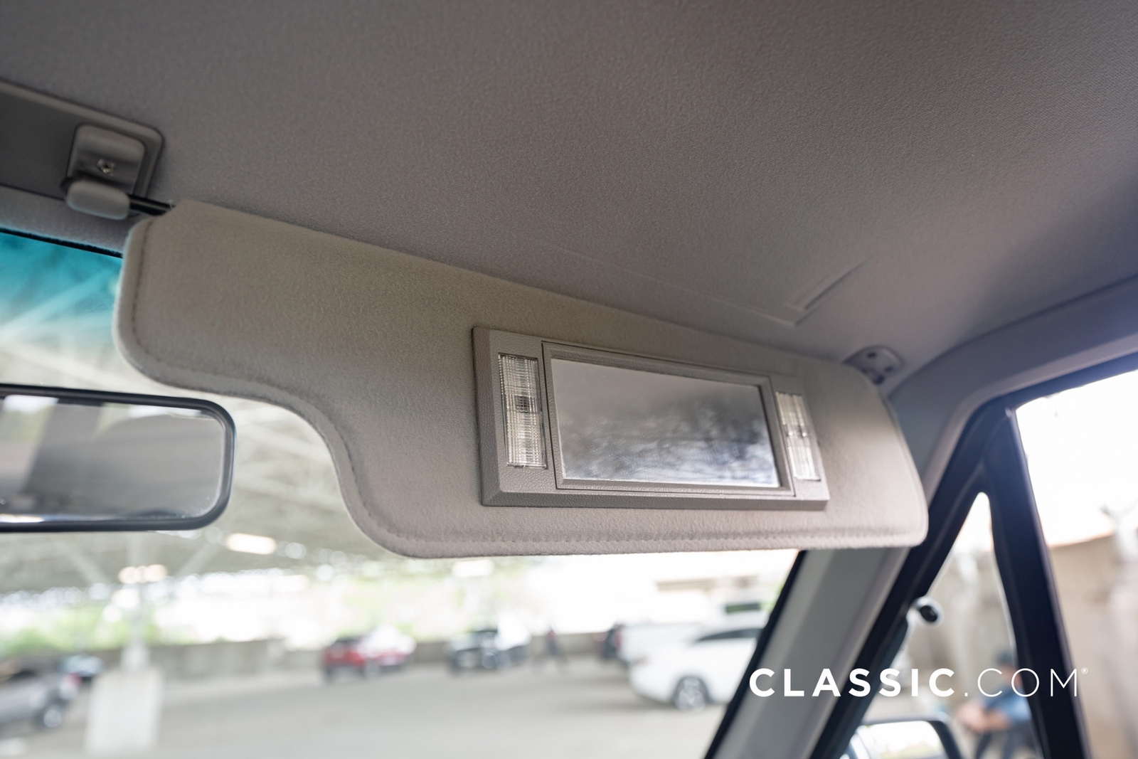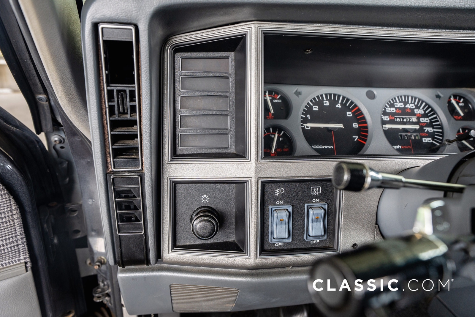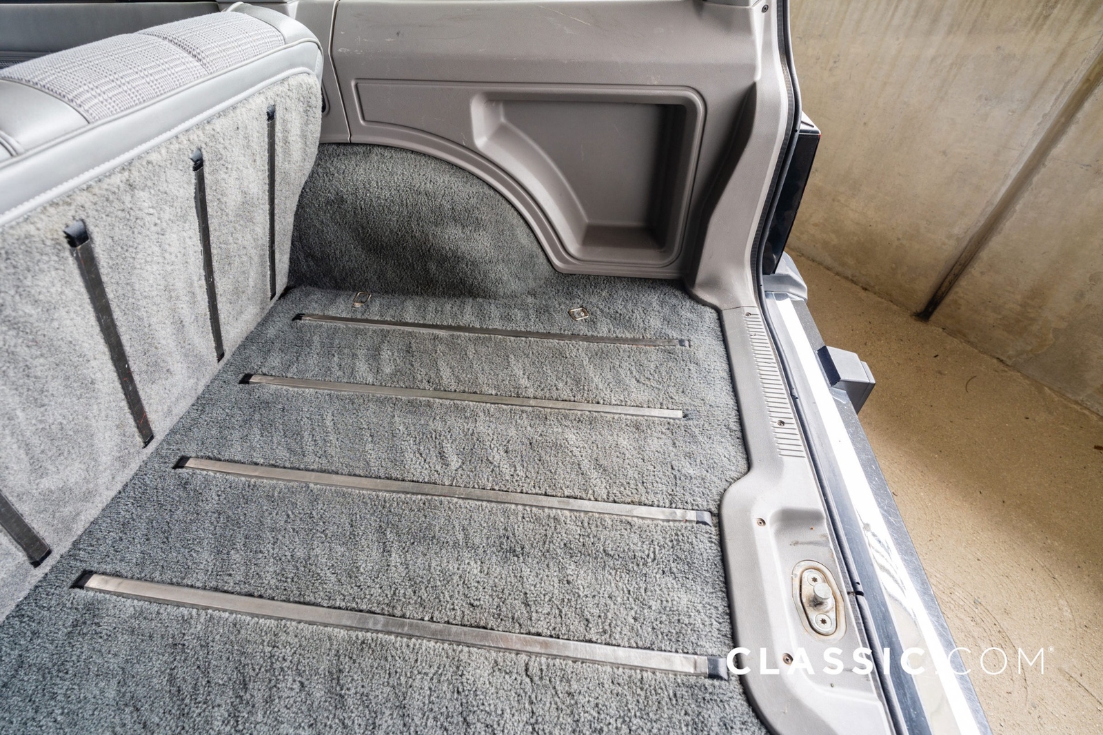 The Laredo package includes features like gray plaid cloth seats and leather-wrapped steering wheel, power windows and locks, power front seats, air conditioning, and fog lights. This example is unmodified, however, the new white-letter BFGoodrich All Terrain TA tires against the gray backdrop are a reminder of this 4x4’s off-road capability.