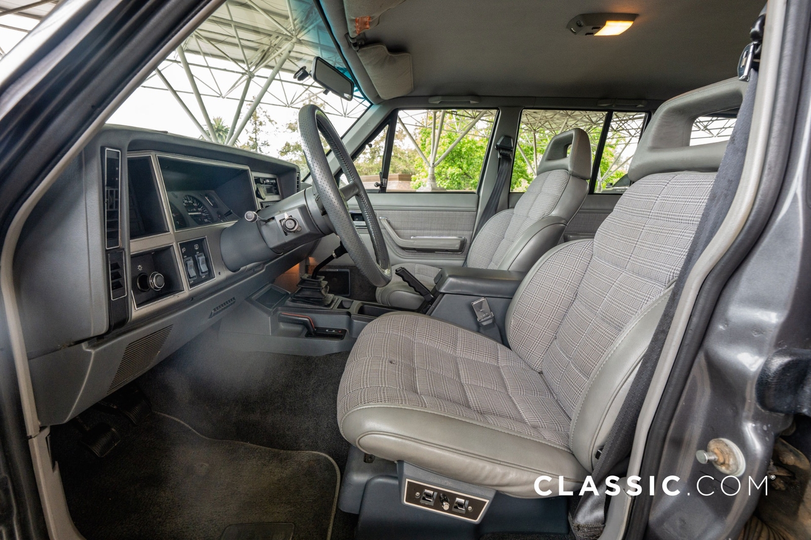 This unmodified 1988 Jeep Cherokee Laredo is a classic example of rugged elegance and enduring performance for which the Jeep brand is known. This Laredo is a well-kept gray 4-door model equipped with a desirable 5-speed manual transmission and has just over 81,000 miles on the odometer. It is powered by a reliable 4.0L I6 engine and has been treated to a number of significant service and mechanical updates in recent years, including the replacement of the serpentine belt, engine and transmission mounts, oil seals, and shock absorbers.
