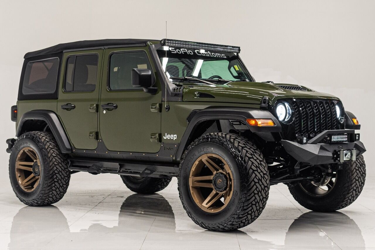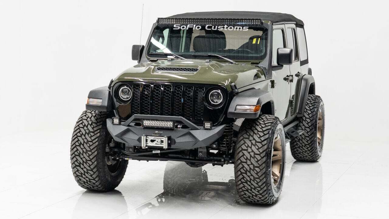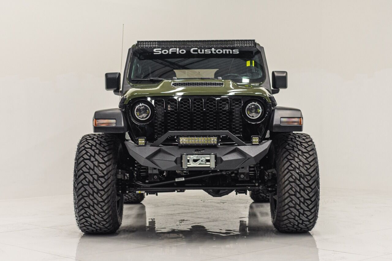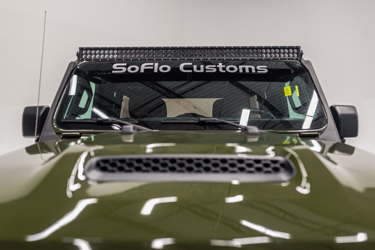 YEAR: 2021 TOP: Convertible - Black Soft COLOR: High Gloss Sarge Green TRIM: SoFlo Lifted Custom Wrangler LIFT: 3.5” TIRES: 37 RIMS: Black RHino HOOD: Raider GRILL: Stubby Steel Bumper with Winch (NOT PICTURED) SIDESTEPS: Steel HEADLIGHTS: Halo Color Changing SPECIAL FEATURES: Double Stacked Cube Lights, WEATHERPROOF INTERIOR: Moroccan Spice WHAT MAKES THIS TRUCK SPECIAL: The 2021 has the look and functional of a rugged army Jeep. CALL US OR COME SEE THESE CUSTOM TRUCKS IN PERSON Location 1: 1430 W Broward, BLVD Fort Lauderdale, FL 33312 855-873-7632 Location 2: 2720 Okeechobee BLVD West Palm Beach, FL 33406 855-873-7632 NEW E-PURCHASE SYSTEM - Customers never have to leave the comfort of their home couch to purchase a SoFlo Jeeps or Apocalypse 6x6 truck. We offer online payment, financing and video walkarounds. We ship our trucks worldwide to any and every location. Have a trade-in? Not a problem at all, as WE ACCEPT TRADE-INS NATIONWIDE AND YOU NEVER PAY TO SHIP IT. We make buying and receiving your dream truck beyond simple. ****ALL PIPE DOORS ARE EXTRA AND NOT INCLUDED IN PRICE OF THE TRUCK****