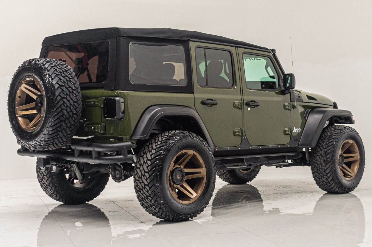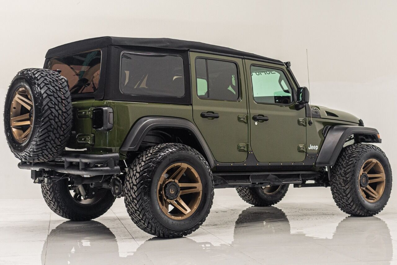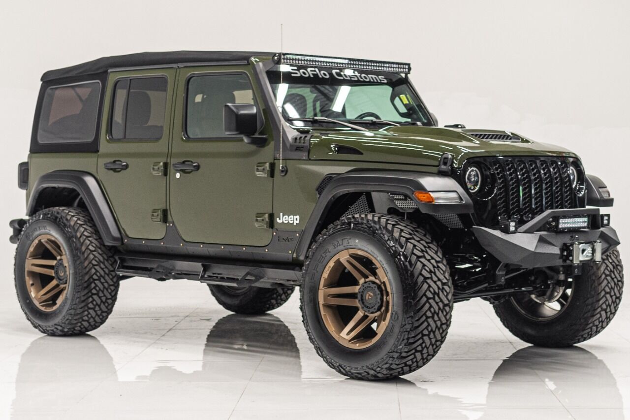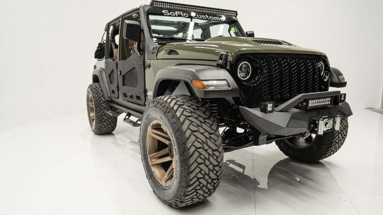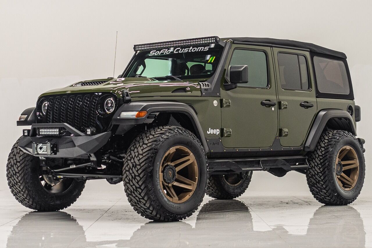 YEAR: 2021 TOP: Convertible - Black Soft COLOR: High Gloss Sarge Green TRIM: SoFlo Lifted Custom Wrangler LIFT: 3.5” TIRES: 37 RIMS: Black RHino HOOD: Raider GRILL: Stubby Steel Bumper with Winch (NOT PICTURED) SIDESTEPS: Steel HEADLIGHTS: Halo Color Changing SPECIAL FEATURES: Double Stacked Cube Lights, WEATHERPROOF INTERIOR: Moroccan Spice WHAT MAKES THIS TRUCK SPECIAL: The 2021 has the look and functional of a rugged army Jeep. CALL US OR COME SEE THESE CUSTOM TRUCKS IN PERSON Location 1: 1430 W Broward, BLVD Fort Lauderdale, FL 33312 855-873-7632 Location 2: 2720 Okeechobee BLVD West Palm Beach, FL 33406 855-873-7632 NEW E-PURCHASE SYSTEM - Customers never have to leave the comfort of their home couch to purchase a SoFlo Jeeps or Apocalypse 6x6 truck. We offer online payment, financing and video walkarounds. We ship our trucks worldwide to any and every location. Have a trade-in? Not a problem at all, as WE ACCEPT TRADE-INS NATIONWIDE AND YOU NEVER PAY TO SHIP IT. We make buying and receiving your dream truck beyond simple. ****ALL PIPE DOORS ARE EXTRA AND NOT INCLUDED IN PRICE OF THE TRUCK****