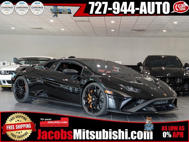 ***1 OWNER CLEAN CARFAX REPORT******NERO NOCTIS BLACK EXTERIOR WITH NERO COSMUS/ARANCIO ORANGE INTERIOR******631HP 5.2L V10 ENGINE WITH 7 SPEED AUTOMATED TRANSMISSION RWD******MAINTENANCE 3 YEAR PACKAGE FROM LAMBORGHINI******FRONT LIFTING SYSTEM******HEK 20 INCH FORGED CENTERLOCK WHEELS******TRAVEL PACKAGE******BI COLOR SPORT SEATS******SPORTIVO STO TRIM******CCMR BRAKE CALIPERS IN ARANCIO ORANGE******SEAT BELTS IN ARANCIO ORANGE***CARFAX One-Owner. Clean CARFAX. 2D Coupe, 5.2L V10, 7-Speed Manual, RWD, Nero Noctis Metallic, Nero Cosmus/Arancio Dryope w/Sportivo Alcantara Bicolor Seat Trim, 12V Plug w/Lighter, 4 Speakers, 4-Wheel Disc Brakes, ABS brakes, Adaptive suspension, Air Conditioning, Alloy wheels, AM/FM radio, Apple CarPlay/Android Auto, Auto-dimming Rear-View mirror, Automatic temperature control, CCMR Orange Brake Calipers, Central Lock in Black, Ceramic disc brakes: front and rear, Cup Holder & Ash Tray, Digital Audio Broadcasting (DAB), Driver vanity mirror, Dual front impact airbags, Dual front side impact airbags, Electronic Stability Control, Exterior Parking Camera Rear, Floor Mats in Aluminum, Four wheel independent suspension, Front anti-roll bar, Front Bucket Seats, Front Center Armrest, Front dual zone A/C, Front reading lights, Fully automatic headlights, Garage door transmitter, Headlight cleaning, Heated door mirrors, Illuminated entry, Lamborghini Smartphone Interface, Lifting System, Low tire pressure warning, Navigation System, Occupant sensing airbag, Outside temperature display, Passenger vanity mirror, Power door mirrors, Power steering, Power windows, Radio data system, Radio: Lamborghini Touch-Screen Infotainment System, Rear anti-roll bar, Remote keyless entry, Seat Belts - Arancio Leonis, Speed-sensing steering, Spoiler, Sport Seats, Sport steering wheel, Sportivo Alcantara Bicolor Seat Trim, Tachometer, Telescoping steering wheel, Tilt steering wheel, Traction control, Travel Nets, Travel Package, Trip computer, Variably intermittent wipers, Voltmeter, Wheels: 20 x 8.5J Fr & 20 x 11J Rr Matt Black.Nero Noctis Metallic 2023 Lamborghini Huracan STO RWD 5.2L V10Odometer is 774 miles below market average!Here at Jacobs Mitsubishi our goal is to make you a customer for life. We want you to have the most enjoyable car buying experience possible . All prices displayed do not include additional accessories or fees and costs of closing including any government, additional packages applied to vehicle, including but not limited to Jacobs Care, Reconditioning fees,federal, dealer fees, taxes, registration, dealer document, cost of accessories, emissions testing, or any other fees. All prices, specifications and availability are subject to change at any time, without notice. Not all applicants will be approved, offers may change at any time and may not reflect accuracy online, see dealer for most updated offers. Not all offers can be combined. Applicant may qualify for partial discount displayed by financing with another approved lender through and provided by Jacobs Mitsubishi. Contact dealer for most current information, availability, or details.