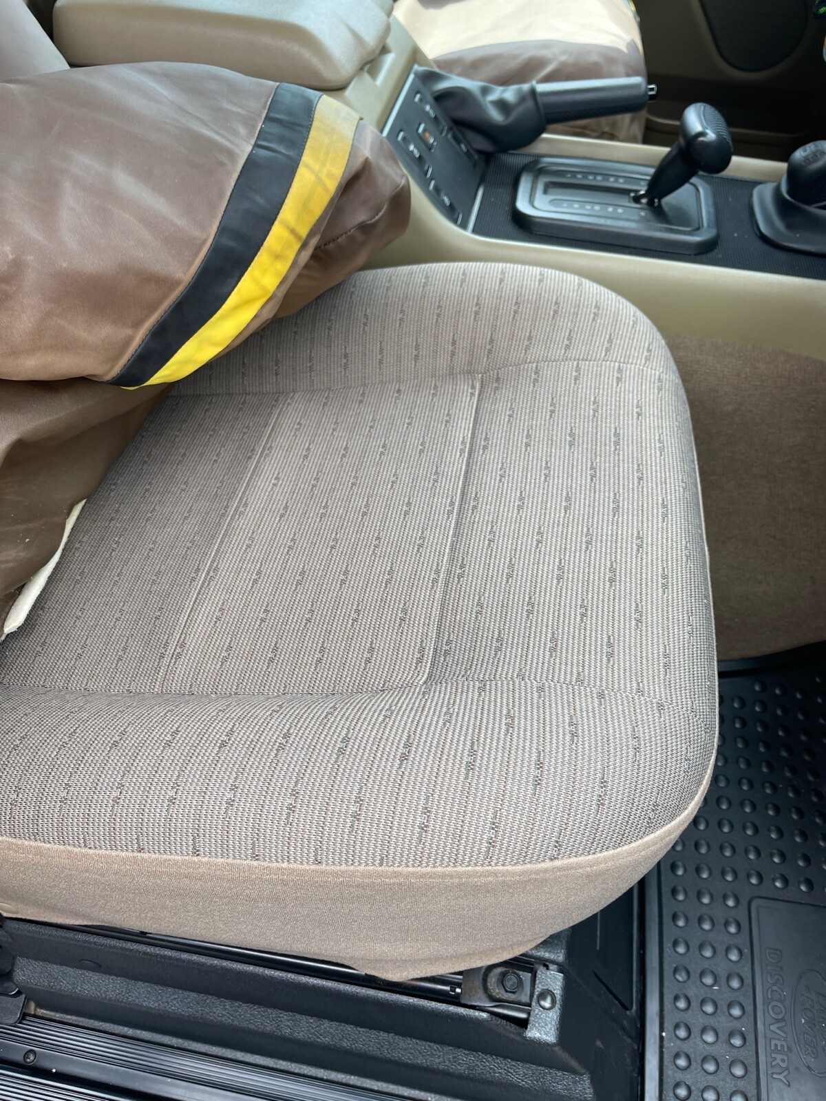 Seat covers kept on all its life no rips in seats plenty of storage area plus trunk has two compartments for additional storage. Very clean interior.