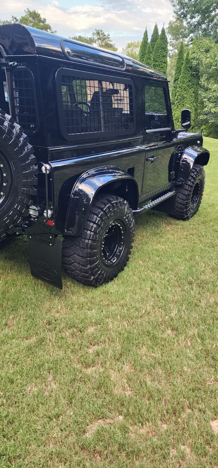This beautiful 1995 Spectre inspired Santorini Black Land Rover D90 is a complete off the frame restoration. Builds in this condition easily go for around $248,000. Every bolt and screw on this vehicle has been hand touched. The chassis was completely stripped, sandblasted and powder-coated black. All hardware has been replaced or repaired. It is powered by the Land Rover 300TDI diesel engine and was completely rebuilt to factory specs. This Land Rover is equipped with a new heavy-duty radiator, fuel hoses and coolant hoses, new engine mounts, prop shafts and fuel tank. It is equipped with new shocks, springs and bushings, and the axles and brakes were also completely rebuilt to EM specs. Stopping power is provided by new/rebuilt calipers, new discs and brake lines. The body was a complete rebuild, then finished in classic Santorini Black with four layers of paint. All doors have been renewed with new steel frames/door shields are protected with epoxy against rust. Features include aluminum door hinges in Santorini Black , fender flares, Puma bonnet and a Britpart XS front grille. It also has side steps, Land Rover Defender rear step and new windows. The brand-new interior features custom Italian leather in classic black with premium leather stitched front and rear seats. With 6-person seating. It also features a leather Puma dashboard, floor and ceiling coverings, new soundproofing and interior insulation, air conditioning, Instrumentation features Classic Instruments White Hot gauges. The vehicle has a 2 inch lift with upgraded dampers & springs. Custom extra wide wheel arches. Chequer plates were added to the hood, side, and rear of the vehicle. The sound system includes an Alpine 9-inch touchscreen, four speakers, a subwoofer, Apple CarPlay, hands-free, USB charger and an HDMI cable outlet in front, aluminum pedals, This Land Rover is riding on Spectre Edition Beadlock modular wheels with 37" Maxxis Trepador Mud Terrain tires. With approximately 400 miles since the rebuild
