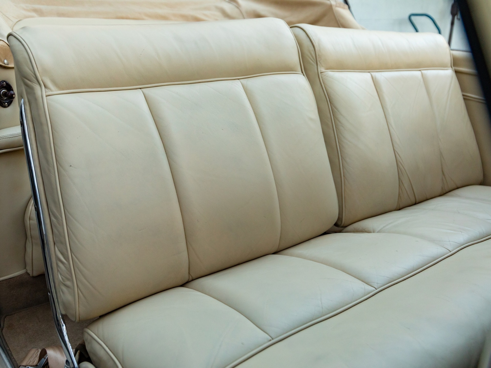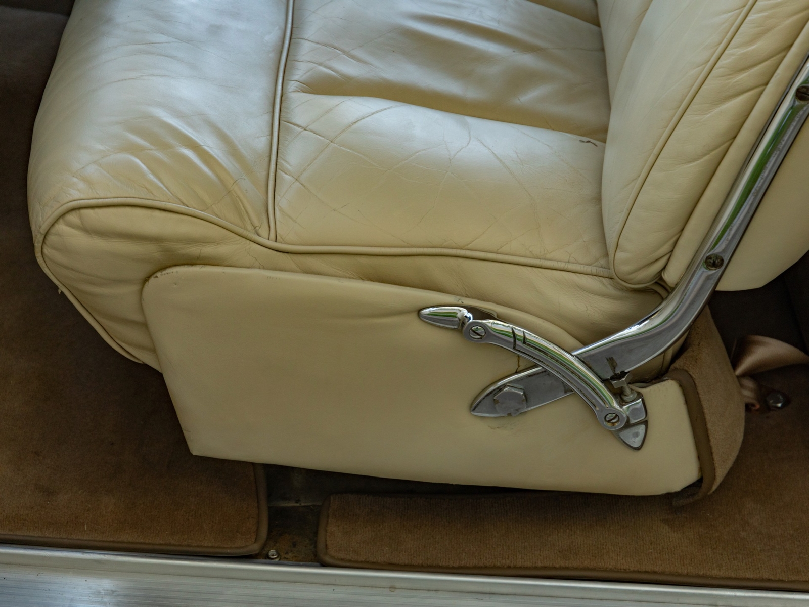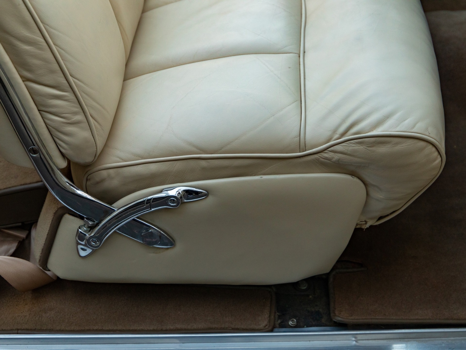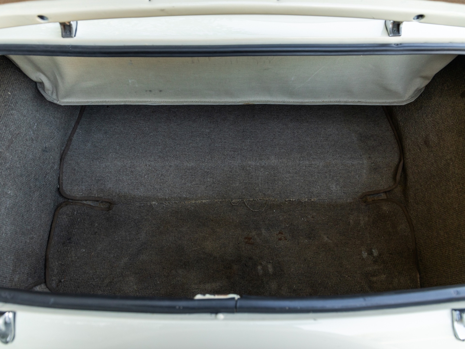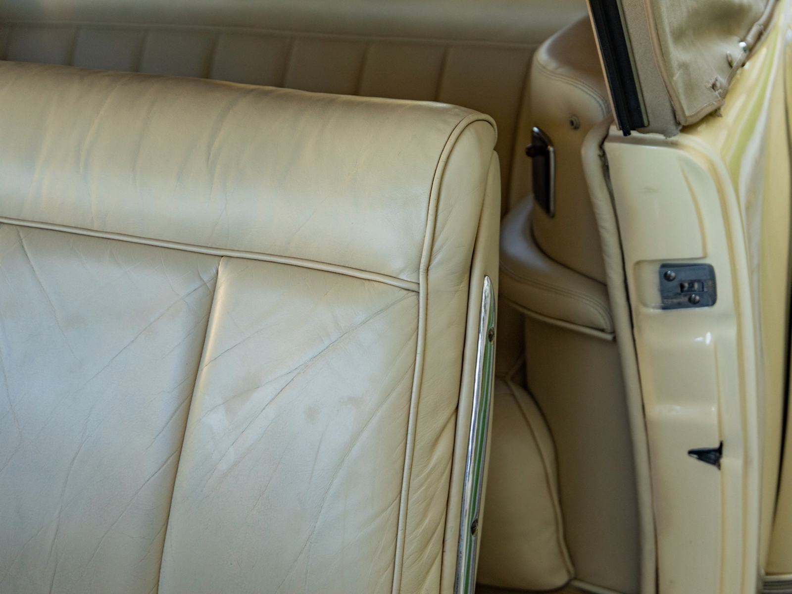 This particular example was beautifully and painstakingly restored with no expense spared some years ago prior to being acquired by its long time collector owner in this 'Ivory' color which is stunningly striking along with its white wall tires and Zephyr wheels. The 'Tan' leather interior with wool carpets has also been faithfully reupholstered and is in exceptional condition throughout and the correct factory canvas power Tan top is also in exceptional condition. There can only be very few miles on the car since it's unibody (body welded to the frame) cosmetic and mechanical restoration. This is a rust free car that retains all of its original body panels including floors, rockers, and trunk with very straight panels. That factor is extremely important on a unibody designed car such as this. Completely restored from the ground up mechanically, cosmetically, and correctly. All the chrome has been replated including top bows, seat hardware, etc. Gold tone gauge cluster and the woodgrain were also fully restored. The floor boards, trunk and all the typical rust-prone areas are completely solid and rust-free and the car has has no signs of any accidents - a razor straight body and obviously an always garaged and cherished car since new with no rust! The original spare wheel and tire and factory tools are still located in their rightful storage place in the trunk.