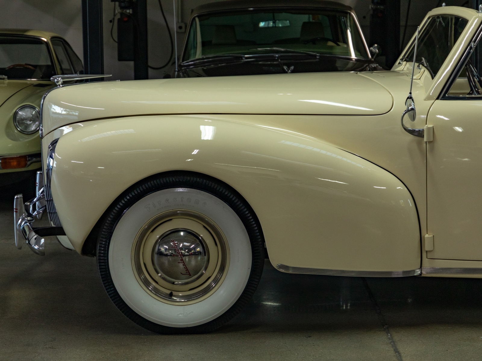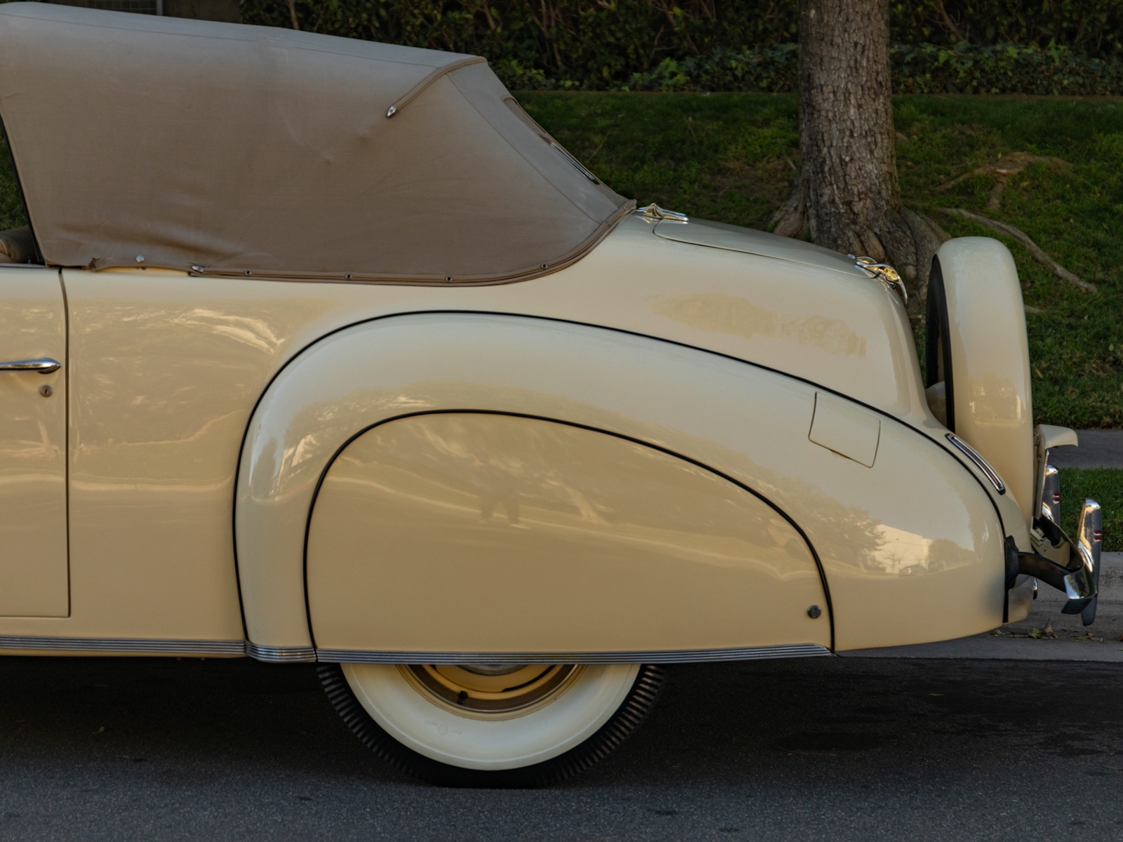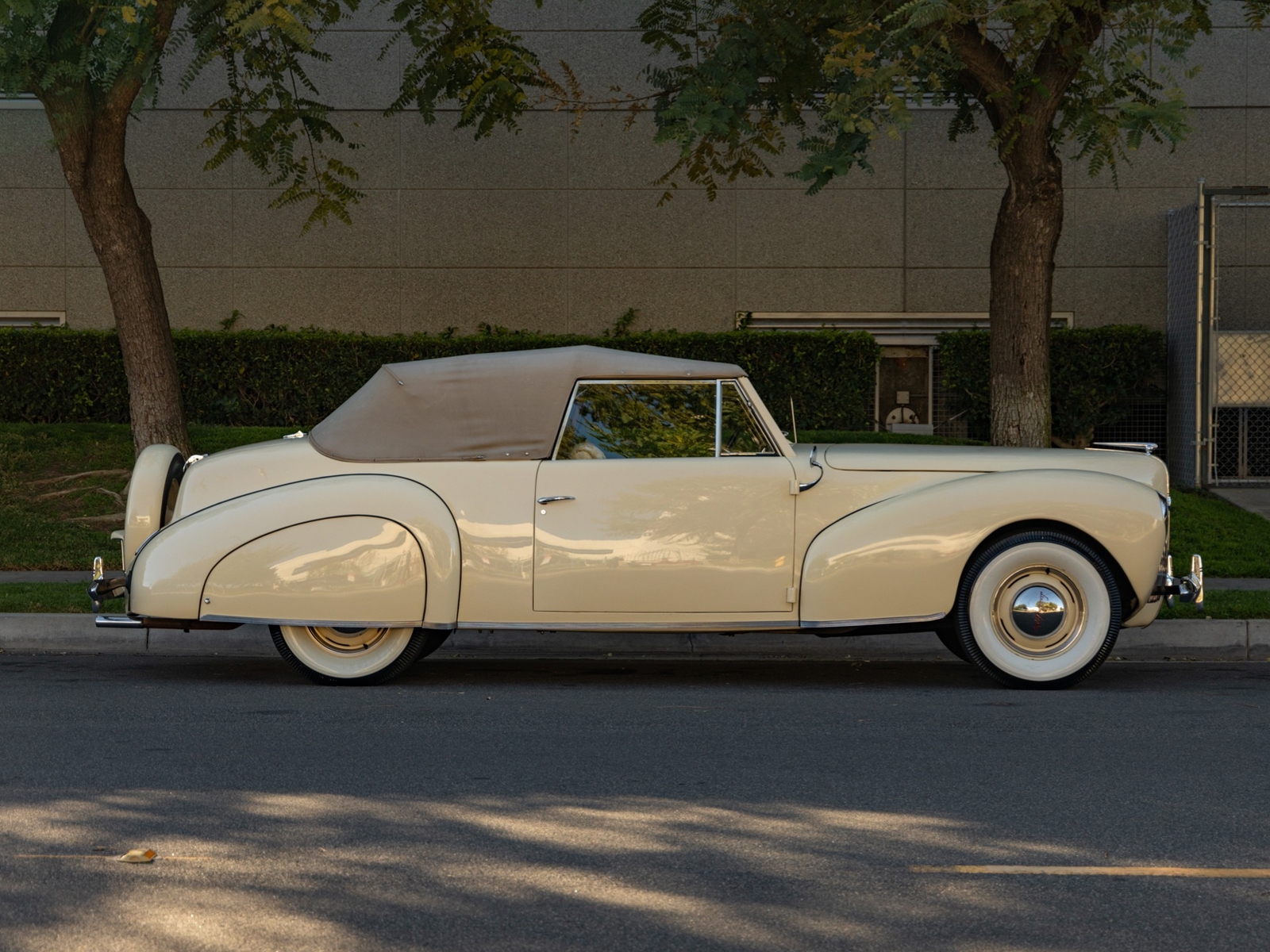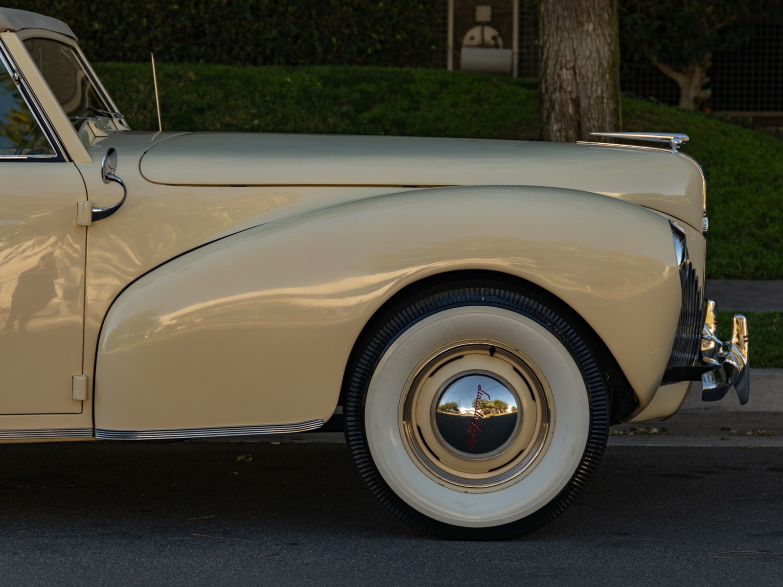 The car is strikingly handsome in an Ivory finish that showcases the cars voluptuous lines, this Continental features a light Tan leather interior that coordinates well with the exterior. Fitted with the legendary Lincoln V-12 and an overdrive transmission, this rare and stylish 1940 Continental Cabriolet makes an ideal choice for further touring, or simply cruising on the great American highway, just as it did for the man who conceived the legendary car from the start, Edsel Ford.
