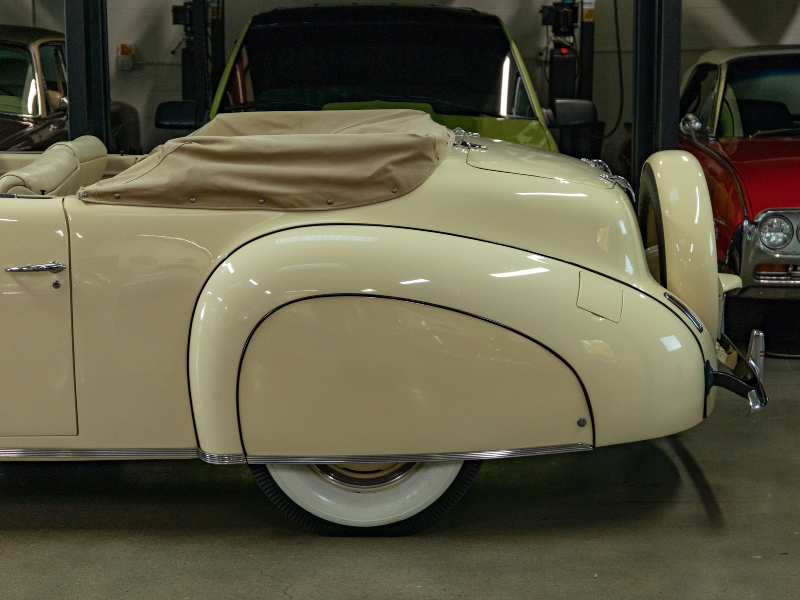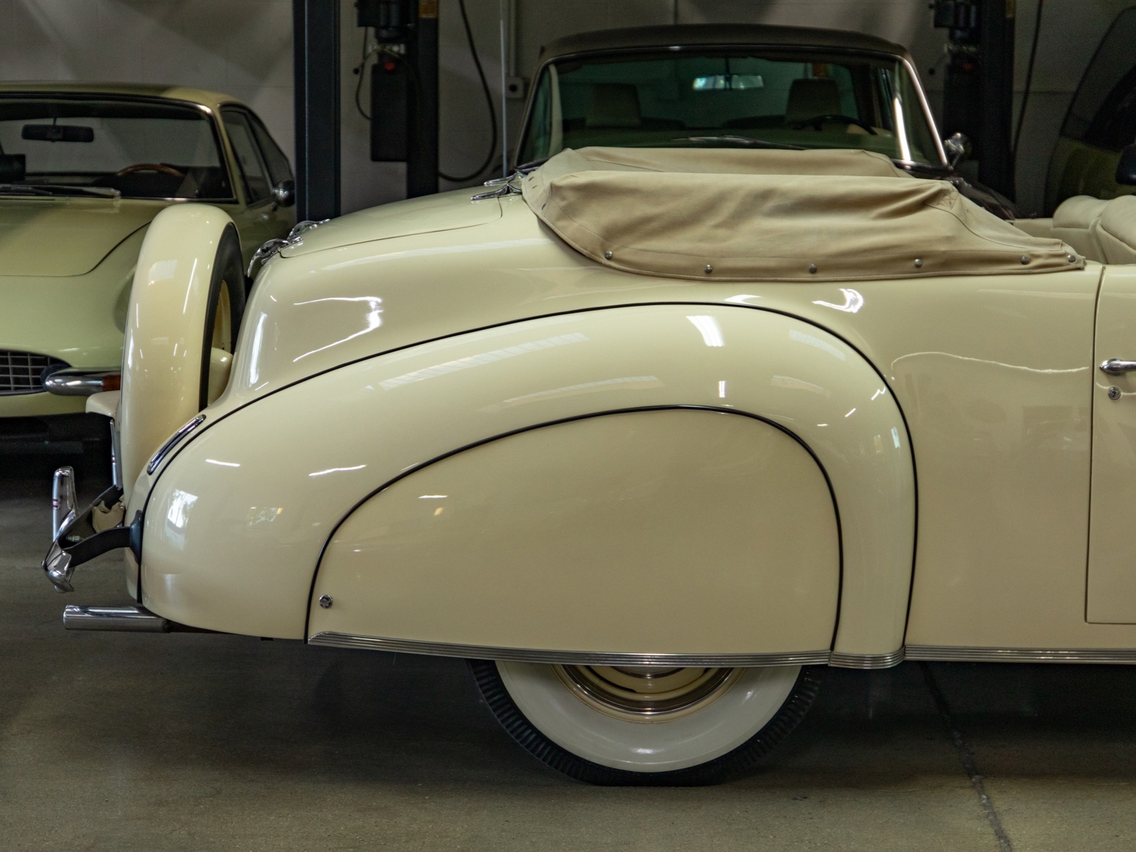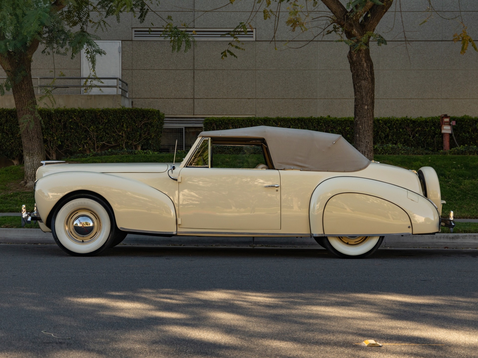 The car is strikingly handsome in an Ivory finish that showcases the cars voluptuous lines, this Continental features a light Tan leather interior that coordinates well with the exterior. Fitted with the legendary Lincoln V-12 and an overdrive transmission, this rare and stylish 1940 Continental Cabriolet makes an ideal choice for further touring, or simply cruising on the great American highway, just as it did for the man who conceived the legendary car from the start, Edsel Ford.