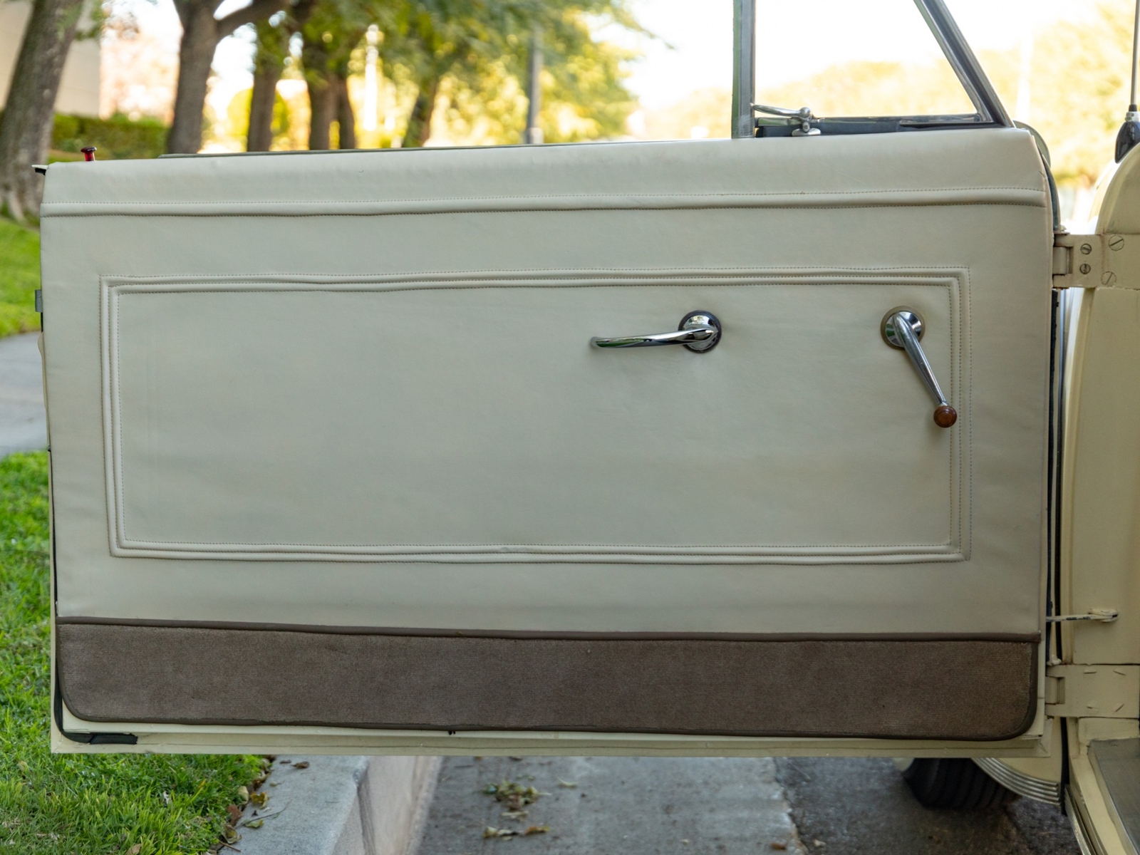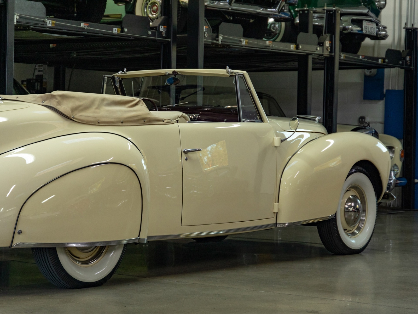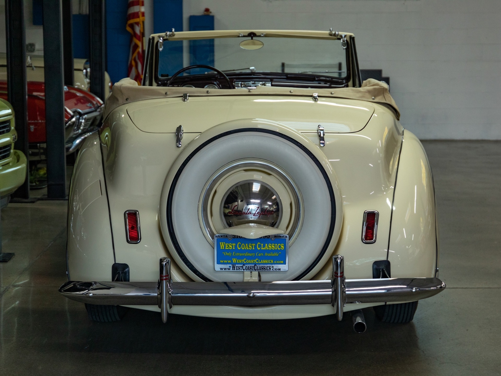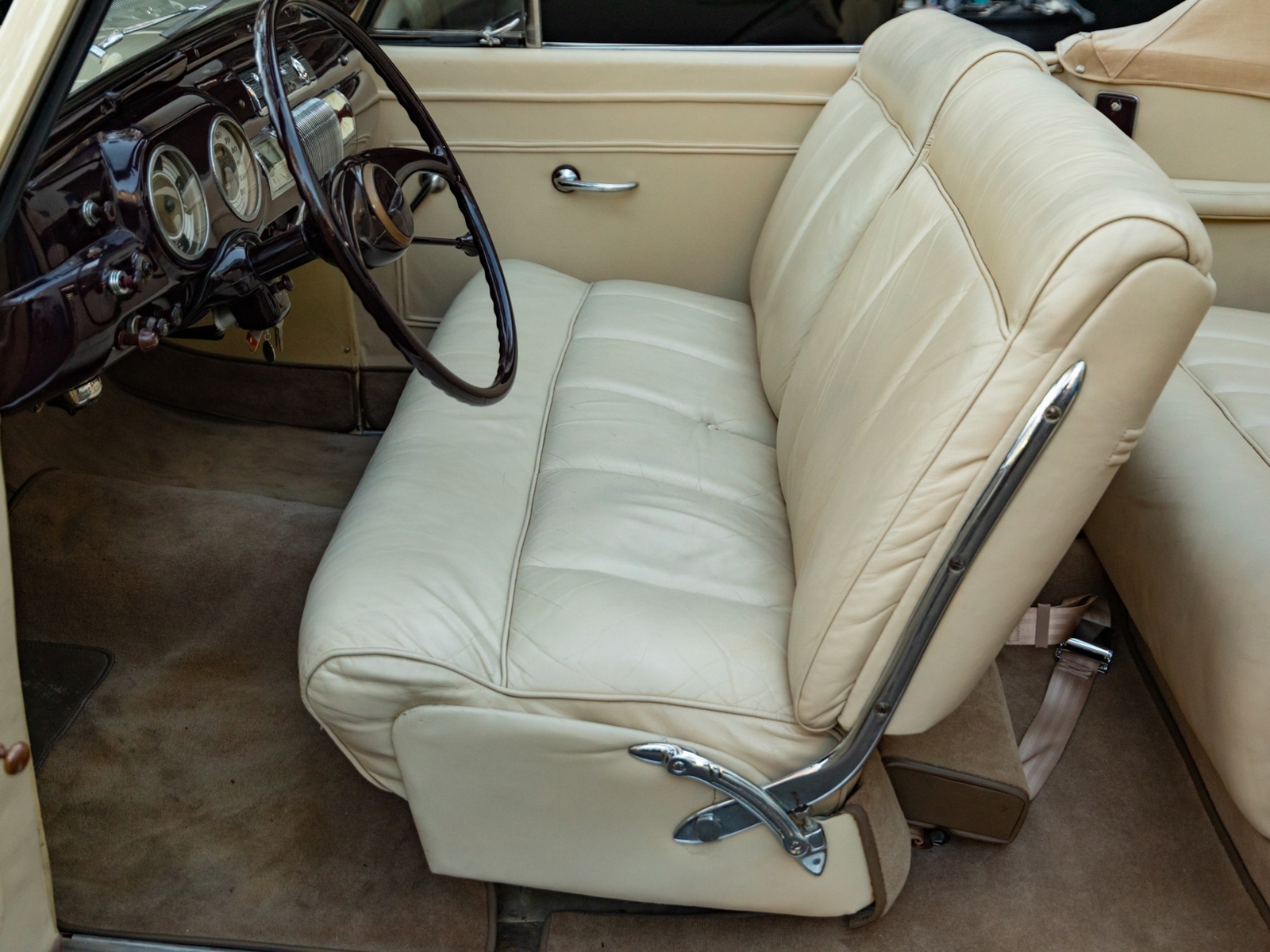 The car is strikingly handsome in an Ivory finish that showcases the cars voluptuous lines, this Continental features a light Tan leather interior that coordinates well with the exterior. Fitted with the legendary Lincoln V-12 and an overdrive transmission, this rare and stylish 1940 Continental Cabriolet makes an ideal choice for further touring, or simply cruising on the great American highway, just as it did for the man who conceived the legendary car from the start, Edsel Ford.