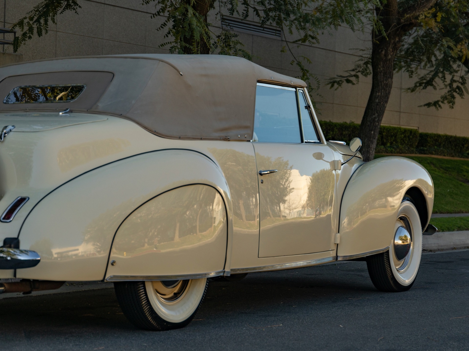 This was one of the sweetest rides you could by in 1940. Imagine the looks back in the day, to drive a sporty luxury convertible and these prestigious Lincoln Zephyr models were all of that and more. The Zephyr was Lincoln's response to the depression and one of major significance. It was seen as the first successfully designed streamlined car available in the U.S. and was powered by a water cooled 4784cc (292c.i.) V12 engine on a 125" wheelbase! Vacuum assisted brakes were standard, important for stopping well for such a large car, and a 3 speed gearbox was matched to a Columbia two speed rear axle. Introduced in 1936 and structurally revised for 1940 and heavily face lifted, not for the better, in 1942. It returned after the war as a warmed up continuation but without the Zephyr name.