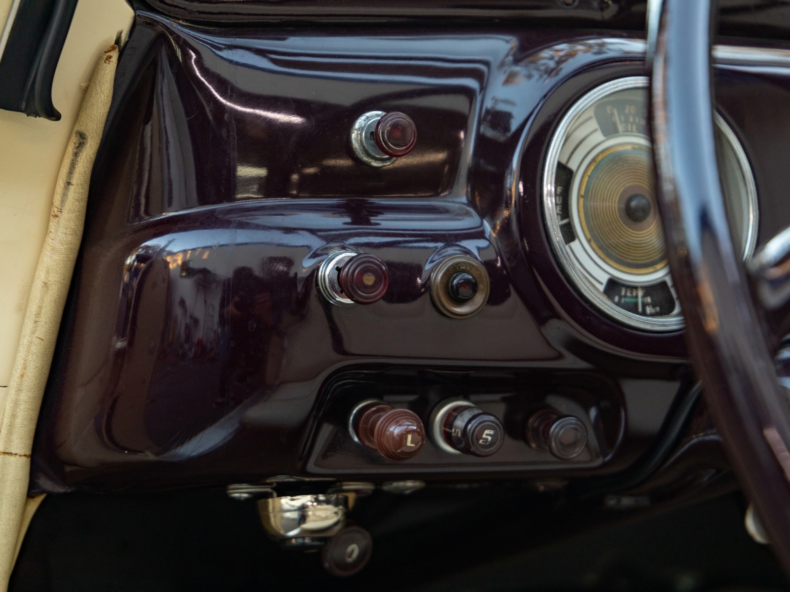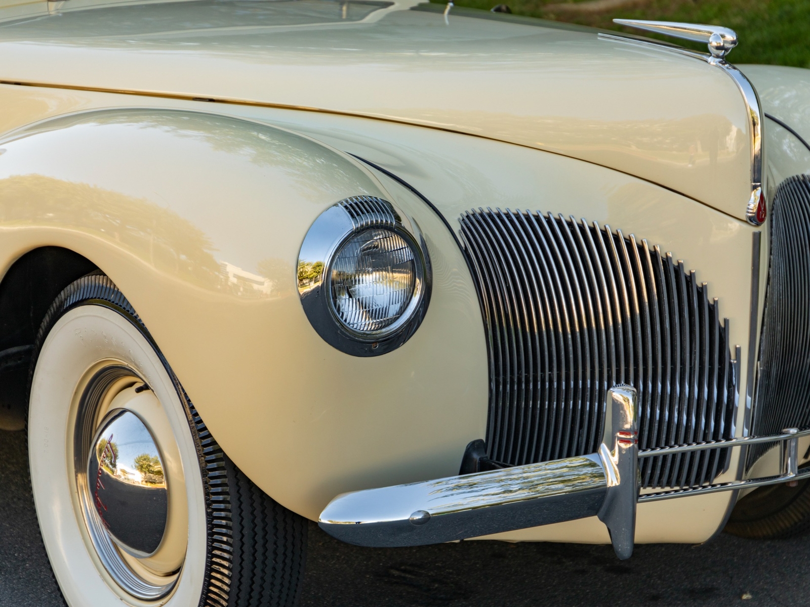 The stunning example offered here was assembled at the Long Beach, California plant on 22 May 1940, according to the cars build sheet. Shipped to its original owner on 29 May 1940, the car was nicely appointed with whitewall tires, radio, two-speed rear axle, clock, and the optional stone deflector, this stylish and rare Continental cabriolet must have turned heads in 1940, as it does today. In recent years it has been kept in the same show-ready condition by the collection staff and is in as fine condition as the day it was last restored.