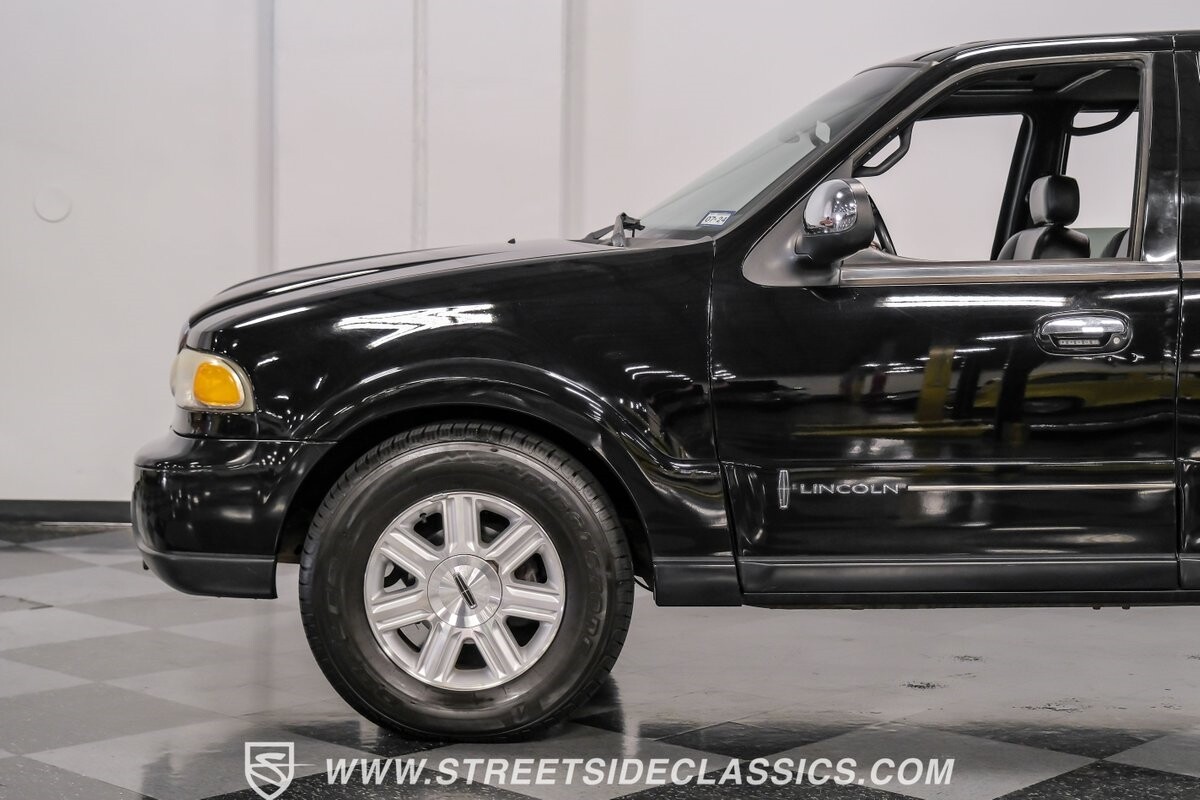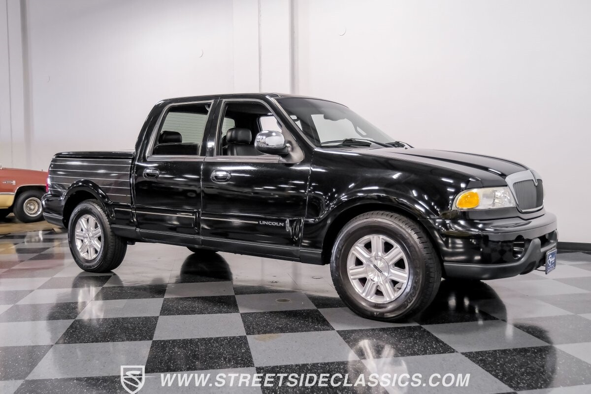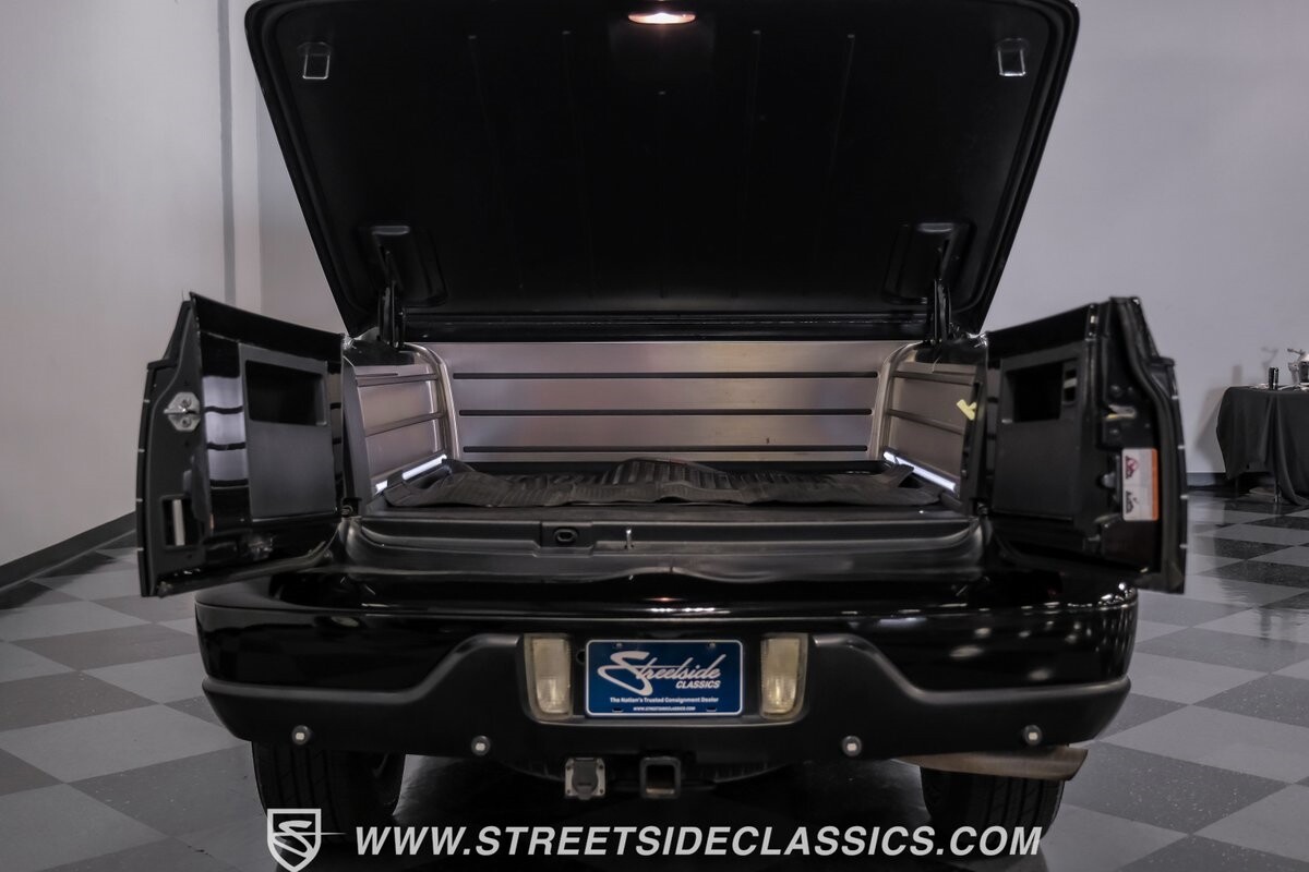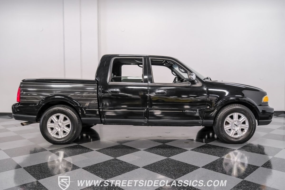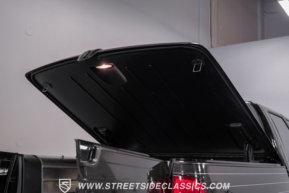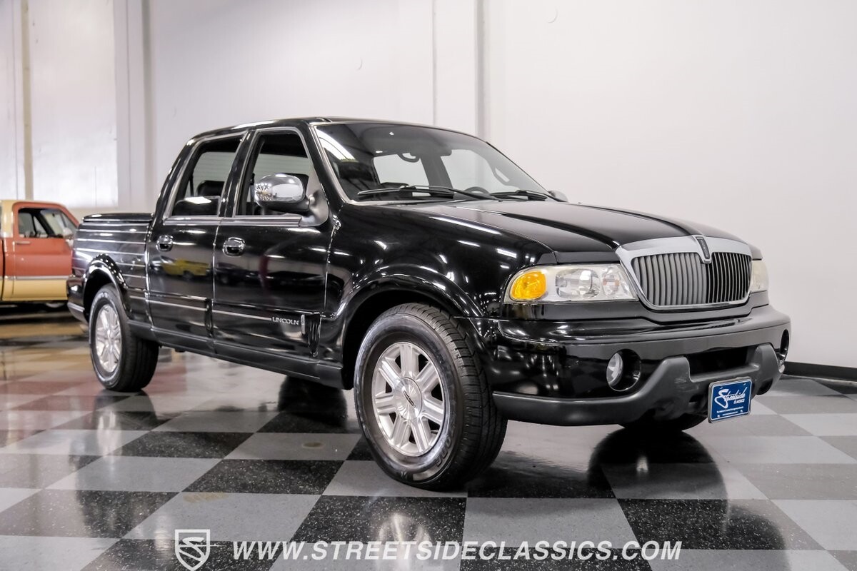A vision in black, this 2002 Lincoln Blackwood is a rare jewel, mirroring the night sky. From its 18-inch wheels to the 265/70R18 tires, it stands bold and assertive. The black exterior remains largely true to its origins, with wood grain panels that add a touch of sophistication. The meticulous design extends to the functionality of the tailgate, which splits open like barn doors, revealing a bed covered that lifts to offer locked storage bins. Tinted windows and a chrome gas cap complement the overall look, crafting an appearance as functional as it is aesthetically pleasing.