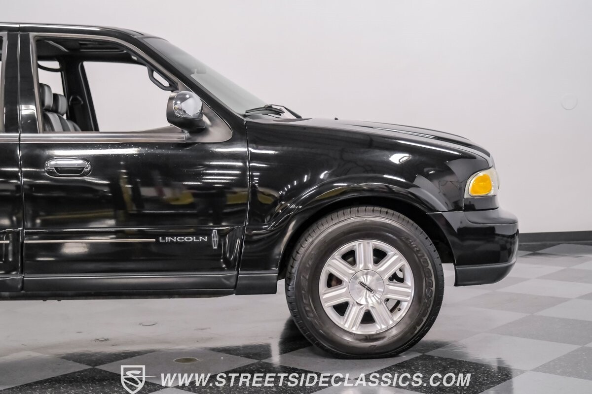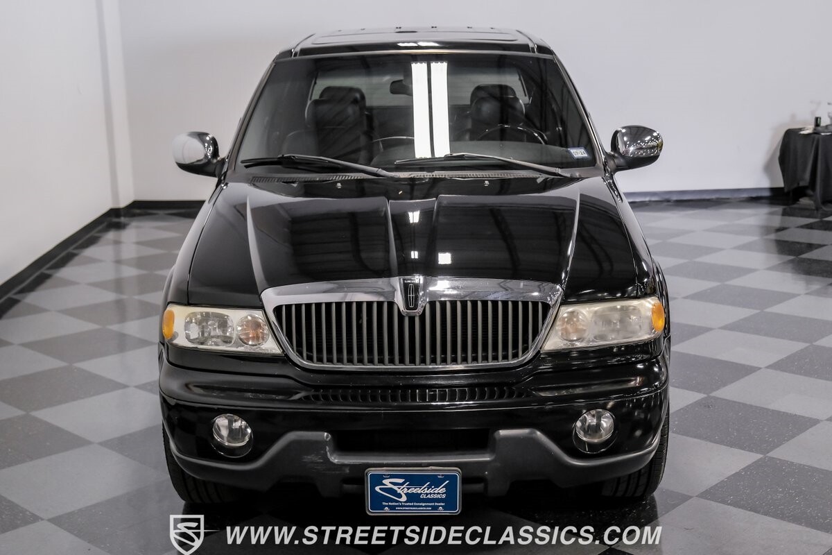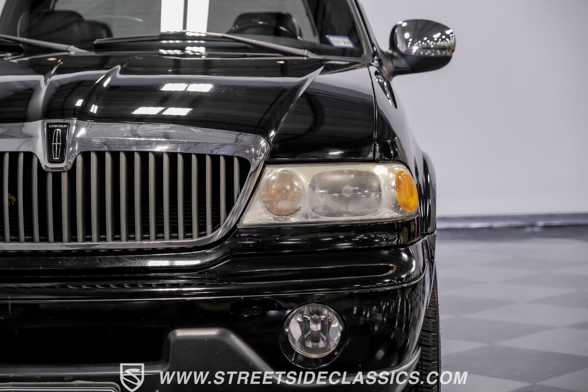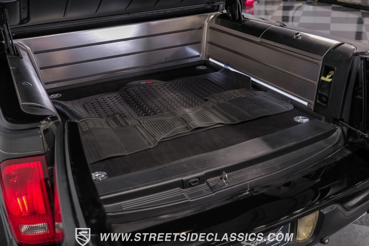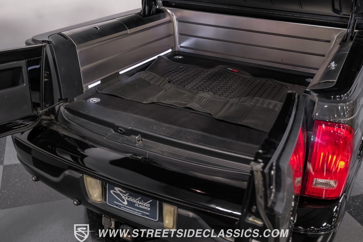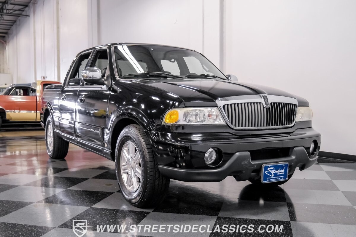 A vision in black, this 2002 Lincoln Blackwood is a rare jewel, mirroring the night sky. From its 18-inch wheels to the 265/70R18 tires, it stands bold and assertive. The black exterior remains largely true to its origins, with wood grain panels that add a touch of sophistication. The meticulous design extends to the functionality of the tailgate, which splits open like barn doors, revealing a bed covered that lifts to offer locked storage bins. Tinted windows and a chrome gas cap complement the overall look, crafting an appearance as functional as it is aesthetically pleasing.