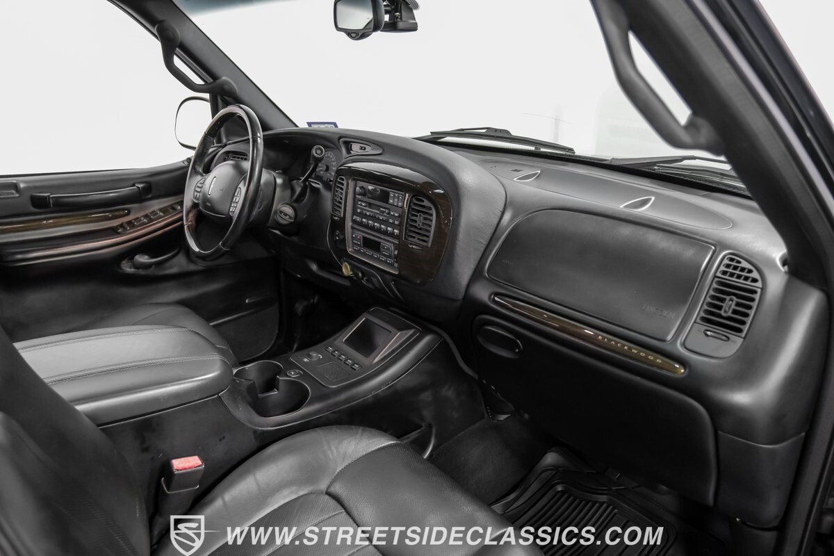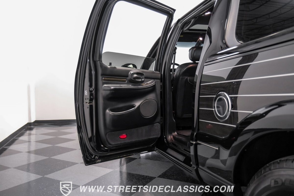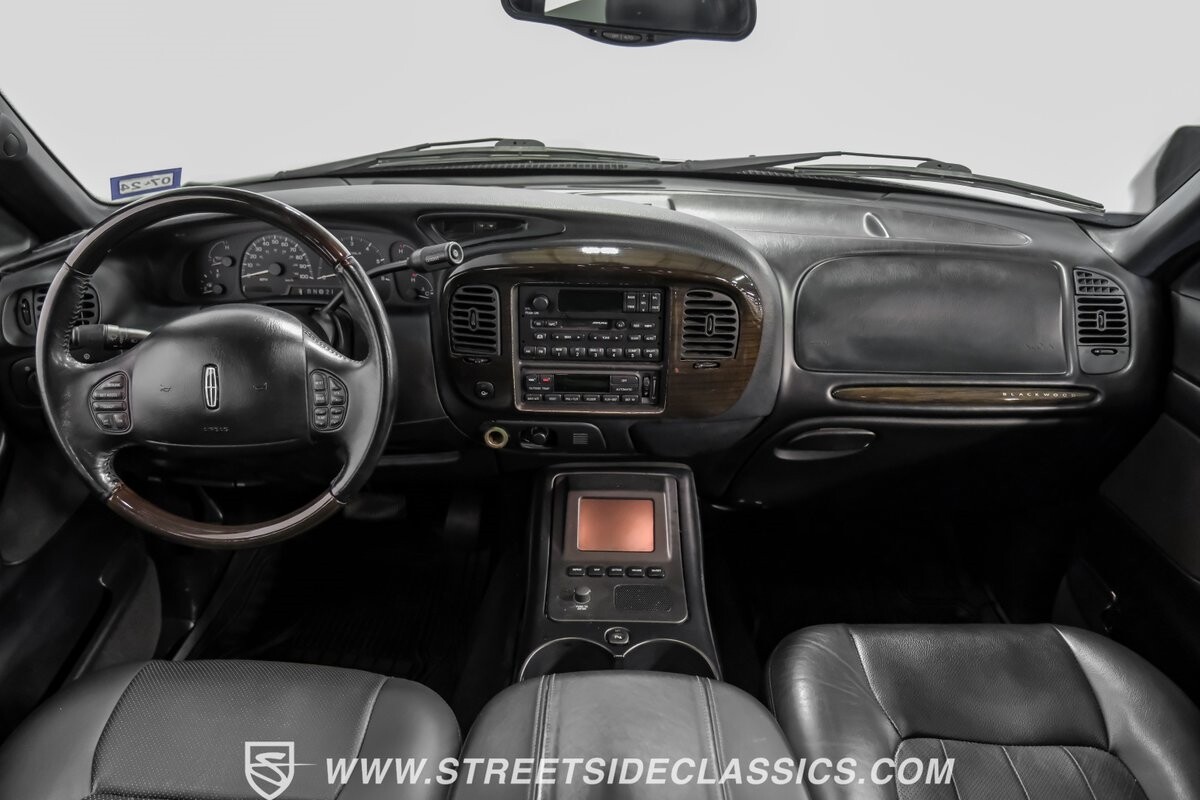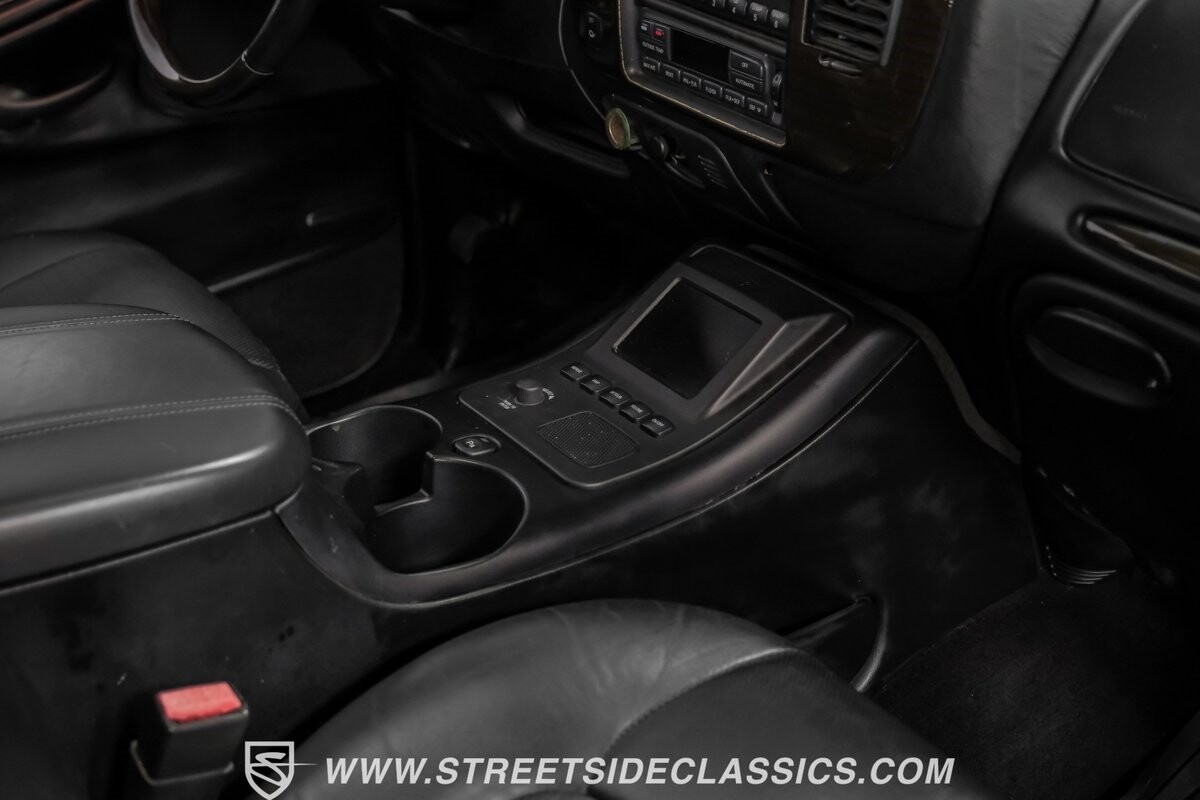 Inside, the Blackwood continues to impress with a predominantly black leather interior that speaks volumes about luxury. The front bucket seats, integrated with a console, beckon with their promise of comfort. Every detail, from the power-adjustable heated and cooled seats to the fully equipped navigation system, ensures a ride in opulence. The cabin also includes an original AM/FM cassette player, providing a nod to its classic roots while offering modern comforts such as power windows, locks, and cruise control.