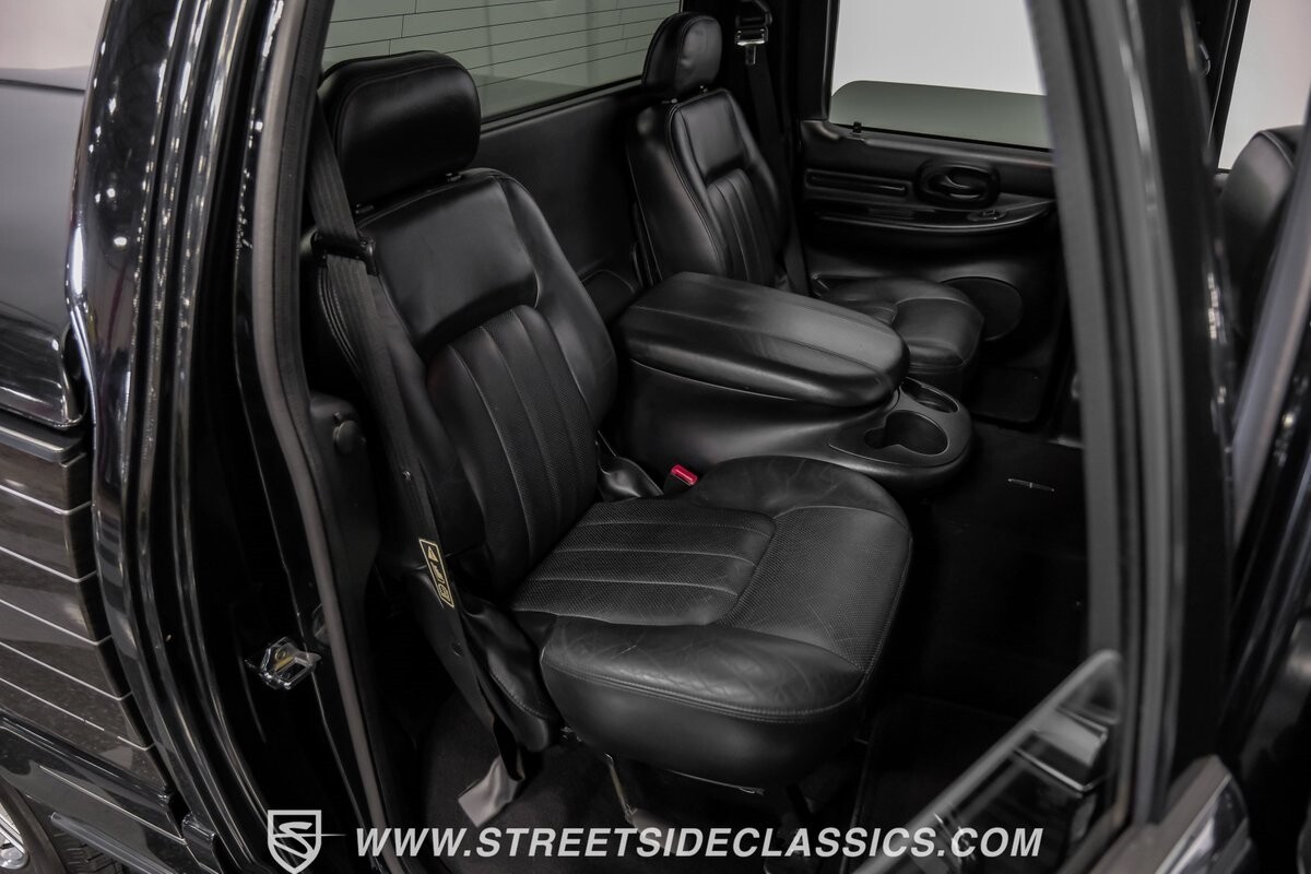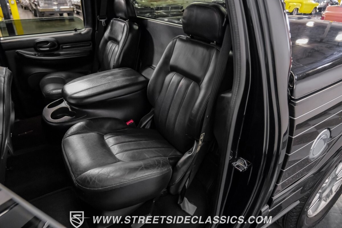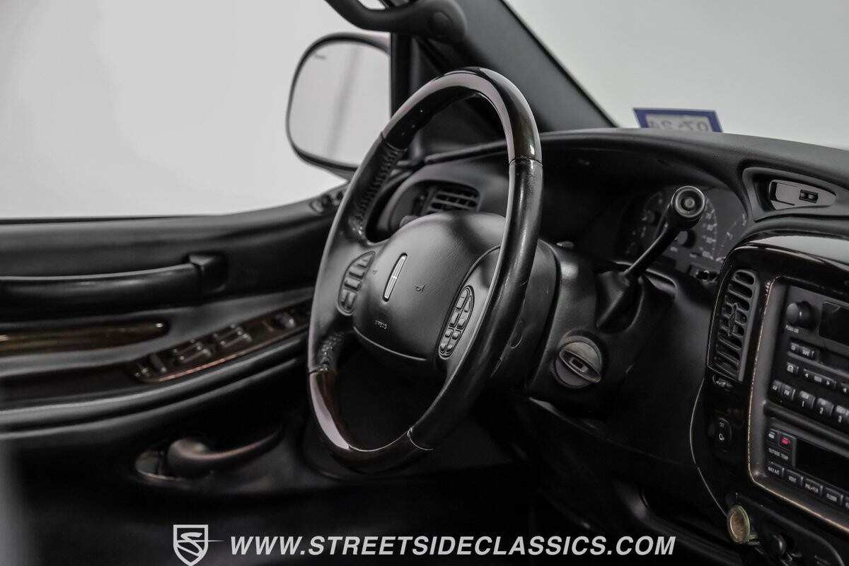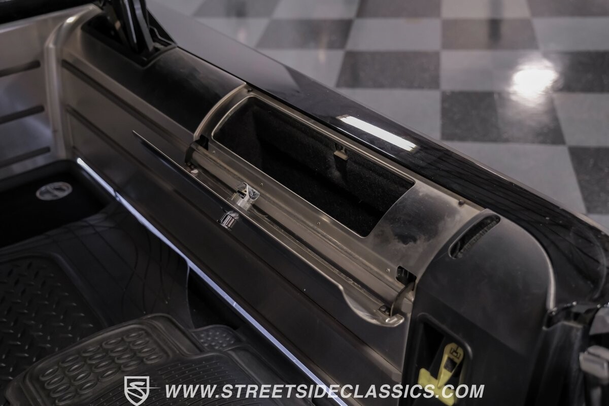 Inside, the Blackwood continues to impress with a predominantly black leather interior that speaks volumes about luxury. The front bucket seats, integrated with a console, beckon with their promise of comfort. Every detail, from the power-adjustable heated and cooled seats to the fully equipped navigation system, ensures a ride in opulence. The cabin also includes an original AM/FM cassette player, providing a nod to its classic roots while offering modern comforts such as power windows, locks, and cruise control.