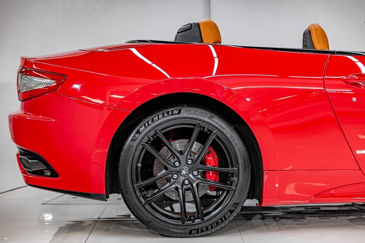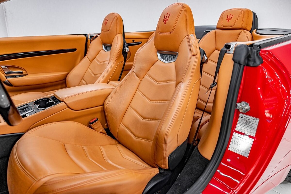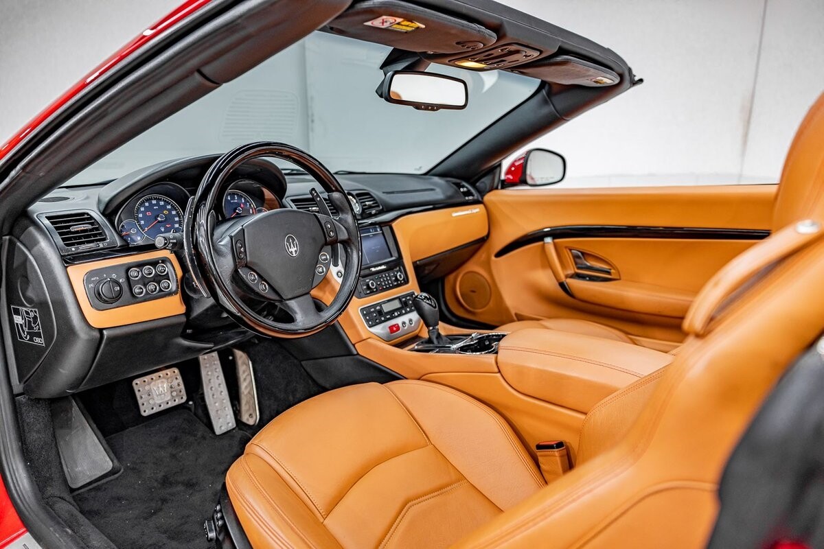 EXTERIOR: $3,000 optional paint color Rosso Mondiale! It's a special edition paint Maserati offered briefly. The sport front end eliminates fog lights and compliments the honeycomb massive front grill. Also the rear exhaust tips are larger on the C sports. The C sport sits on 20" satin black wheels and is fitted with large 4 wheel disc brakes for ultimate stopping power. The black convertible soft top is in great condition, and is able to go up or down with the push of a button!