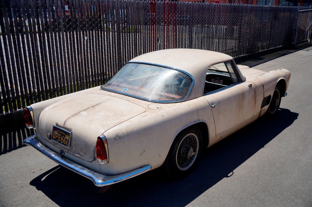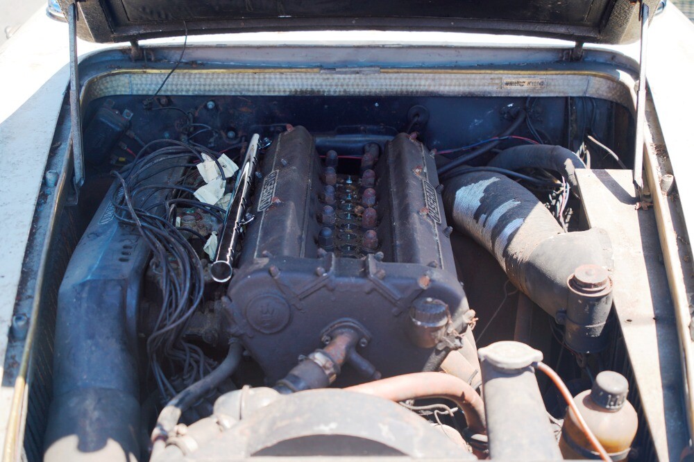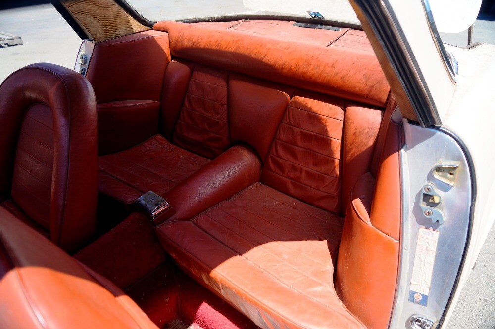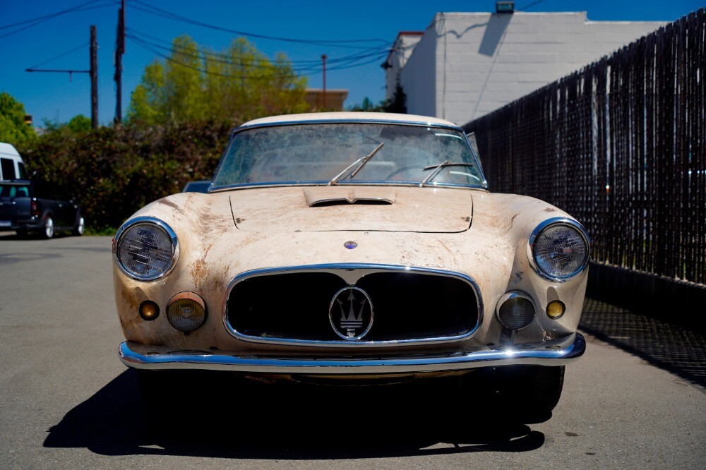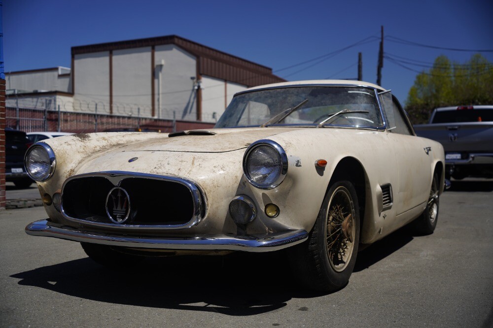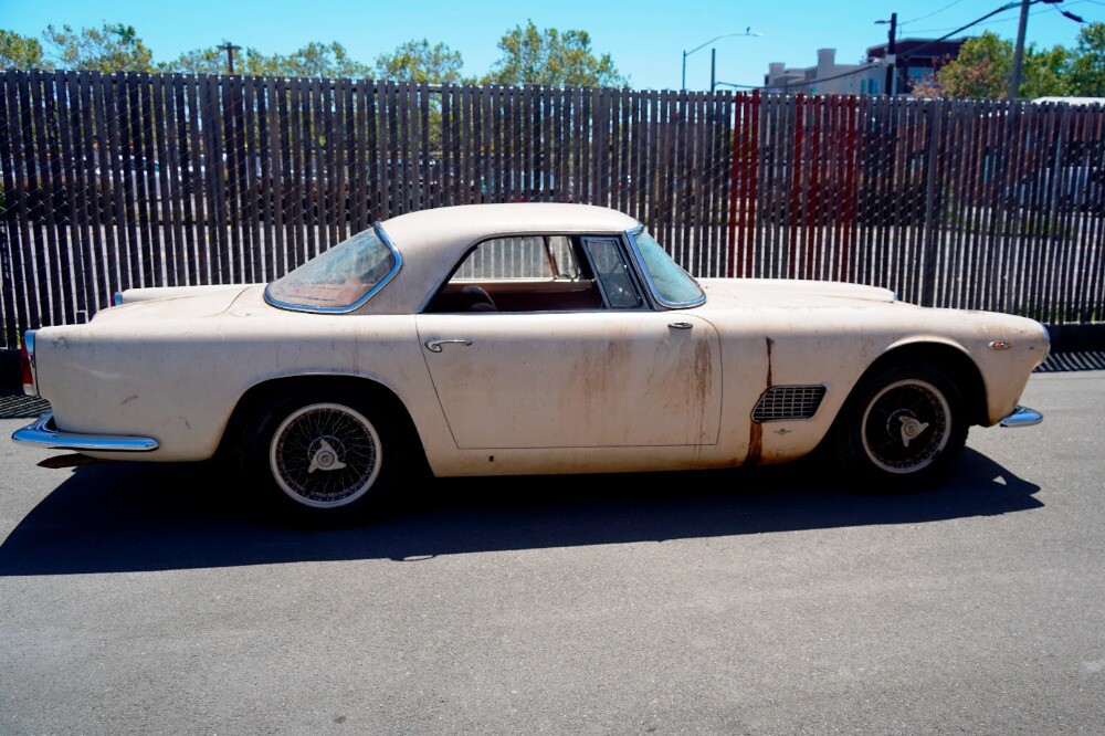 This 1962 Maserati 3500GT left the factory carbureted, with a 5-speed gearbox and disc brakes. Only a handful of 3500GTs were built in this configuration. A lifelong black plate California car extracted from barn storage where it had been sitting quietly and undisturbed since 1978. Ivory with red leather interior and with chrome recently redone. An incredibly original matching numbers car and offered in an extremely rare factory combination. This is the very best car you can restore being a 5-speed carbureted, disc brake model. If you're a Maserati collector or enthusiast, you will not find a better restoration candidate. The chance to own such a car is very likely a once in a lifetime opportunity. To find another unrestored original 3500GT with these three specifications and one that can be restored to your own standards is likely impossible. Offered with Maserati Classiche documentation including, historical information, technical data sheet, and certificate of origin.