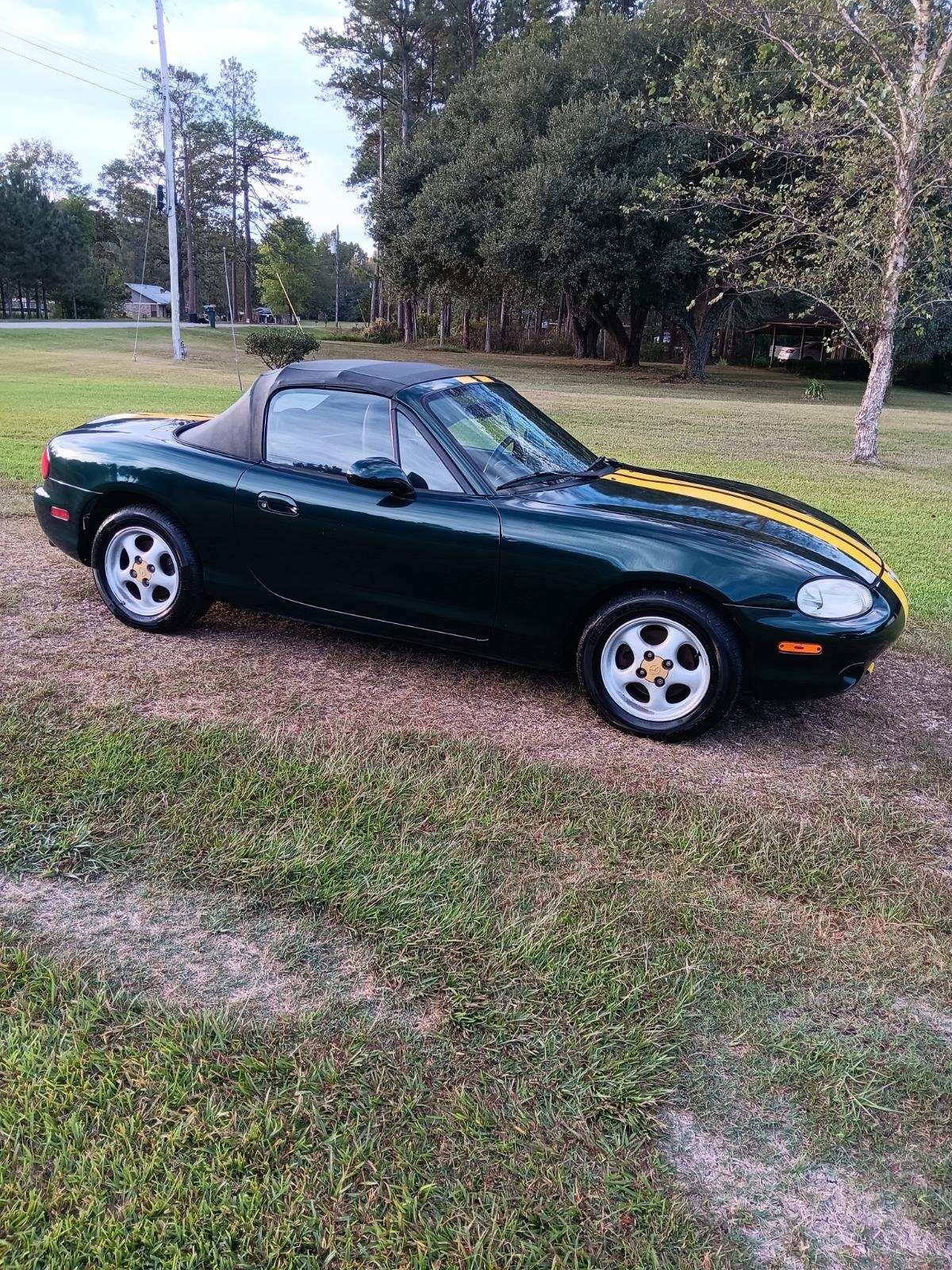 Selling 2000 Mazda Miata MX 5 5 speed manual with power steering and windows. Air conditioned. Top is manual and is a few years old with no wear or tears. Owned since 2013. The passenger window works but is slow to roll up. May need a new motor for it. There is a small clip under the steering wheel housing that needs replacing. Tires are in good shape. The car was repainted years ago. There is no rust, dents or body work. The stripes were added then. Two keys. This is my sisters car.I’m helping her sell it. This was her husbands fun car. She lost him last year and no longer needs it. Selling the car as is. Everything works but it hasn’t been driven much in the last year. The car is located in Laurel, MS. You are welcome to come and inspect it or have a mechanic look at it. I don’t believe you will find a nicer car for the money.