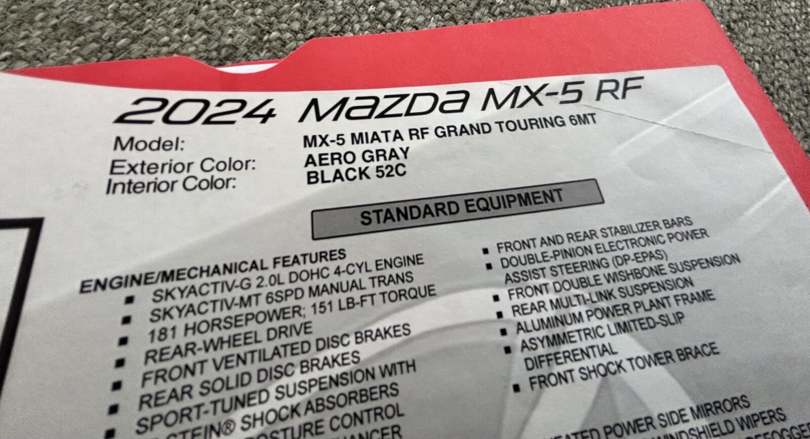 This 2024 MAZDA MX-5 MIATA is an original. This is offered for sale by the original owner. The vehicle runs great and is not regularly driven.Seller's Notes