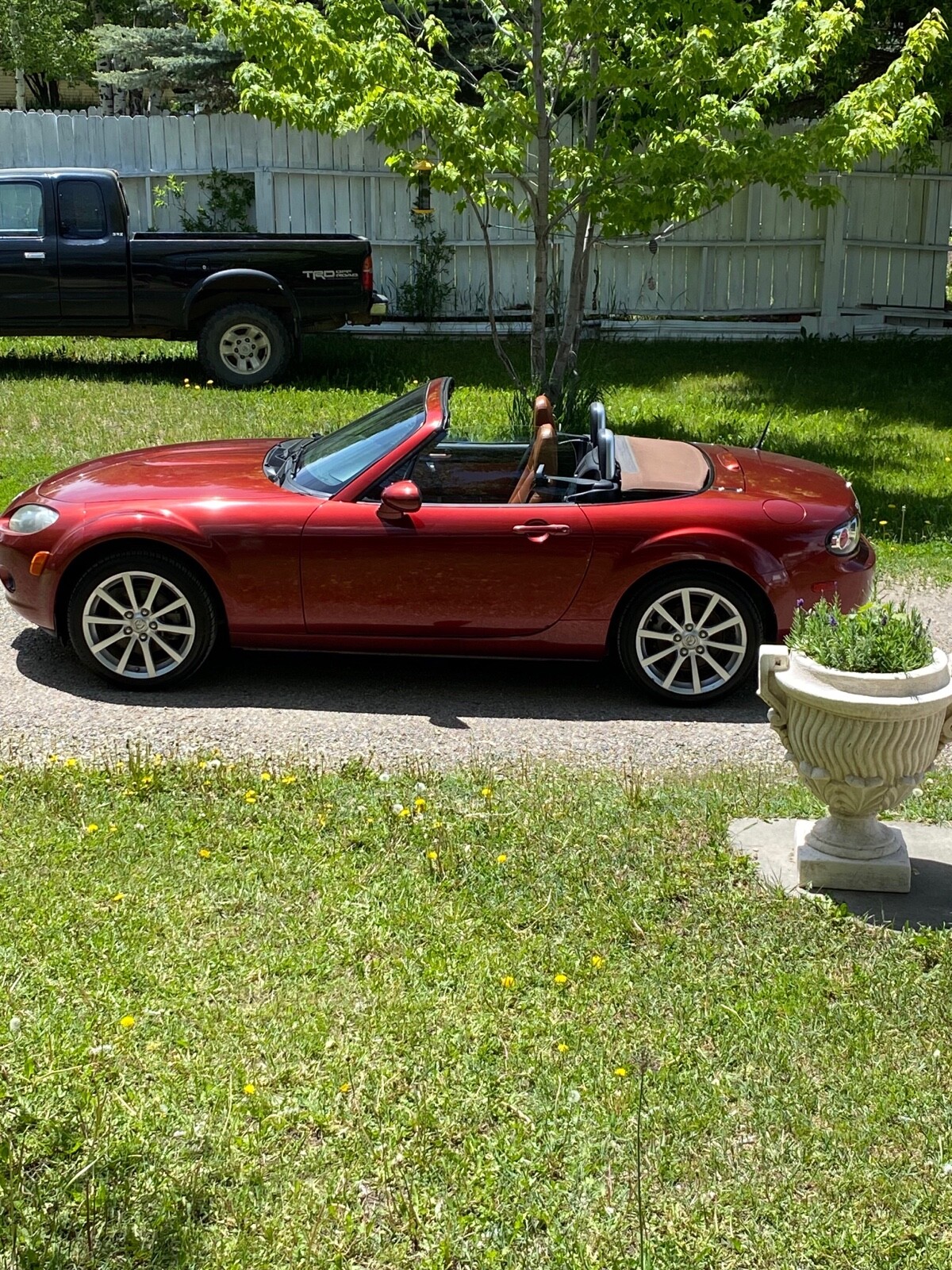 ***Price ?? Red Convertible Mazda Miata MX-5 2006-Fill?? $25 14 thumbnail 2006 Mazda MX-5 VIN: JM1NC25F060122520 condition: excellent cylinders: 3 cylinders drive: rwd fuel: gas odometer: 100561 paint color: red title status: clean transmission: manual type: convertible I am selling this because it was my dad’s car, he passed away. It doesn’t get driven any more and hasn't been driven in almost 3-years. The only thing is a rock hit the passenger side headlight. Runs amazing, super fast car, fun to drive in the summer, huge chick magnet, and best of all gets unbelievable gas mileage and one of the few cars you can almost fill up completely for 20$. I just had the entire car check out and at the Mazda dealership I just bought a new window switches and a part for the convertable top latch. I also just replaced the battery in it as well. Because it sat for almost 2 years without being driven. It has great tires on it and it is my favorite car to drive. It is a manual STICK SHIFT! It drives like a bat out of hell! While I at the Mazda dealership, I test drove the new 2023 MX5 hard top automatic. It was nice and had a few new bells and whistles but I found that made the interior busy. This one is clean and sleek as you can see by the photos. The new 2023 didn’t have as much horsepower and was not as fast. The salesman said this model that I am selling now is his favorite ? to drive as well. It is just whippy and way fast. The dealership could not believe what good of condition it was in. This is largely because it has been covered and parked in a garage. My dad loved this car. It gets amazing gas mileage, close to 44 MPG highway if you don’t drive it too aggressively, and around town it gets 36-38 MPG city driving. It has a small tank as well so it is so affordable to drive. And this is a SINGLE OWNER CAR! The top goes up and down in 2 seconds easy! No buttons, no waiting. YOU CAN LITERALLY PUT THE TOP DOWN OR UP AT A RED LIGHT WITH TIME TO SPARE! IT IS SO EASY! NO LEAKS EITHER. IN GOOD CONDITION. Does have a few black stains on it when it was not driven for those 3 years while it stayed covered all that time. No big deal however, please see the pictures. OBO… Looking to sell pretty quickly. If you are reading this…. The car is still available. I will take down the post when it sells.Seller's Notes