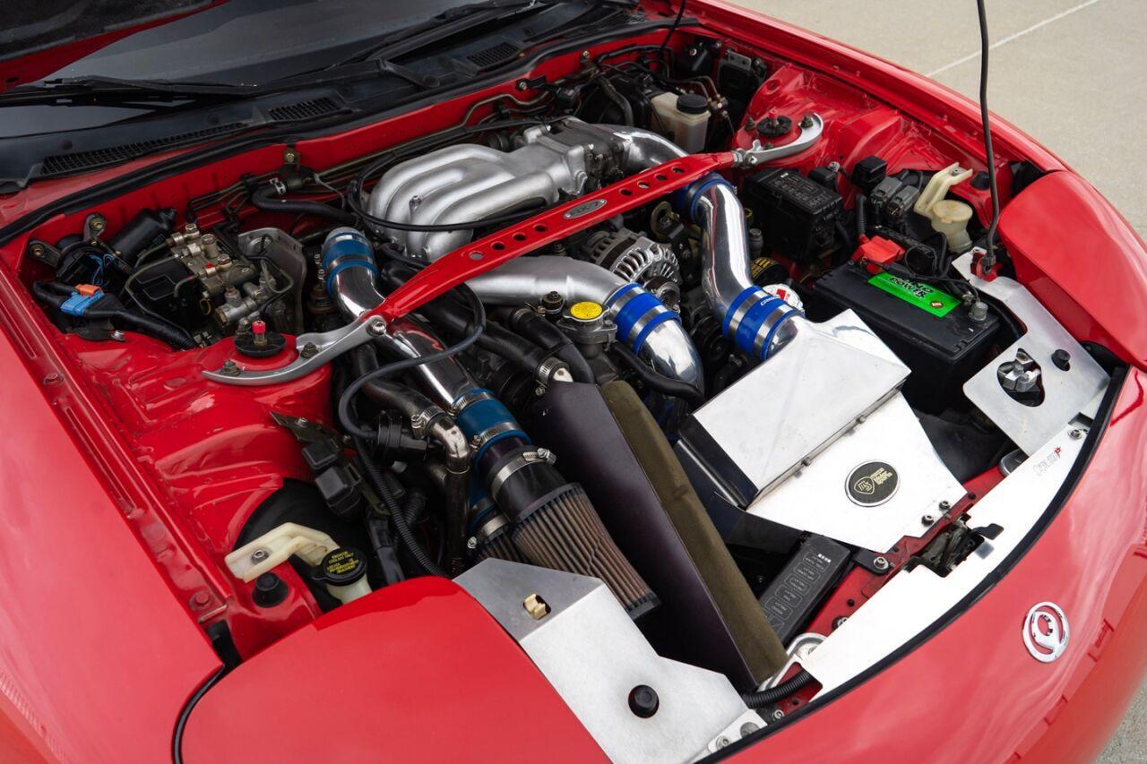 Finished in a striking RED paint color that accentuates its sleek lines and aggressive stance, this RX-7 is a true showstopper that commands attention wherever it goes. The timeless design of the RX-7 is further enhanced by its aerodynamic bodywork and signature rotary engine sound, creating a sensory experience that is unmatched in the world of sports cars.